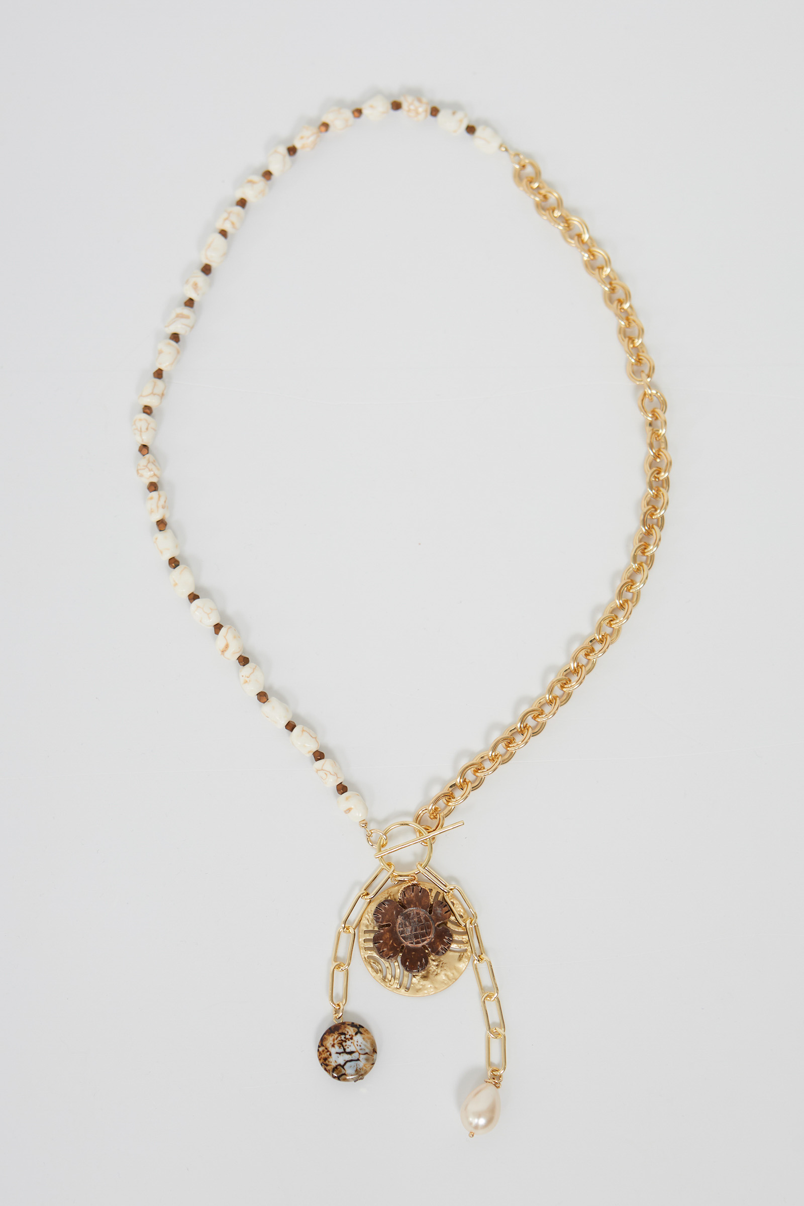 Комбинированное колье с подвесками из дерева и натуральных камней.