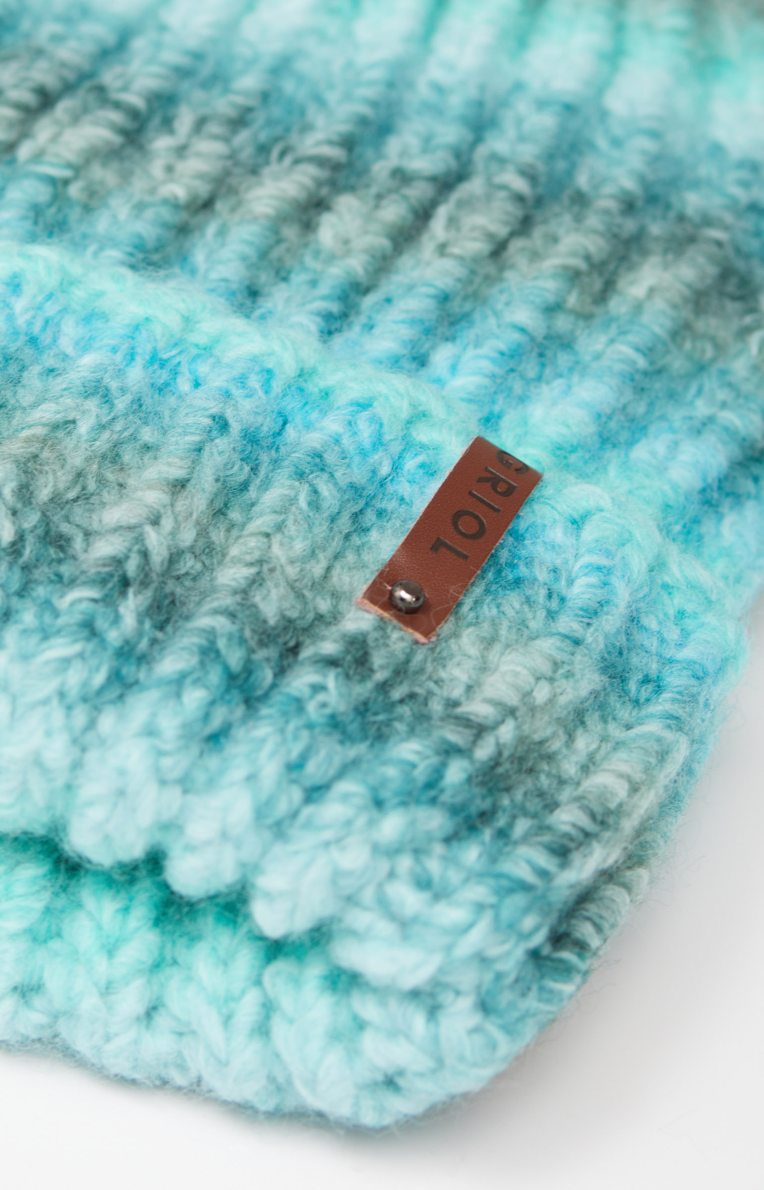 Шапка бини крупной вязки из полушерстяного трикотажа.