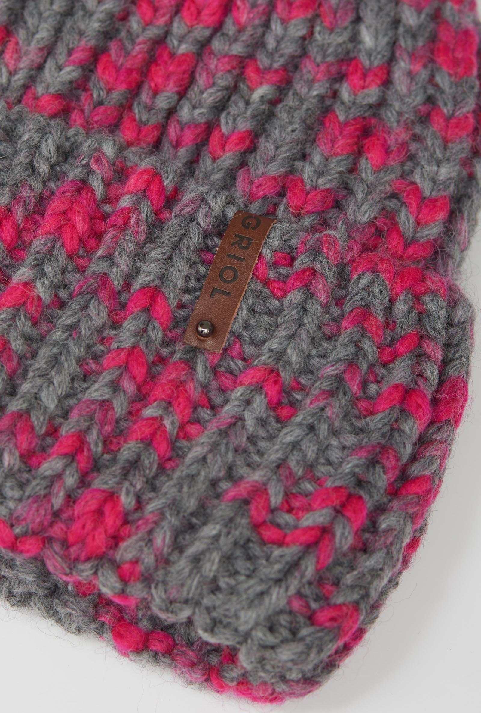 Шапка бини крупной вязки из контрастной полушерстяной пряжи.