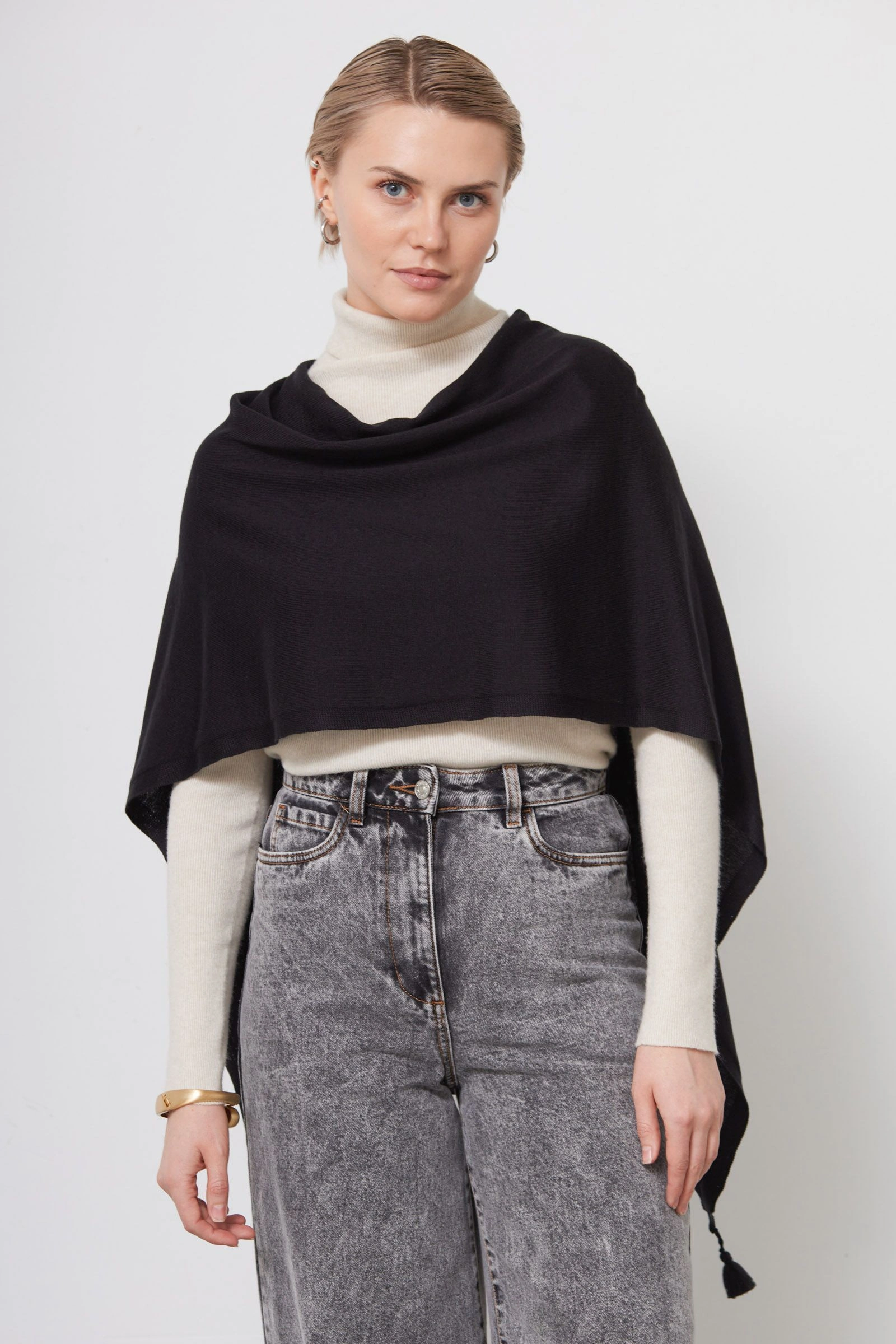 Шарф-накидка с кисточками