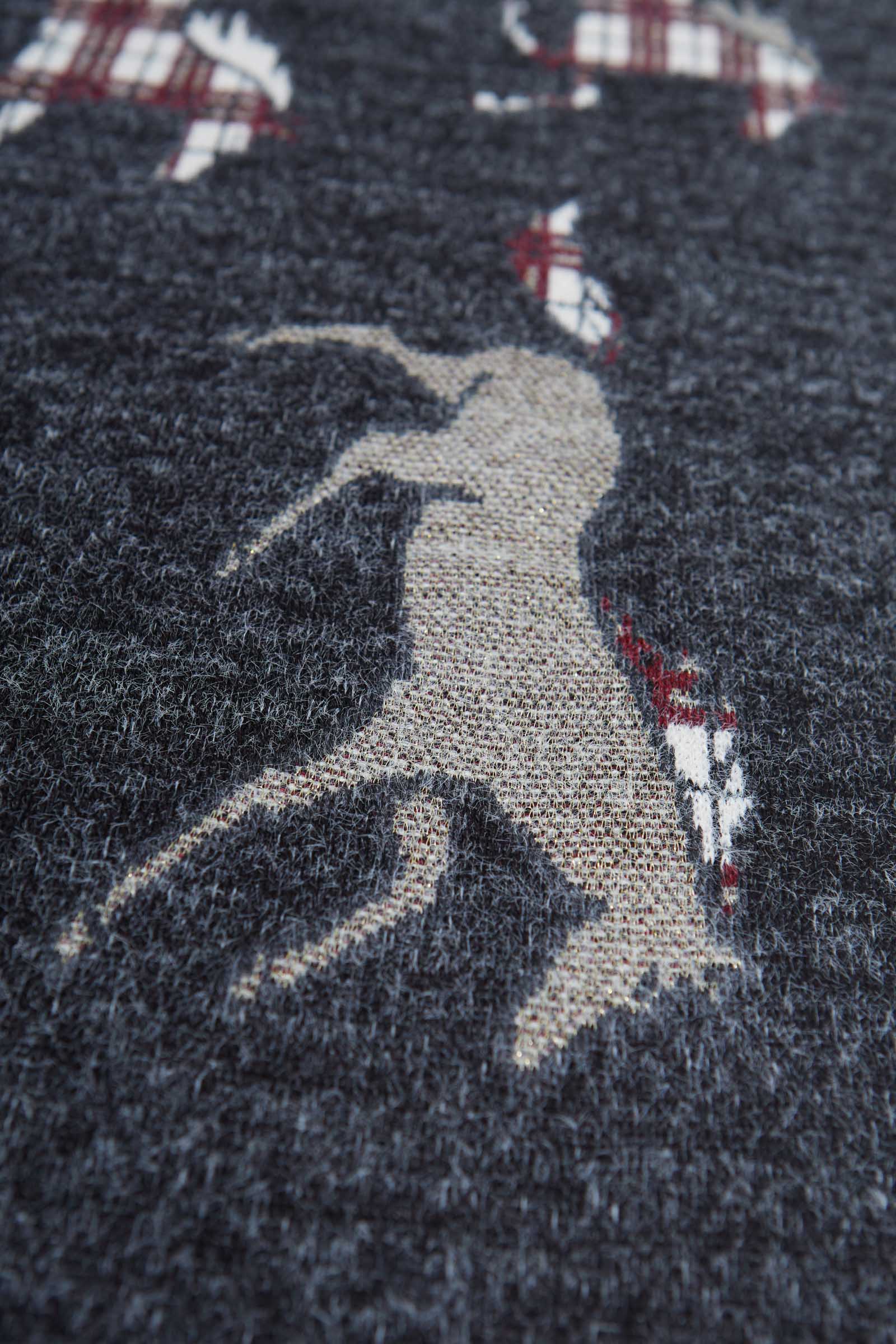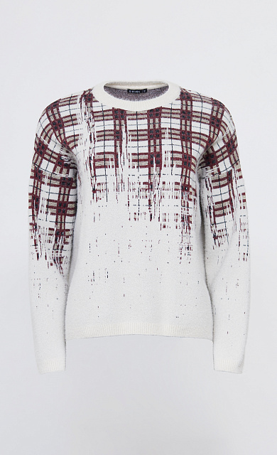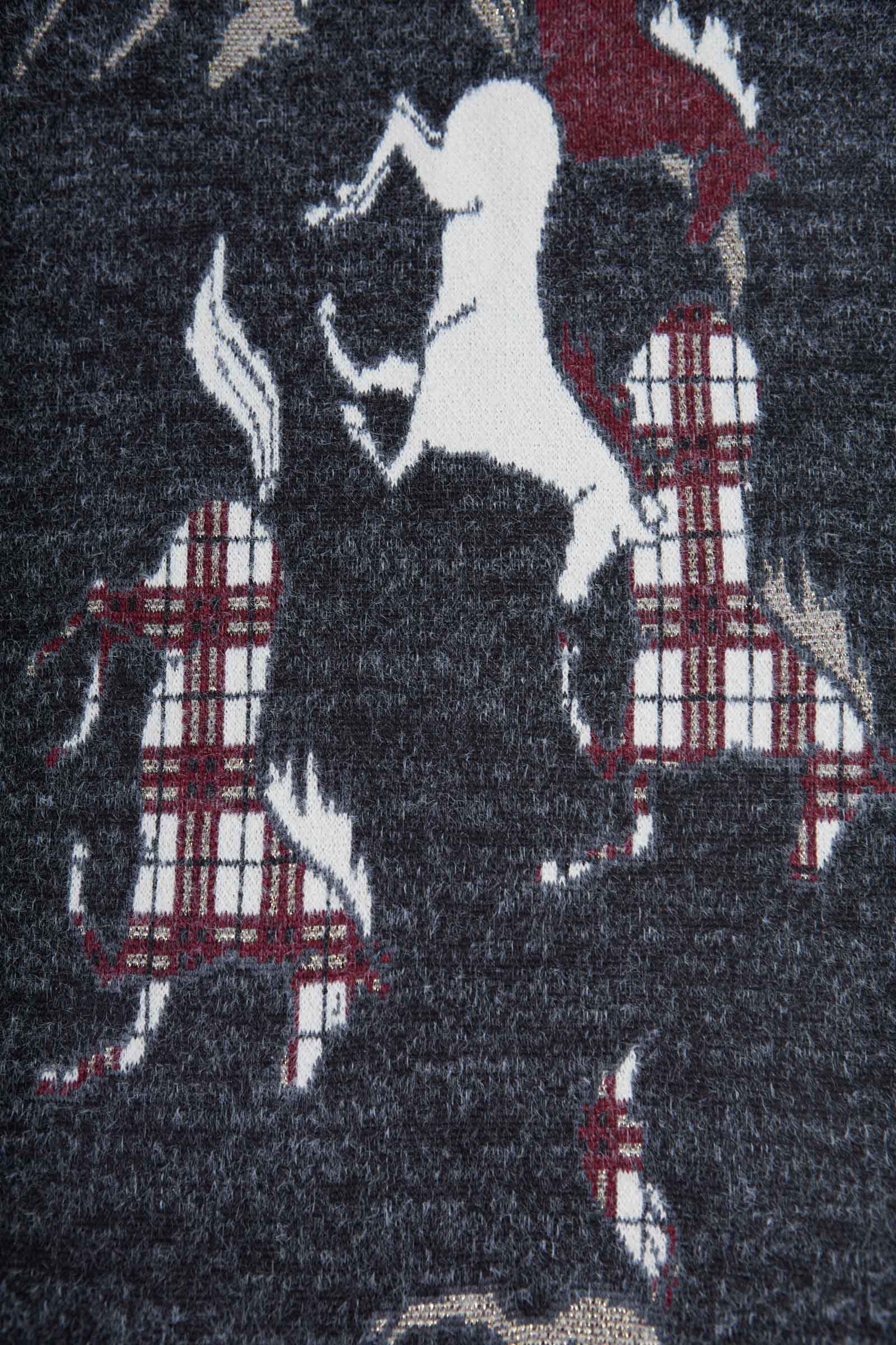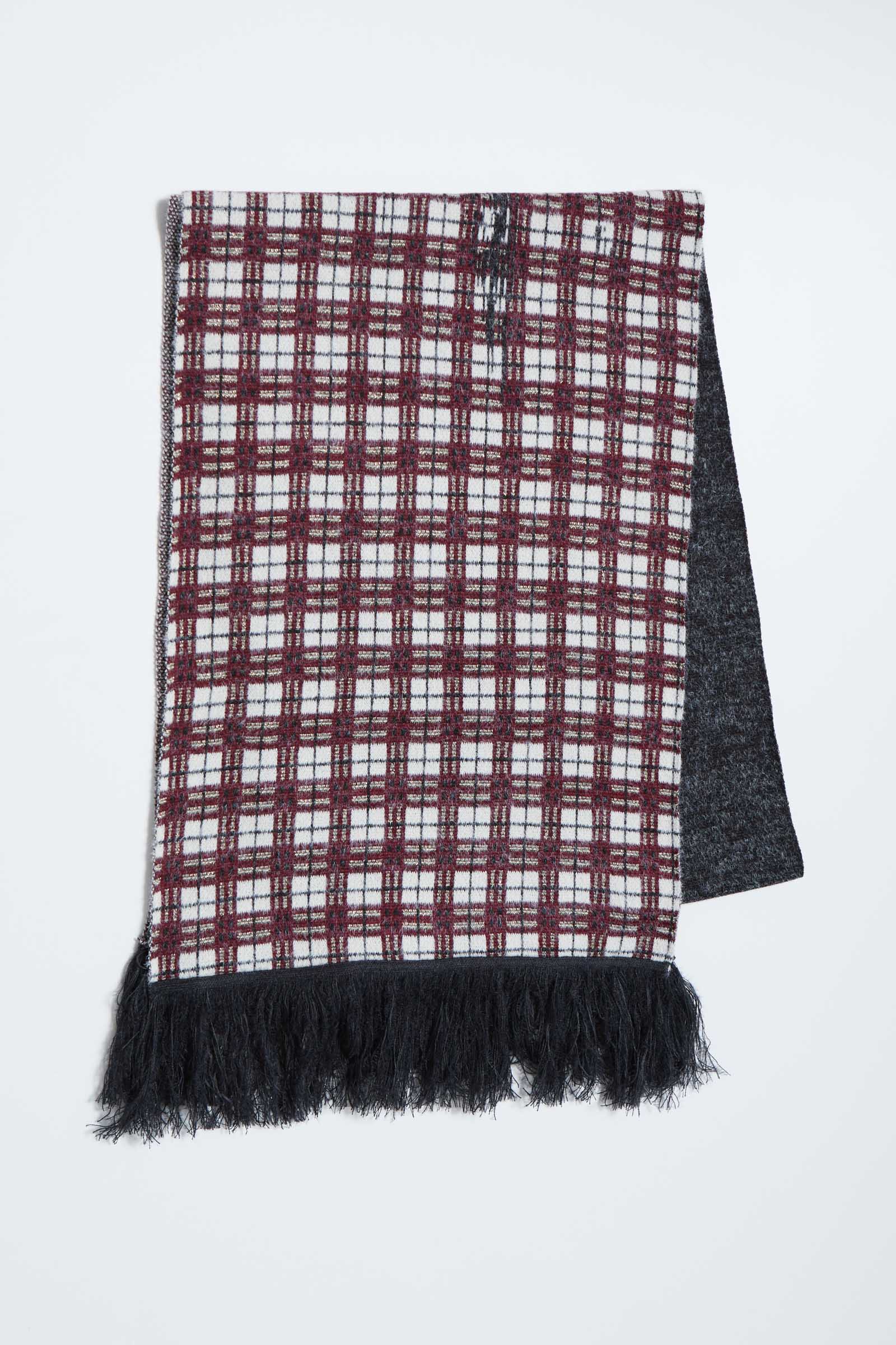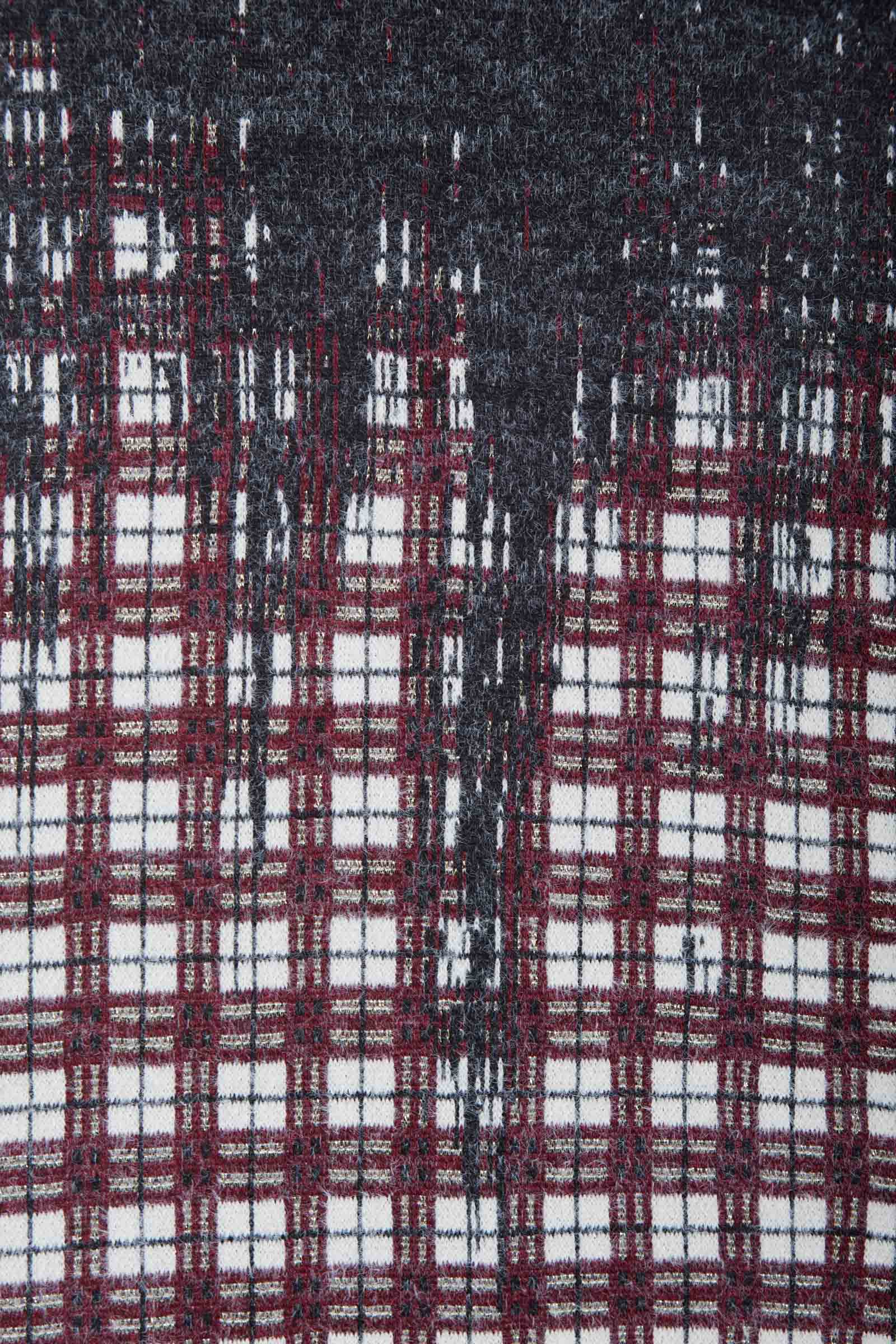 Широкий шарф из мягкого пушистого трикотажа жаккардовой вязки с бахромой.