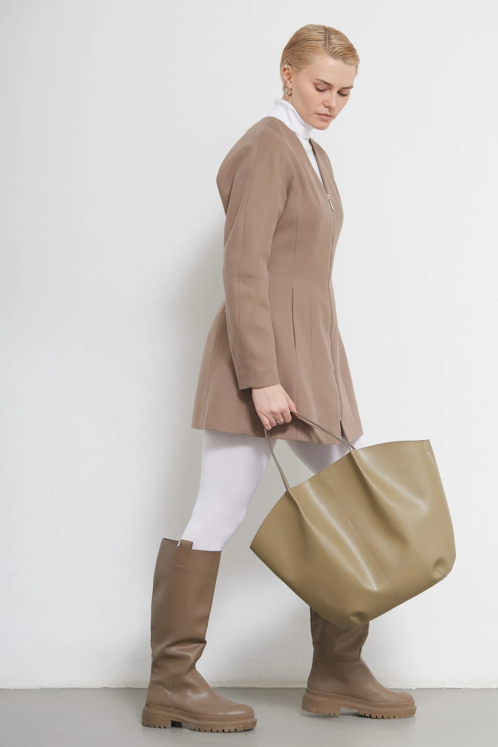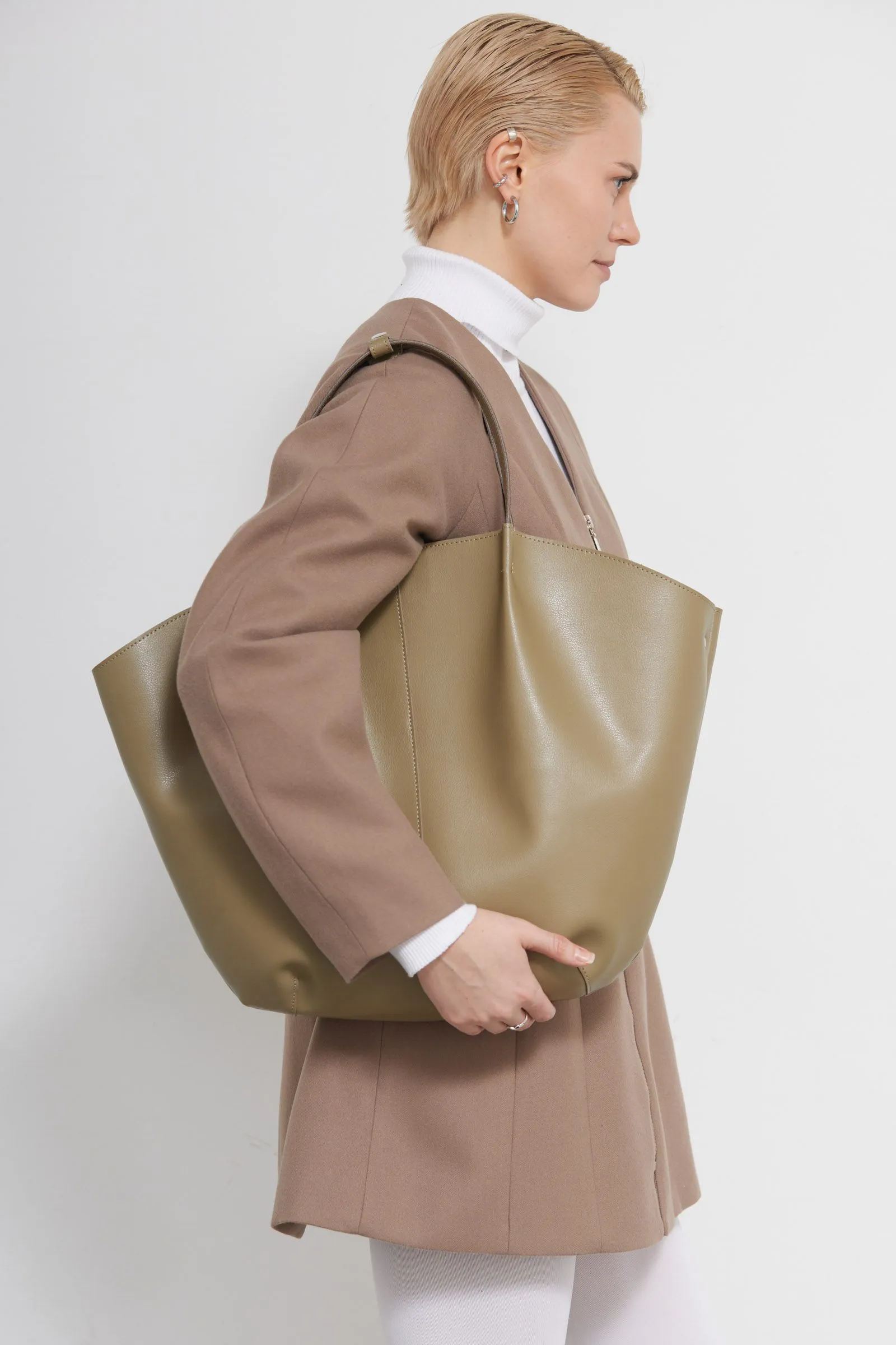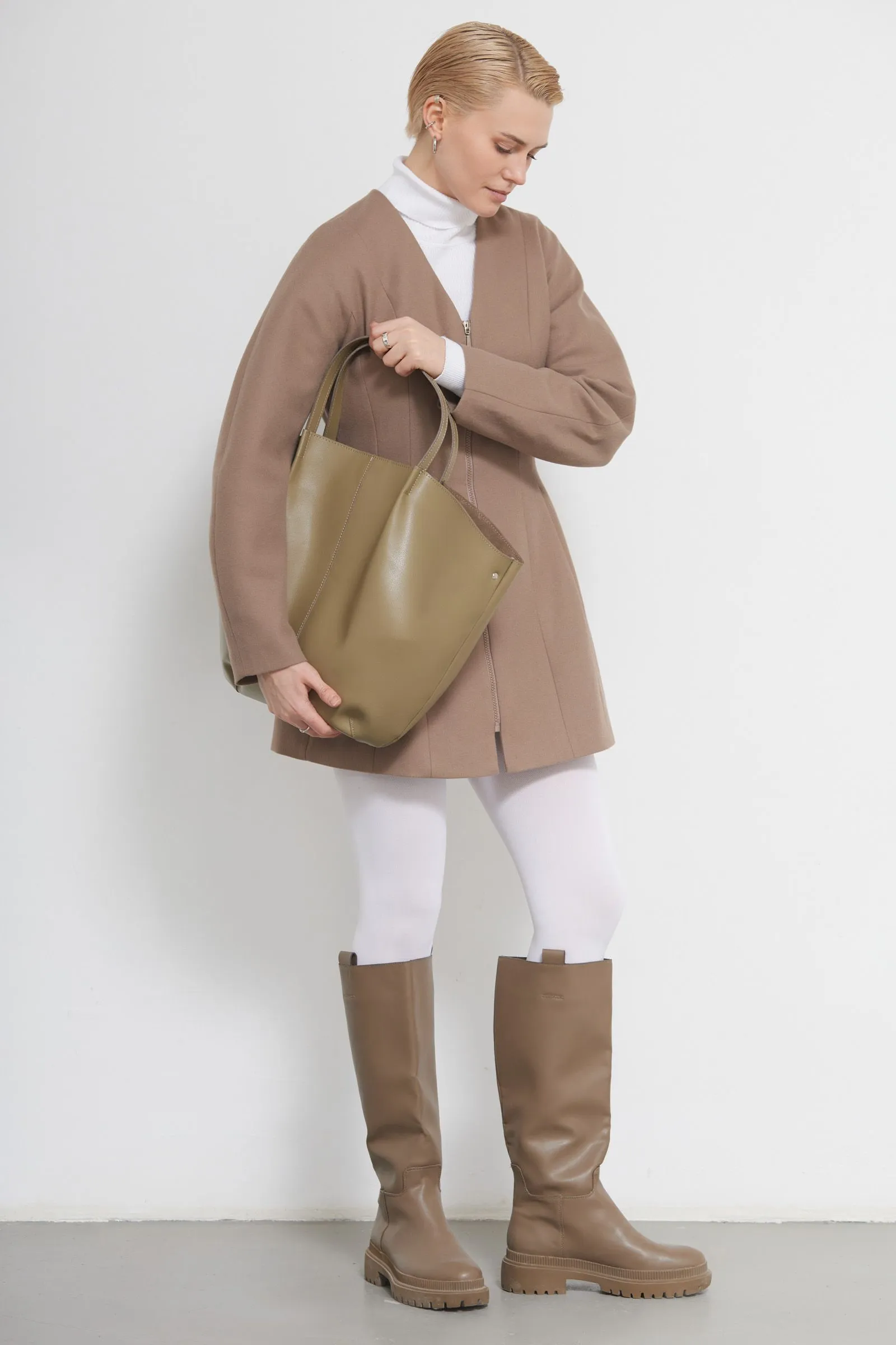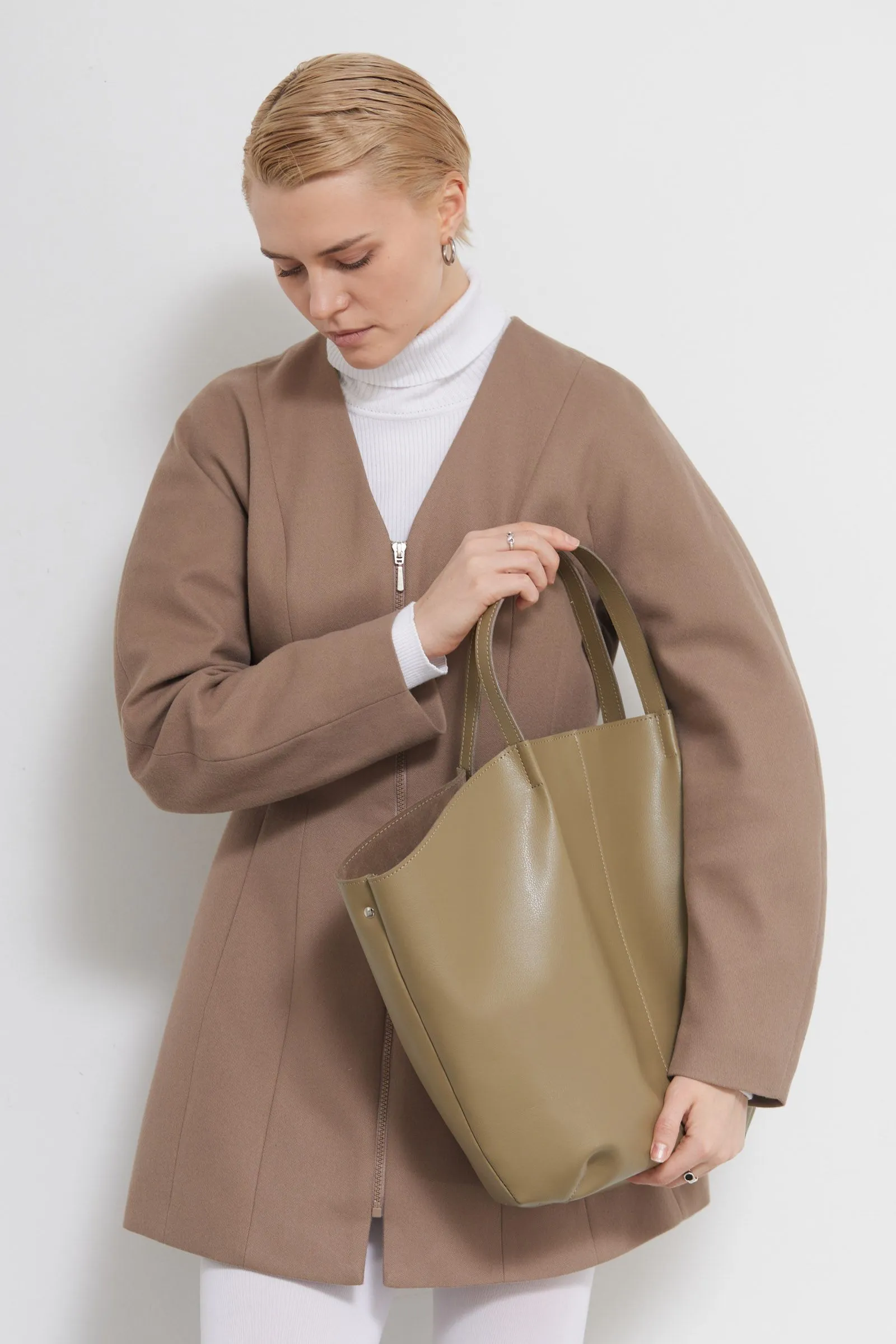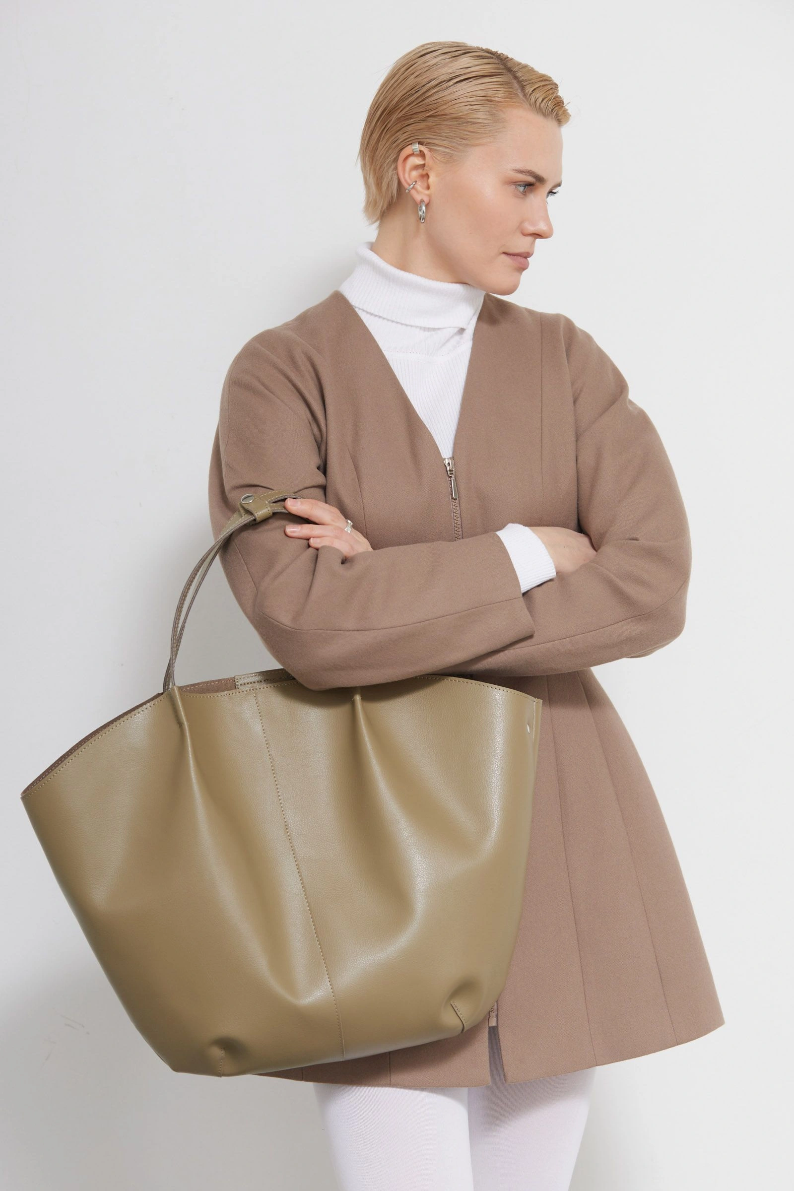 Вместительная сумка-тоут из натуральной кожи с одним большим отделением на магнитной застежке.