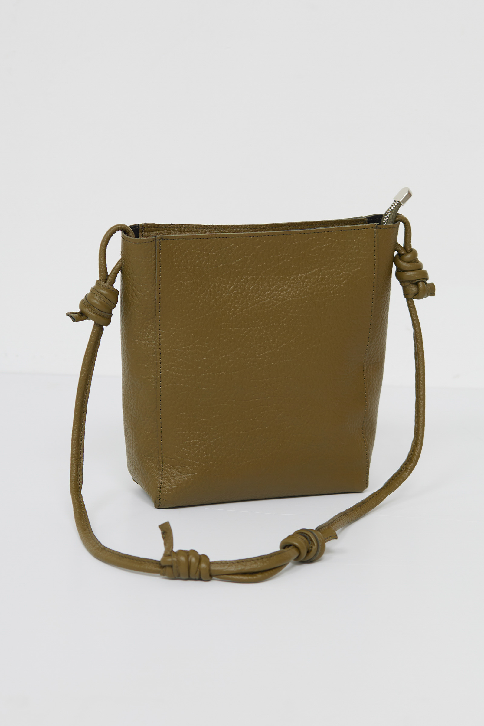 Сумка кросс-боди из натуральной кожи с декоративными узлами на плечевом ремне и боковым карманом на молнии. Основное отделение на молнии.