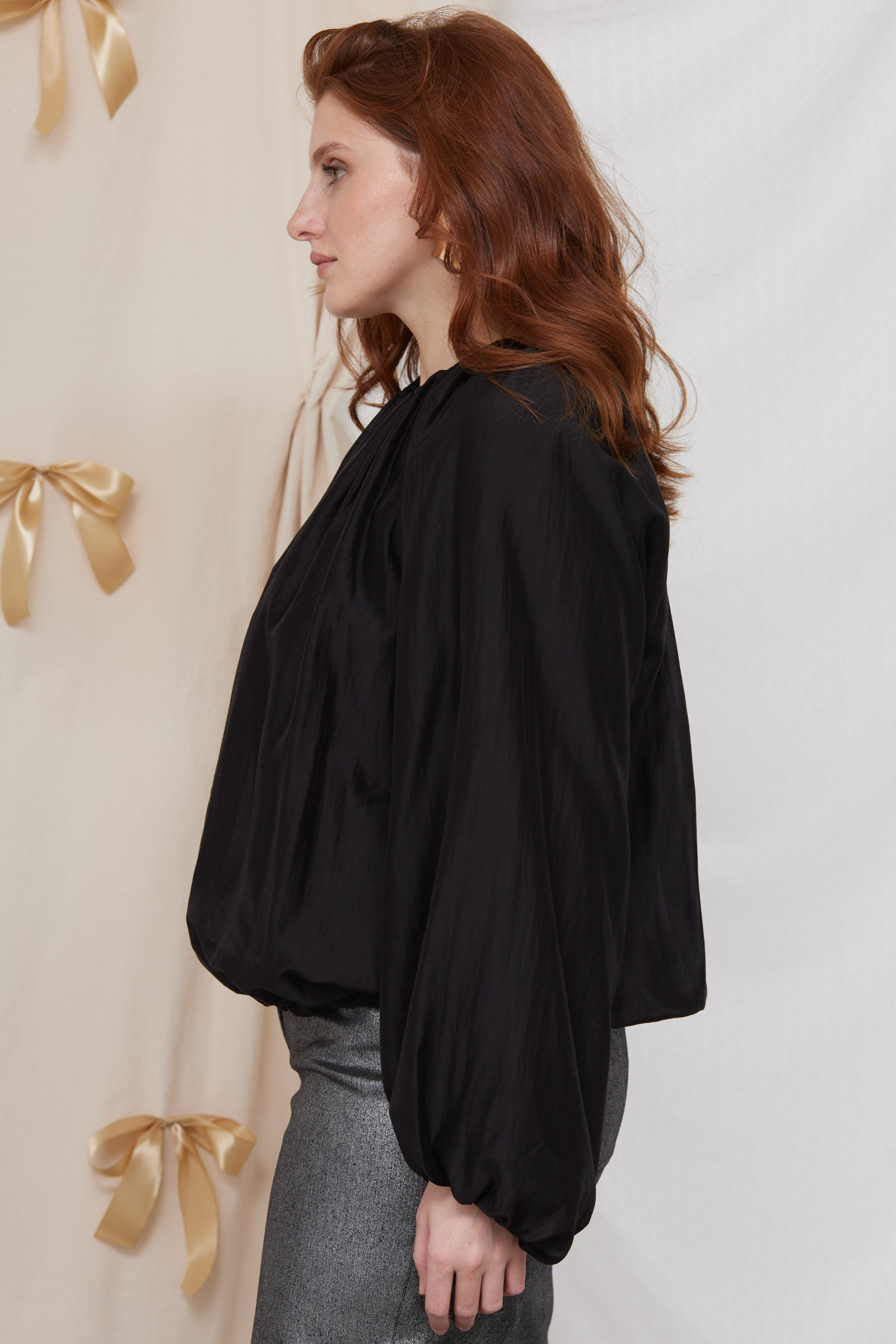 Объемная блузка-баллон из полупрозрачного тенселя.