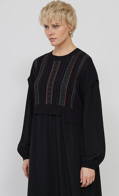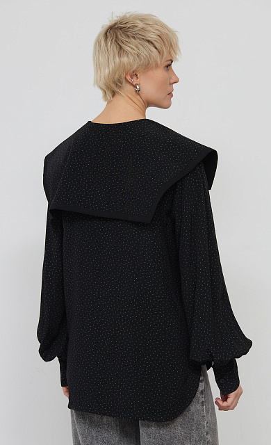 Блузка oversize из хлопка с вышивкой и сборкой на горловине.