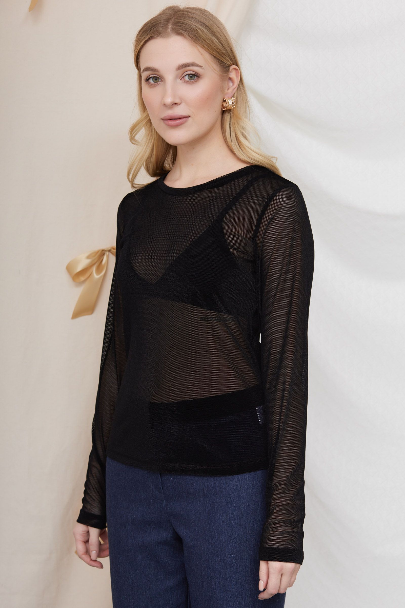 Лонгслив из бархатной сетки