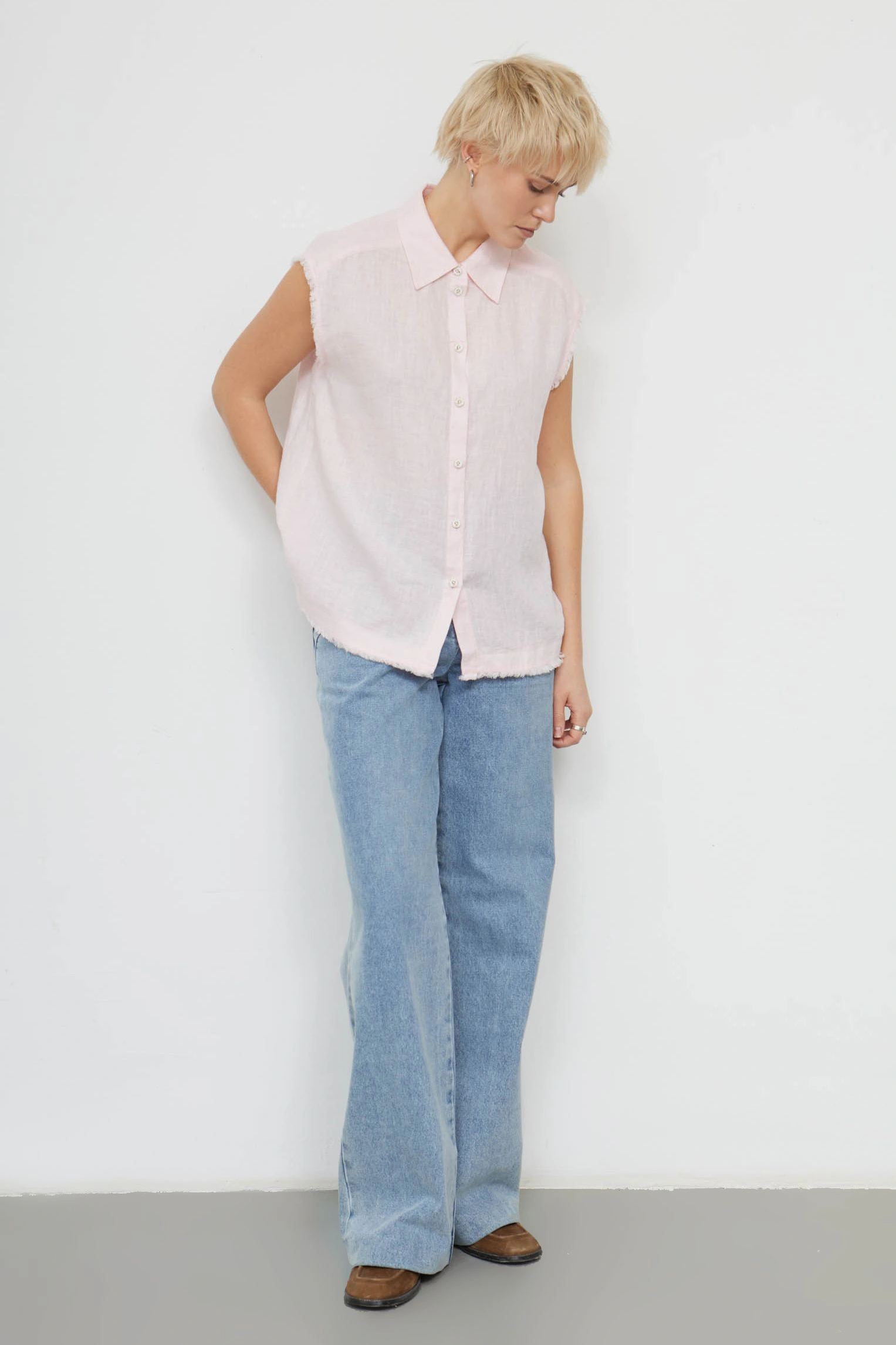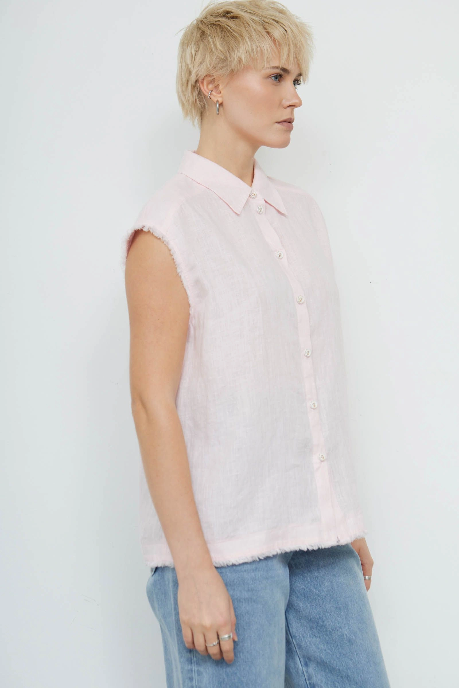 Рубашка изо льна без рукавов