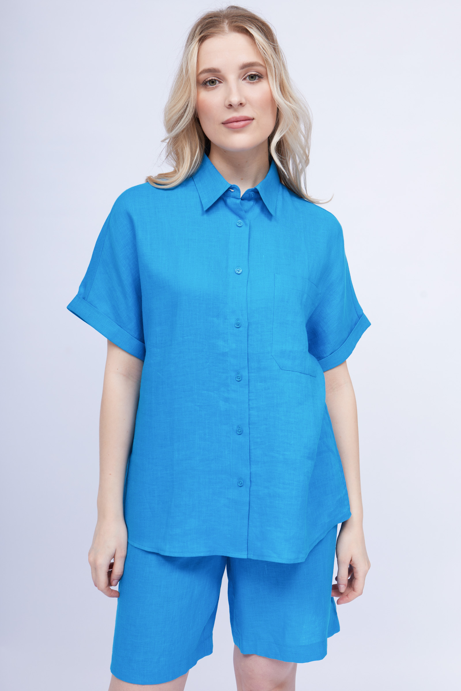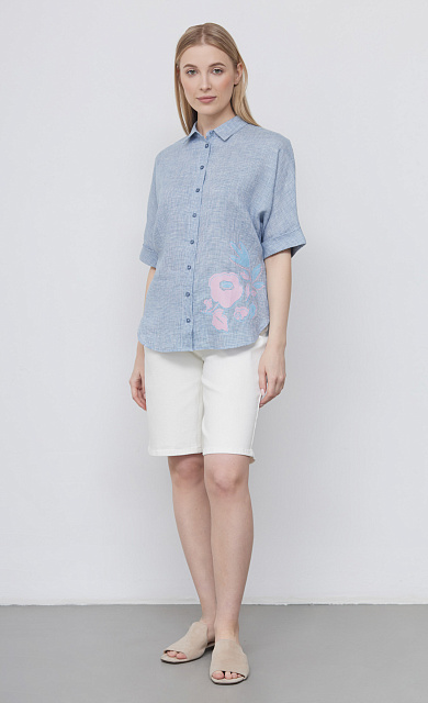 Льняная рубашка с короткими рукавами.