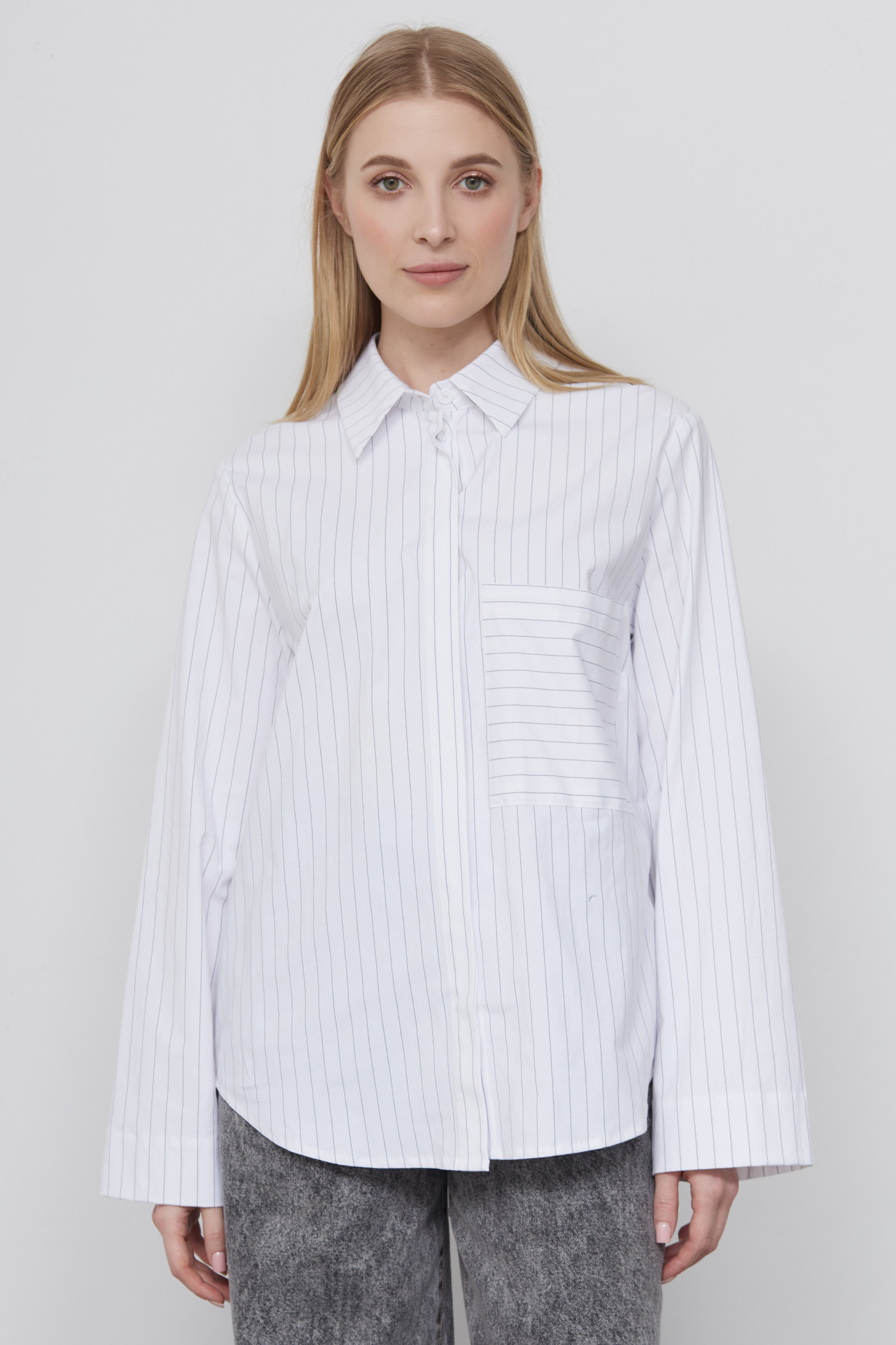 Рубашка oversize из смесового хлопка в полоску с нагрудным карманом.