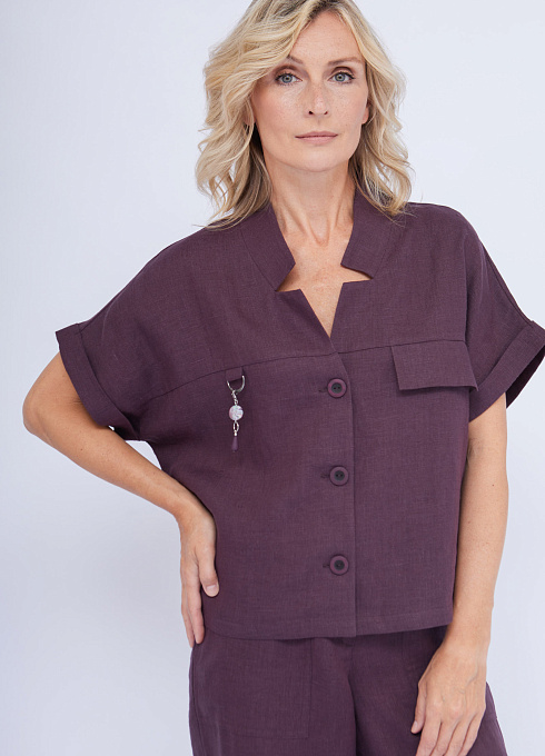 Льняная укороченная блузка oversize с ложным карманом.
