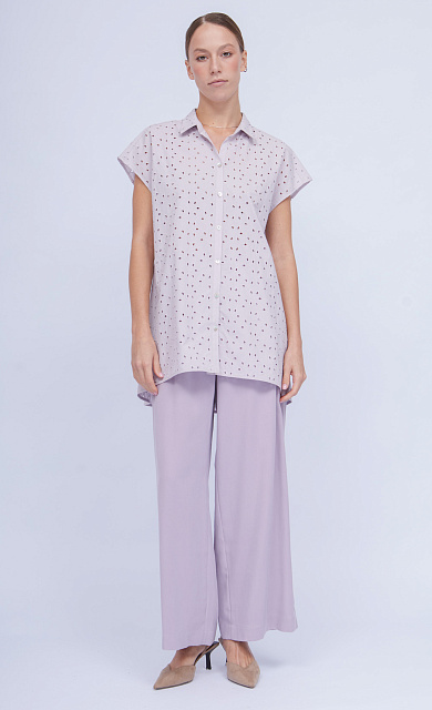 Блузка oversize изо льна и хлопка с абстрактным принтом.