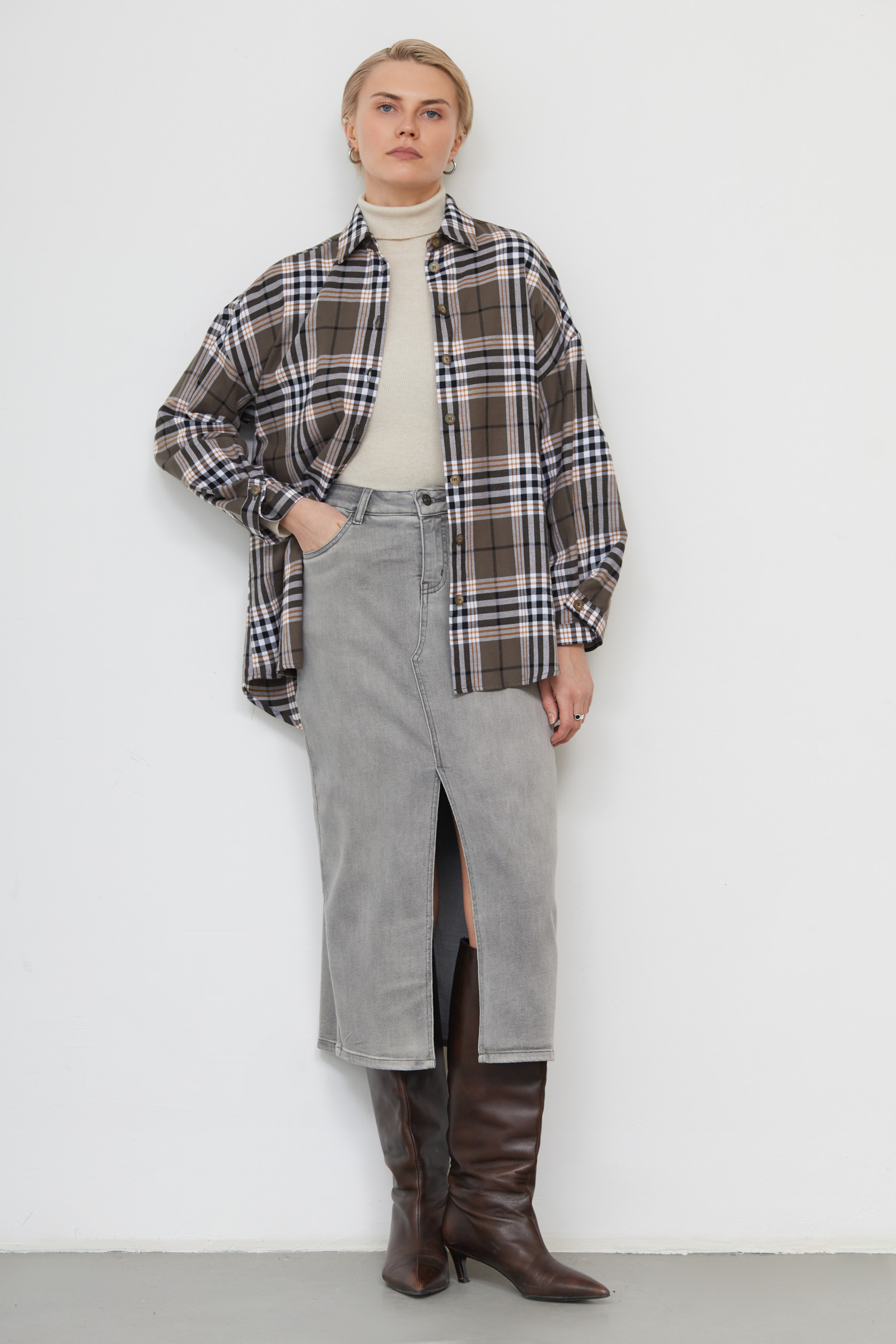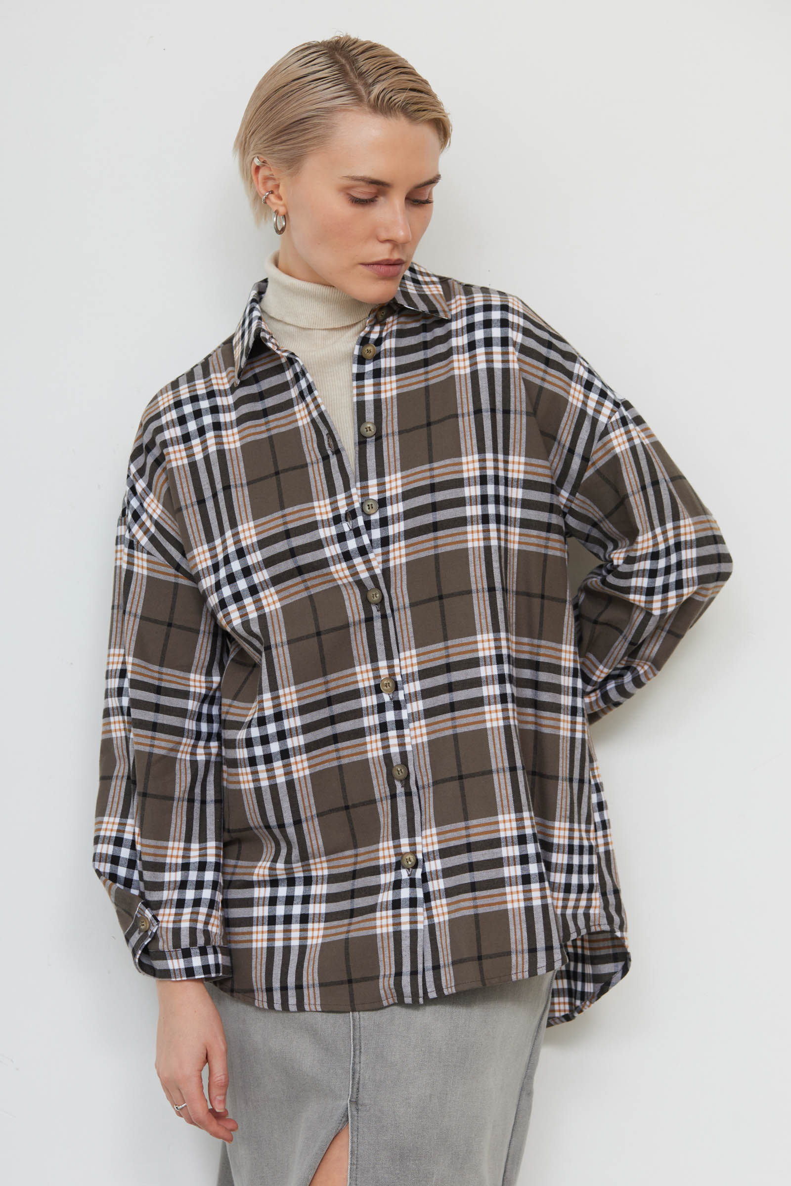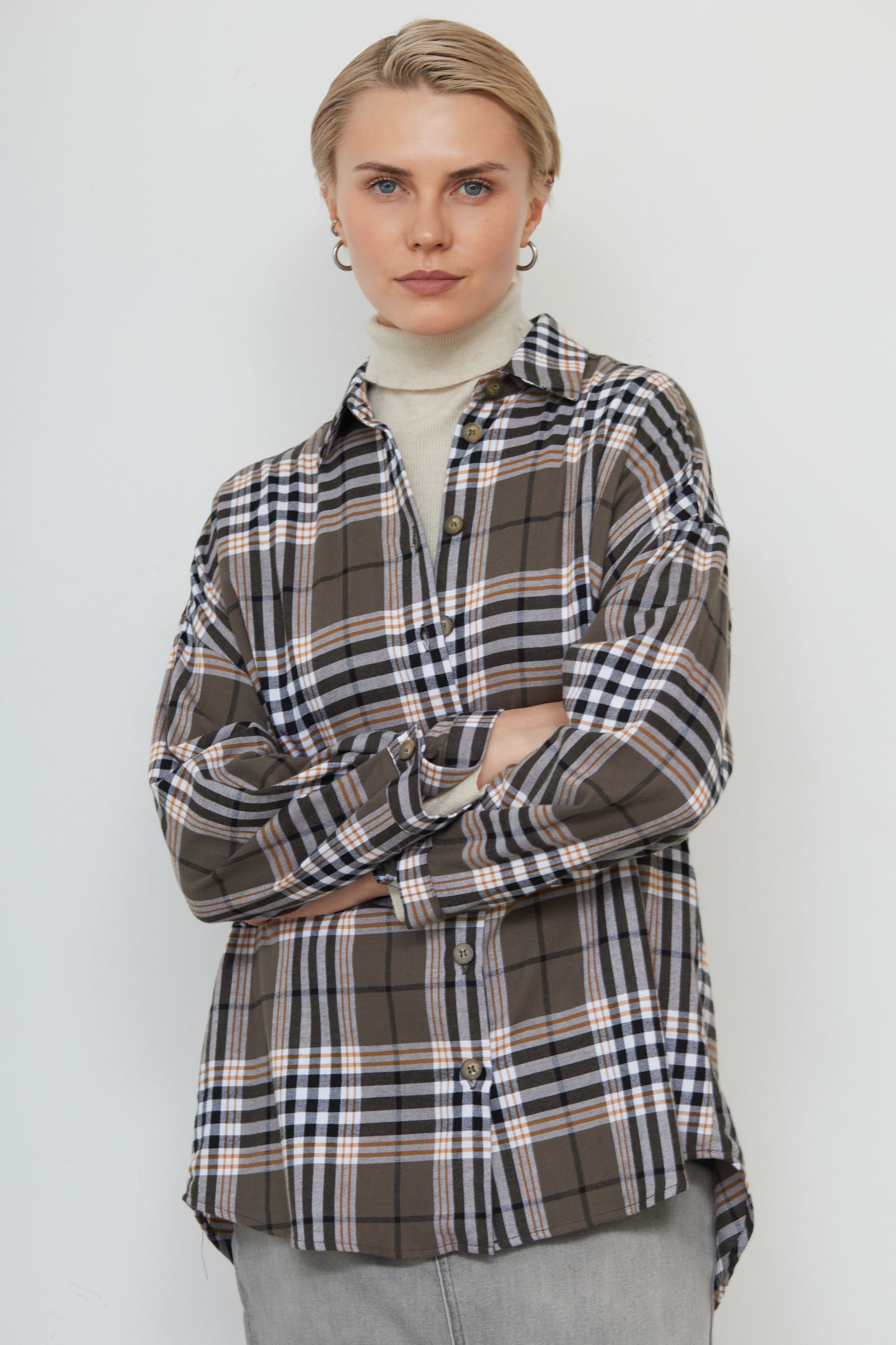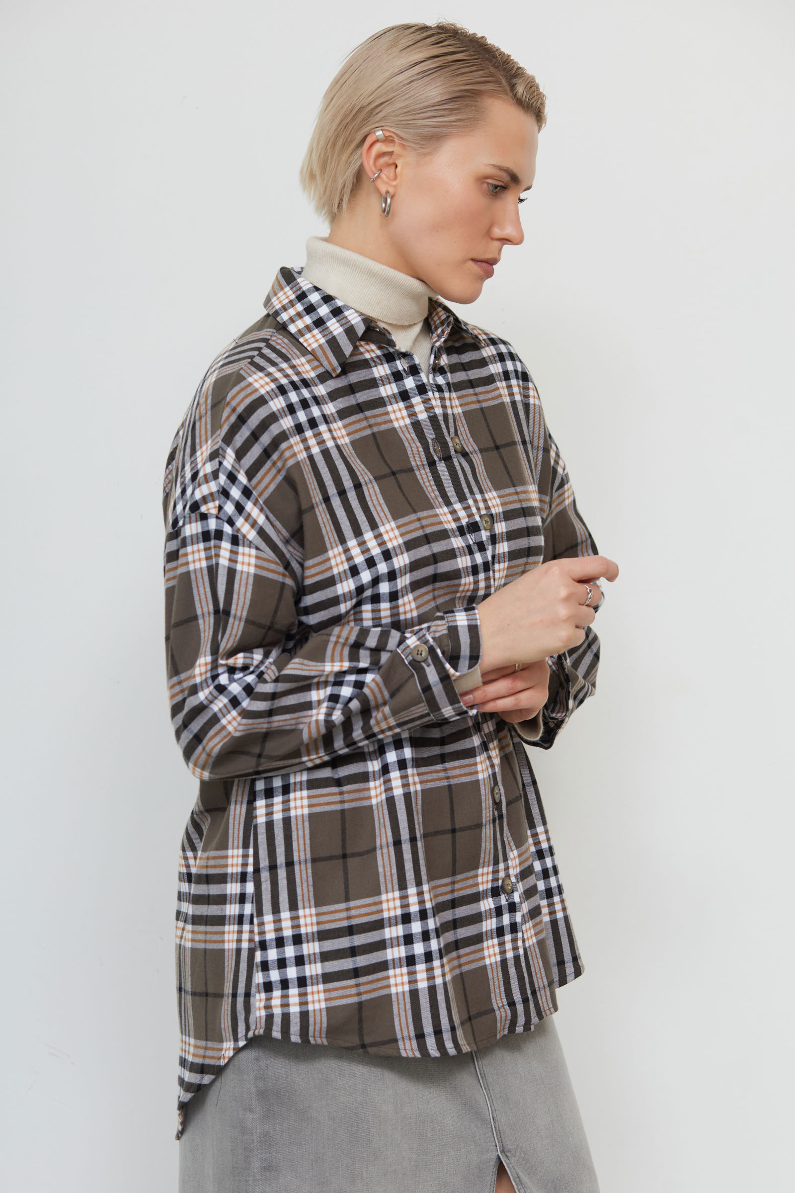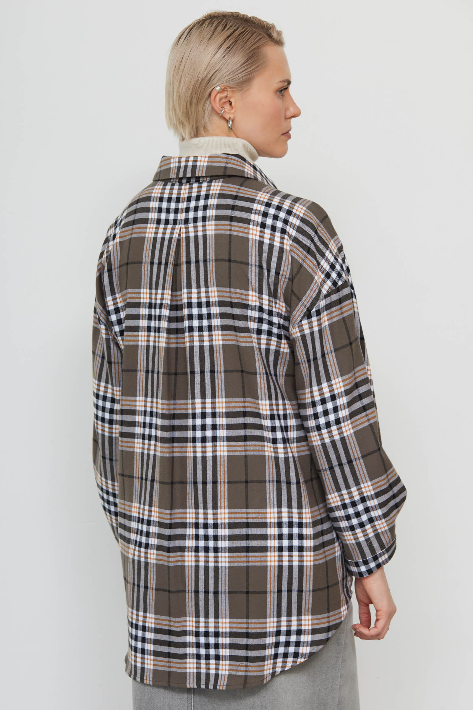 Фланелевая рубашка oversize в клетку со скошенными манжетами.