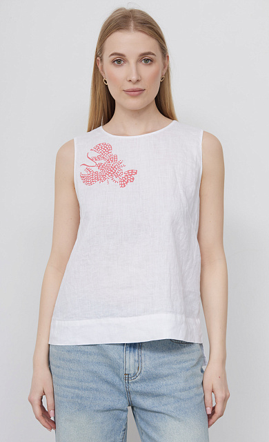 Блузка из хлопка и льна на резинке с декоративными оборками.