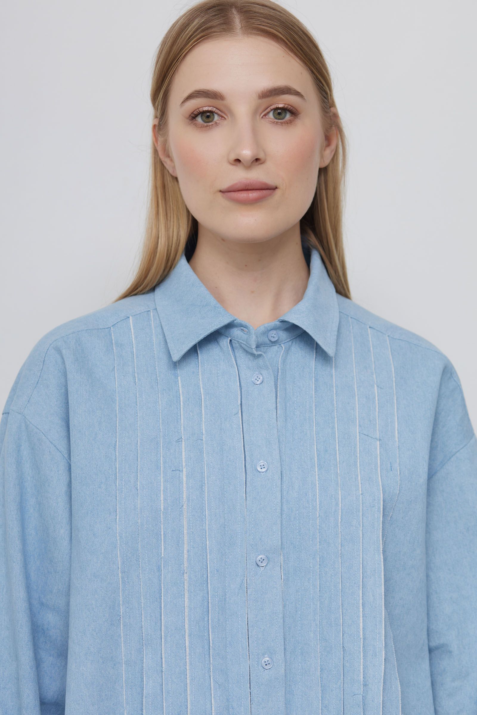 Рубашка из денима с рюшами