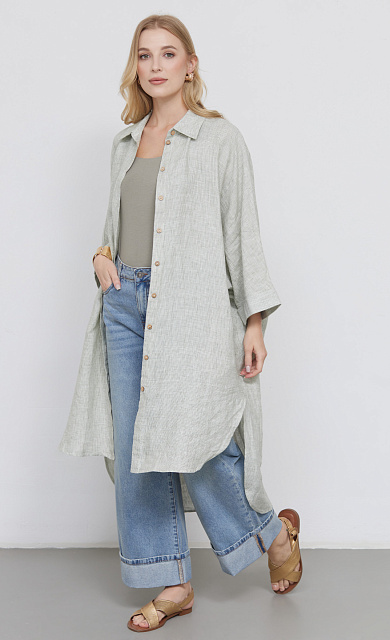 Блузка oversize из хлопка с вышивкой и сборкой на горловине.