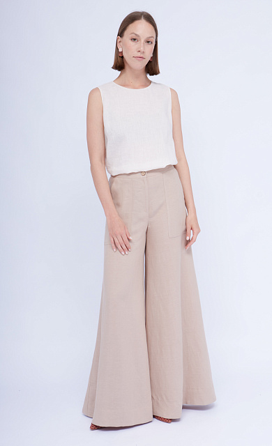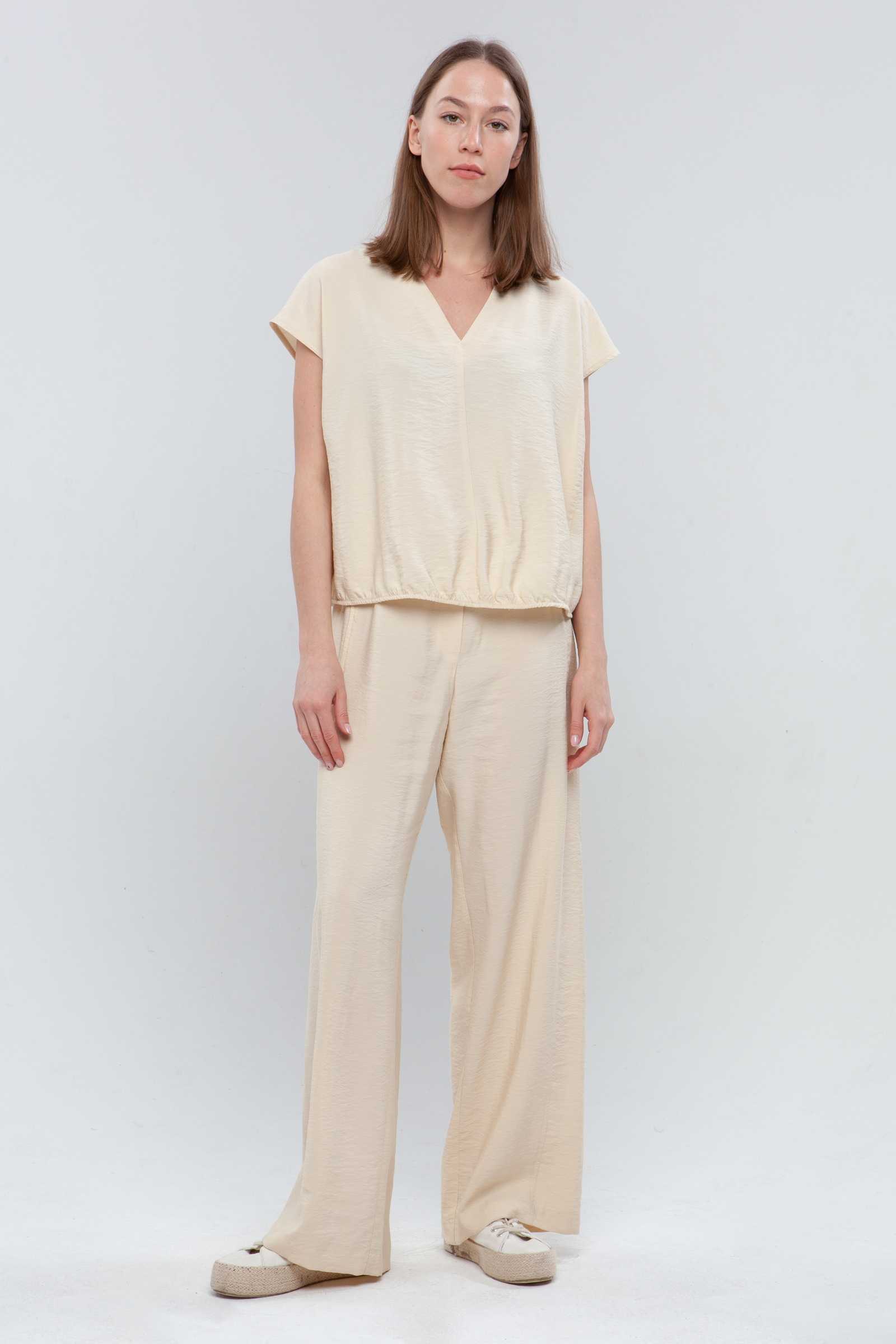 Широкие брюки из вискозы с жатым эффектом на эластичном поясе с кулиской.