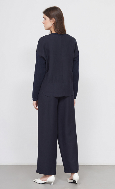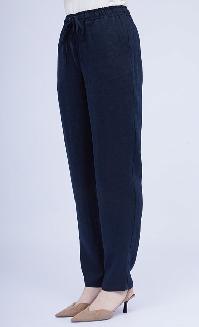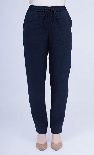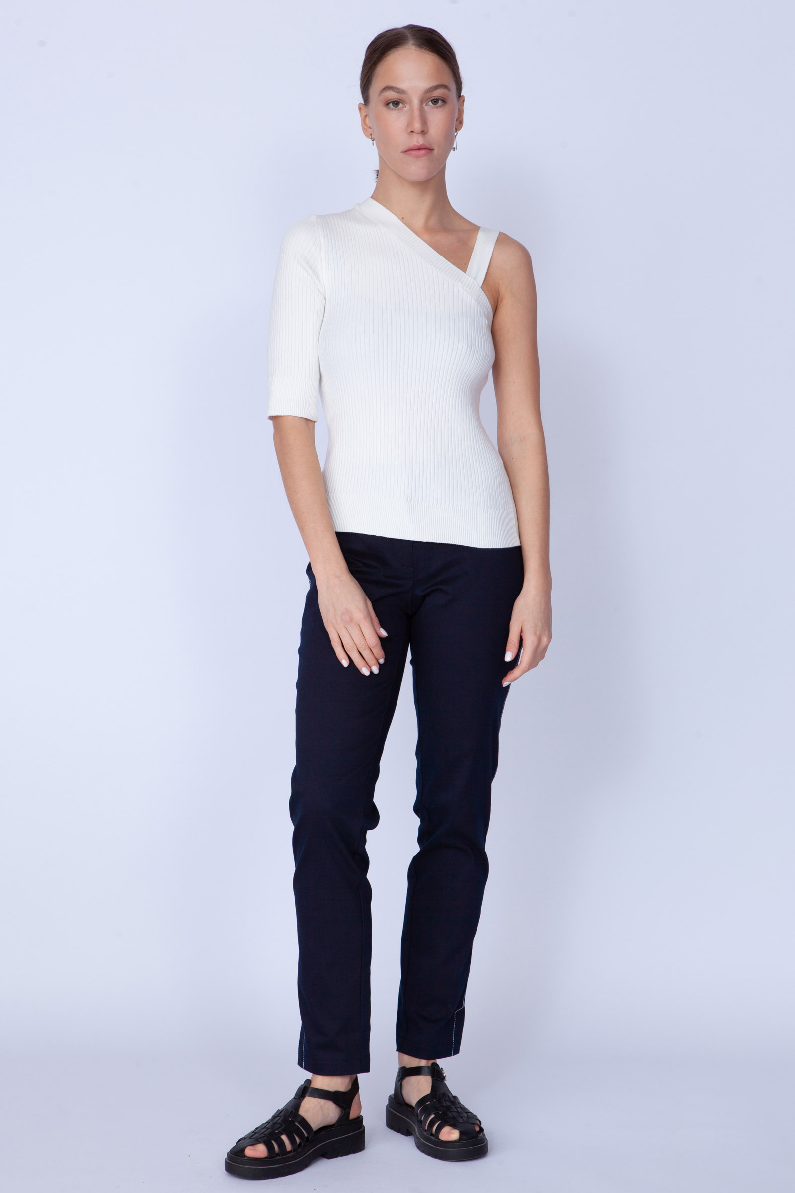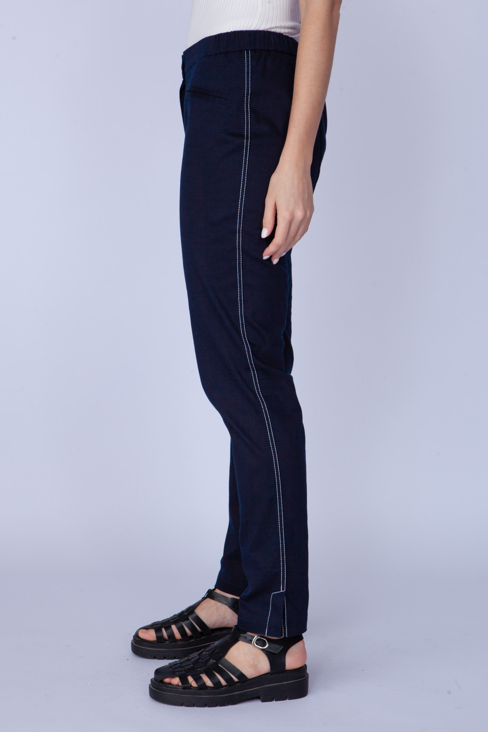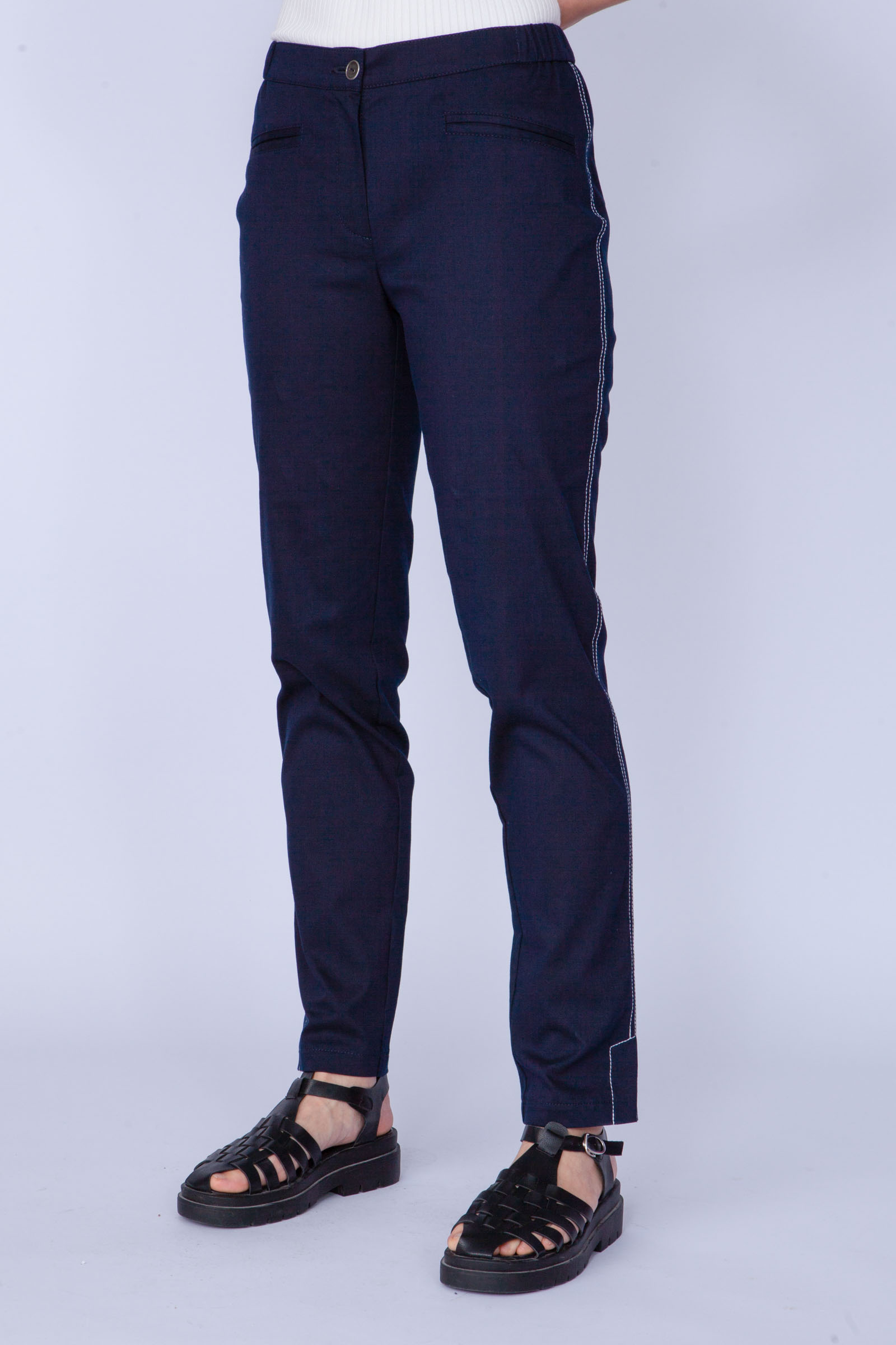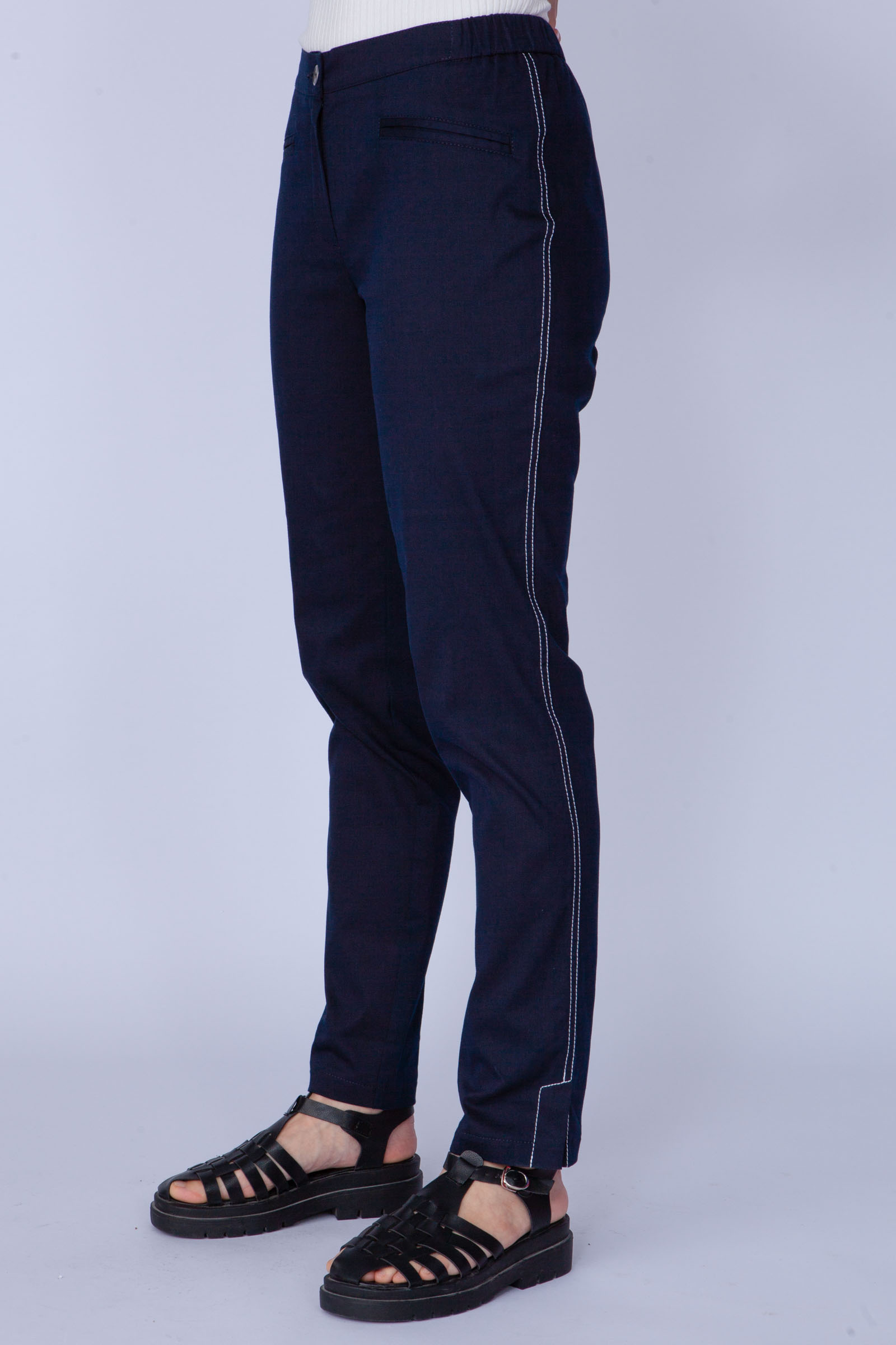 Зауженные брюки из эластичного хлопка с контрастными отстрочками.