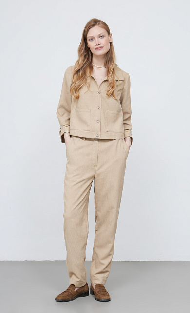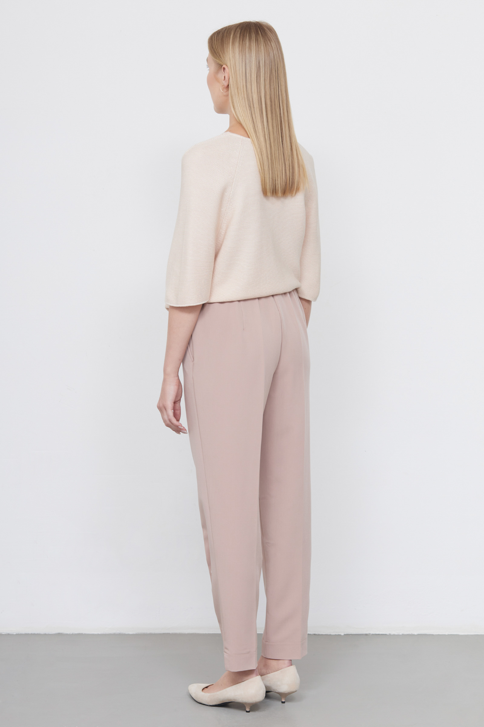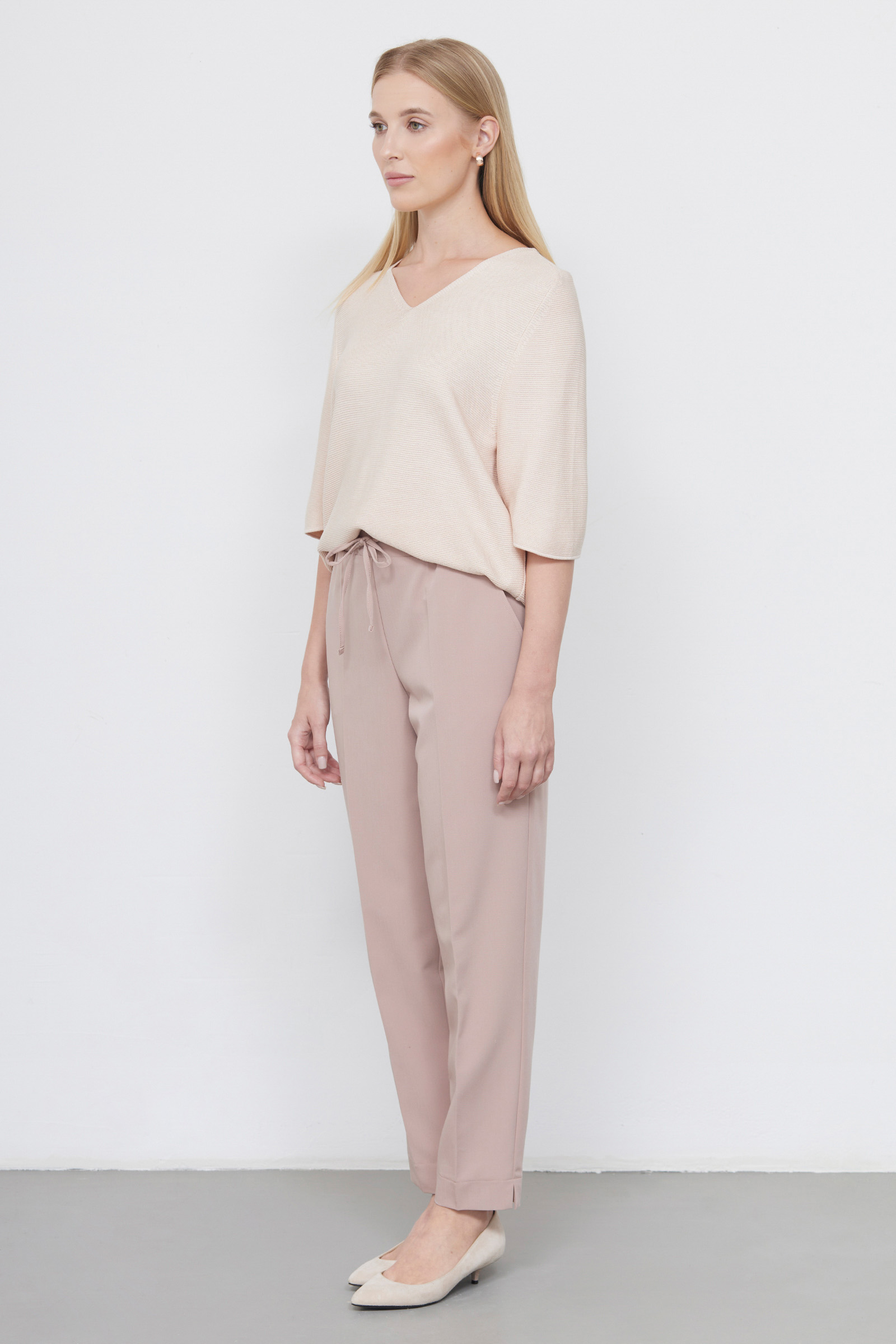 Классические зауженные брюки из поливискозы на эластичном поясе с кулиской.