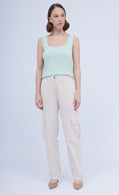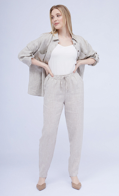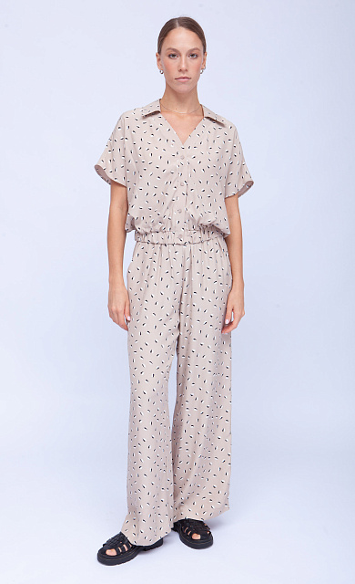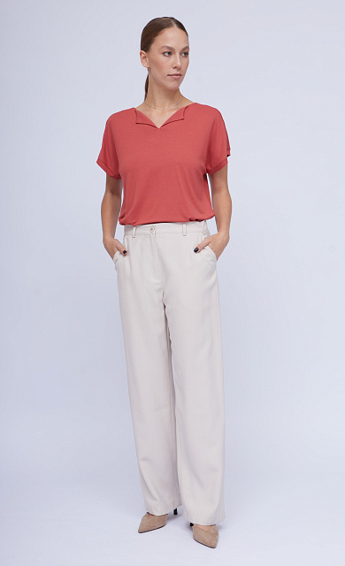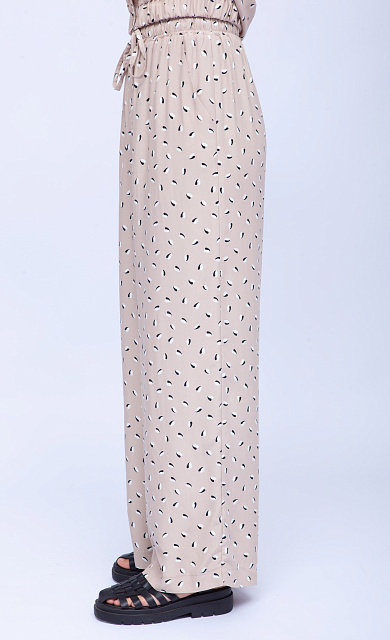 Широкие брюки из мягкого вискозного трикотажа на эластичном поясе с кулиской.