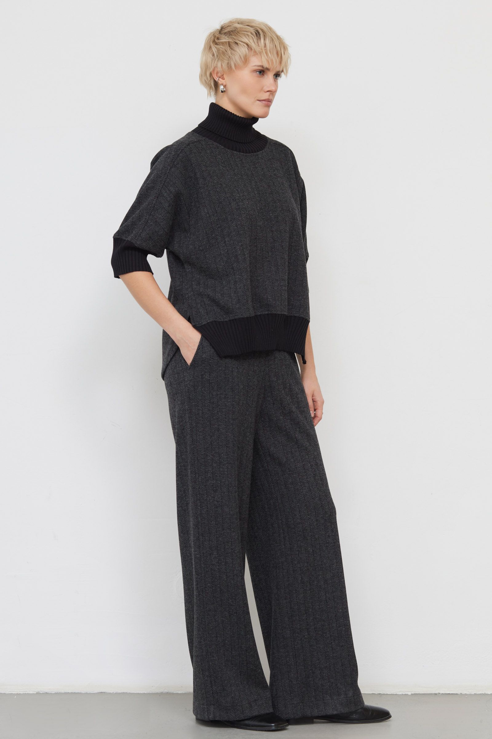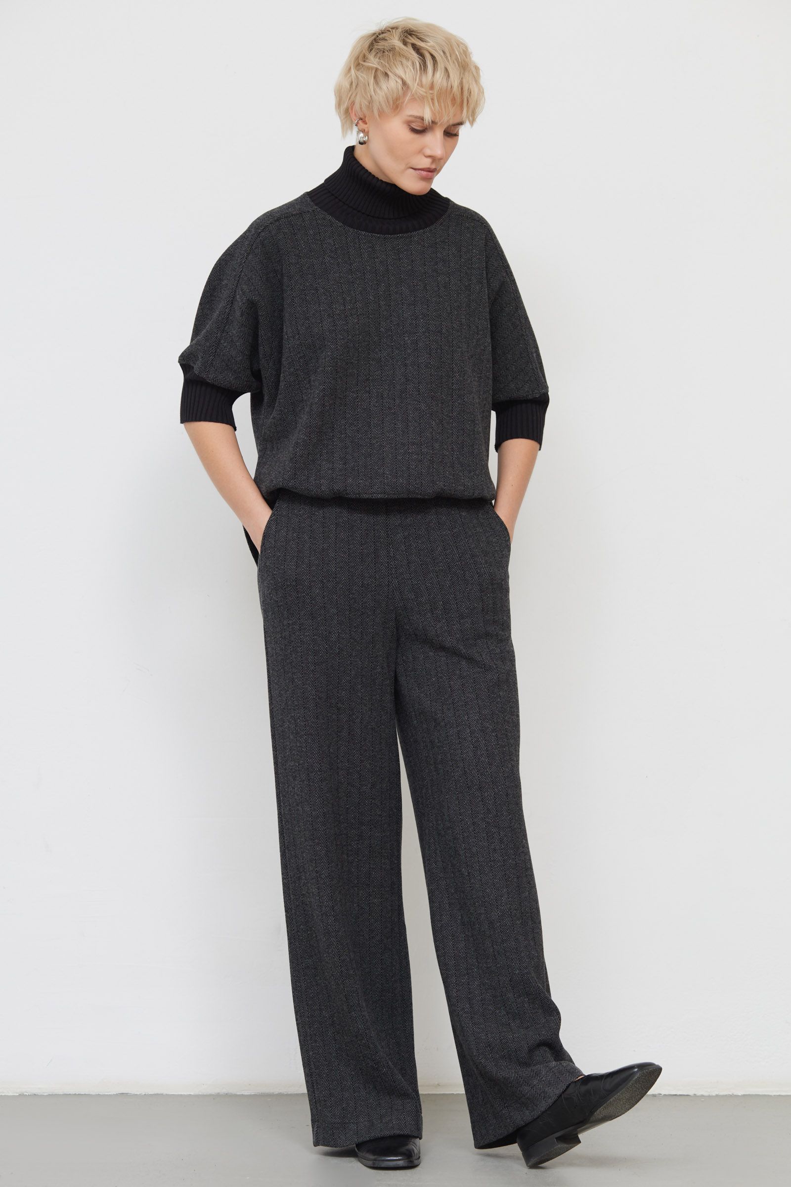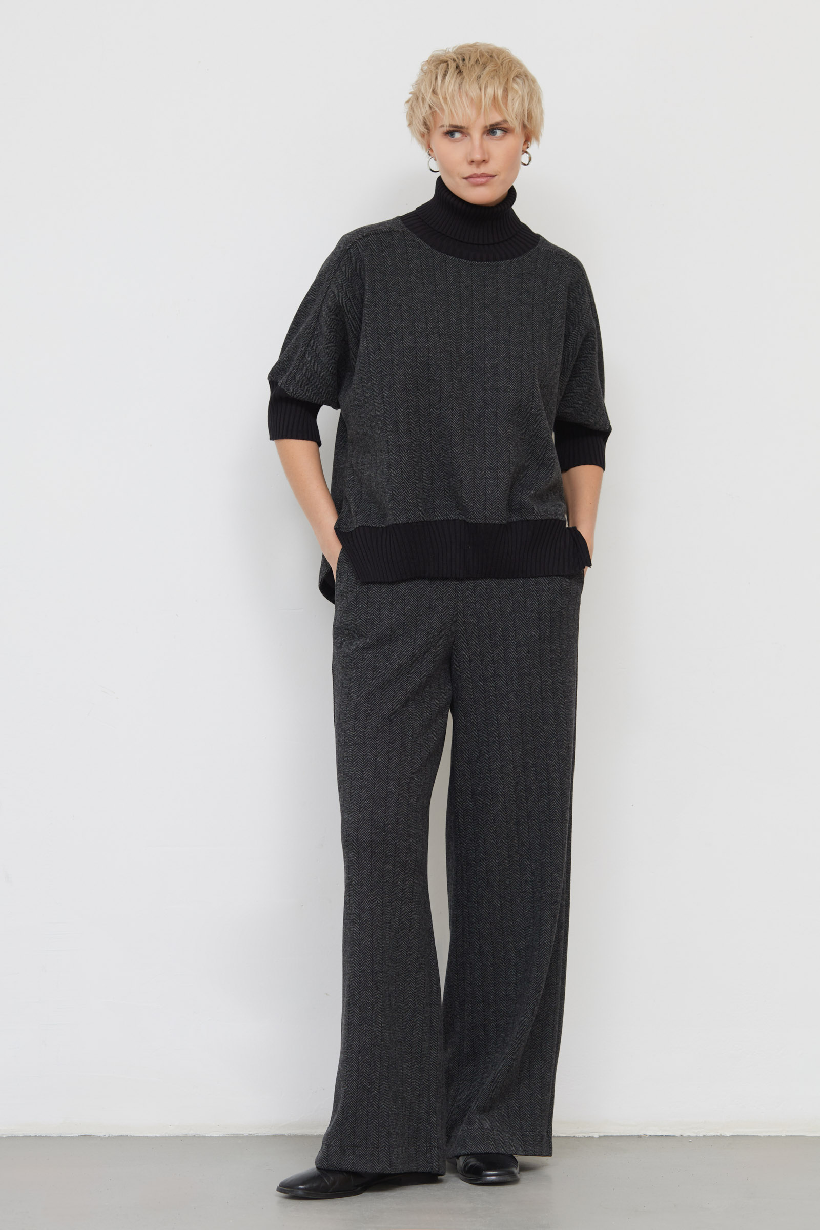 Брюки широкие в елочку