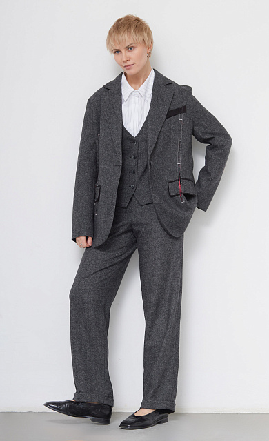 Широкие брюки из мягкой костюмной ткани с двойной застежкой.
