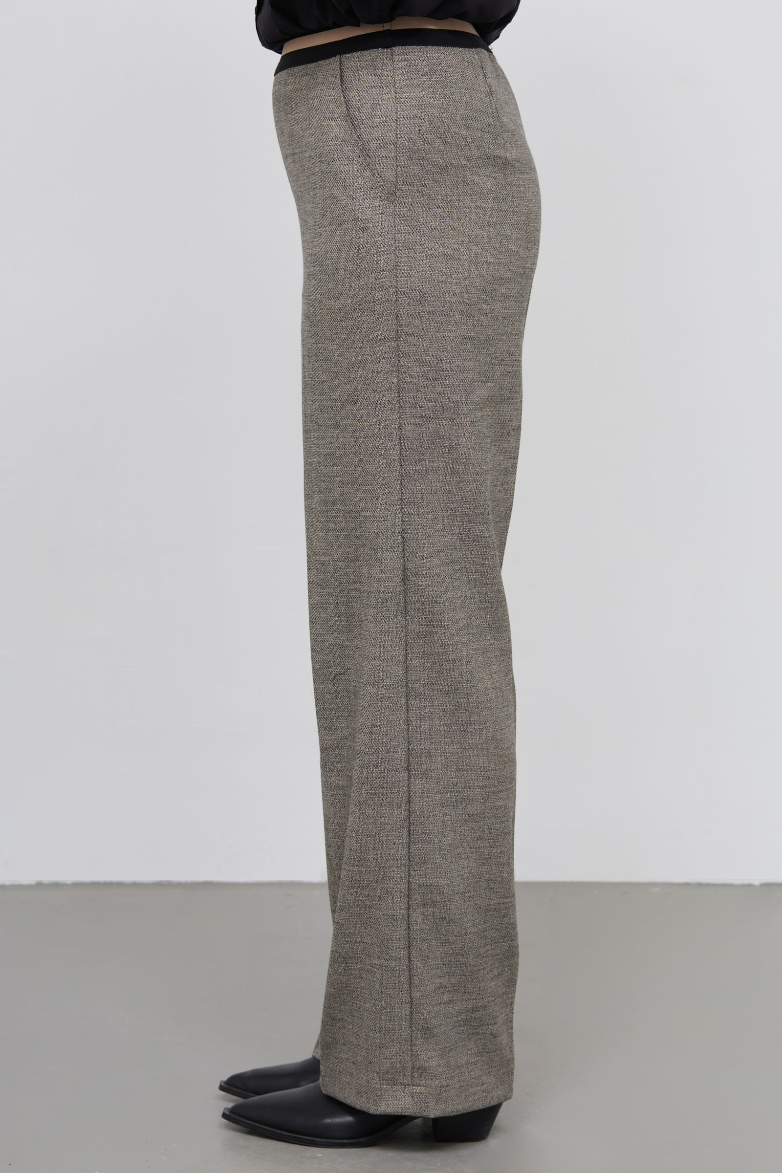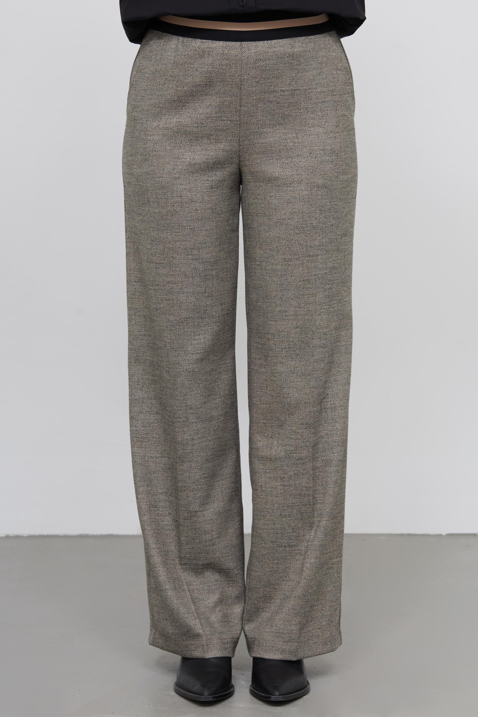 Широкие брюки на контрастном эластичном поясе.