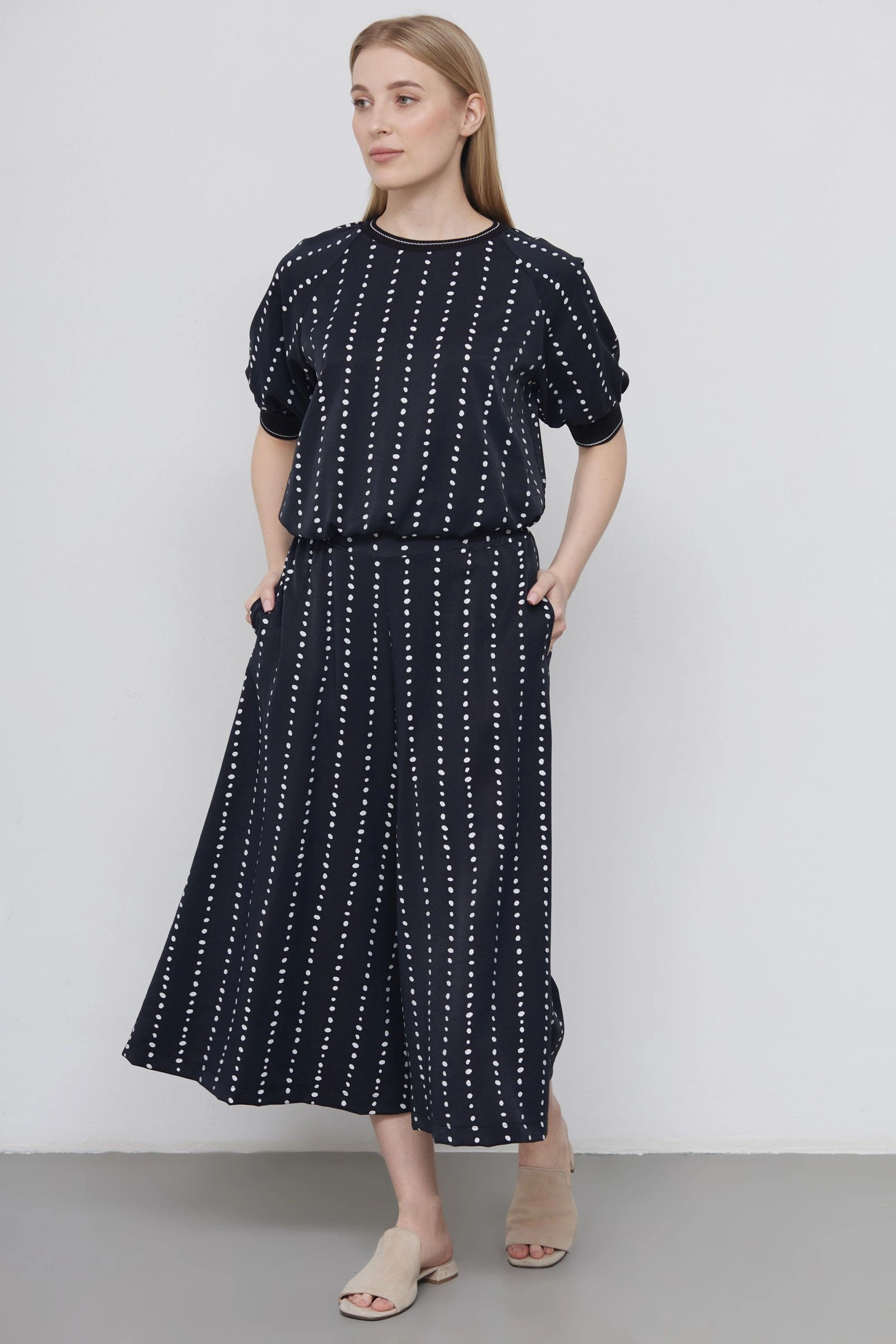 Юбка-брюки из вискозы в горошек