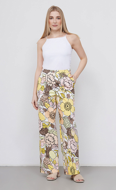 Слегка зауженные брюки из поливискозы с шерстью и принтом "пье-де-пуль".