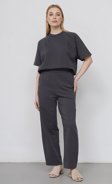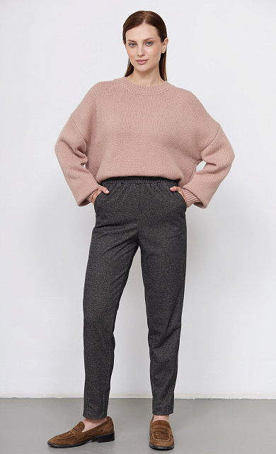 Брюки бананы из мягкого фланелевого трикотажа с меланжевым эффектом на эластичном поясе.
