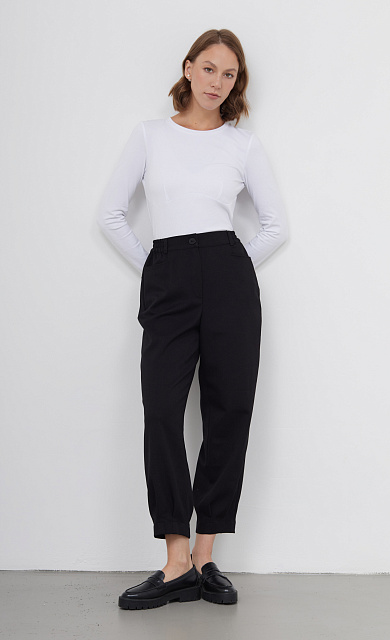 Объемные брюки джоггеры из мягкого неопрена с вытачками на коленях.