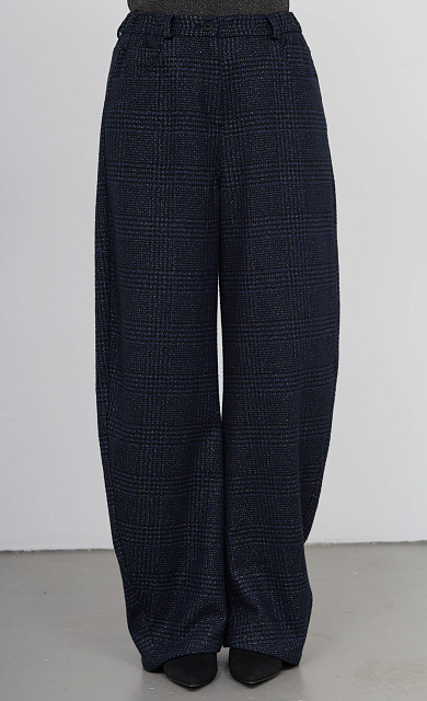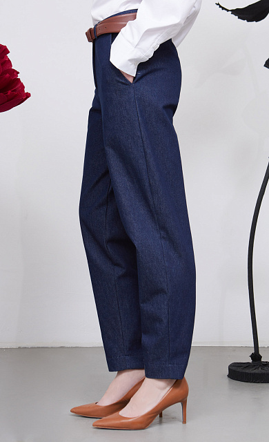Укороченные брюки-бананы из фактурной поливискозной ткани.