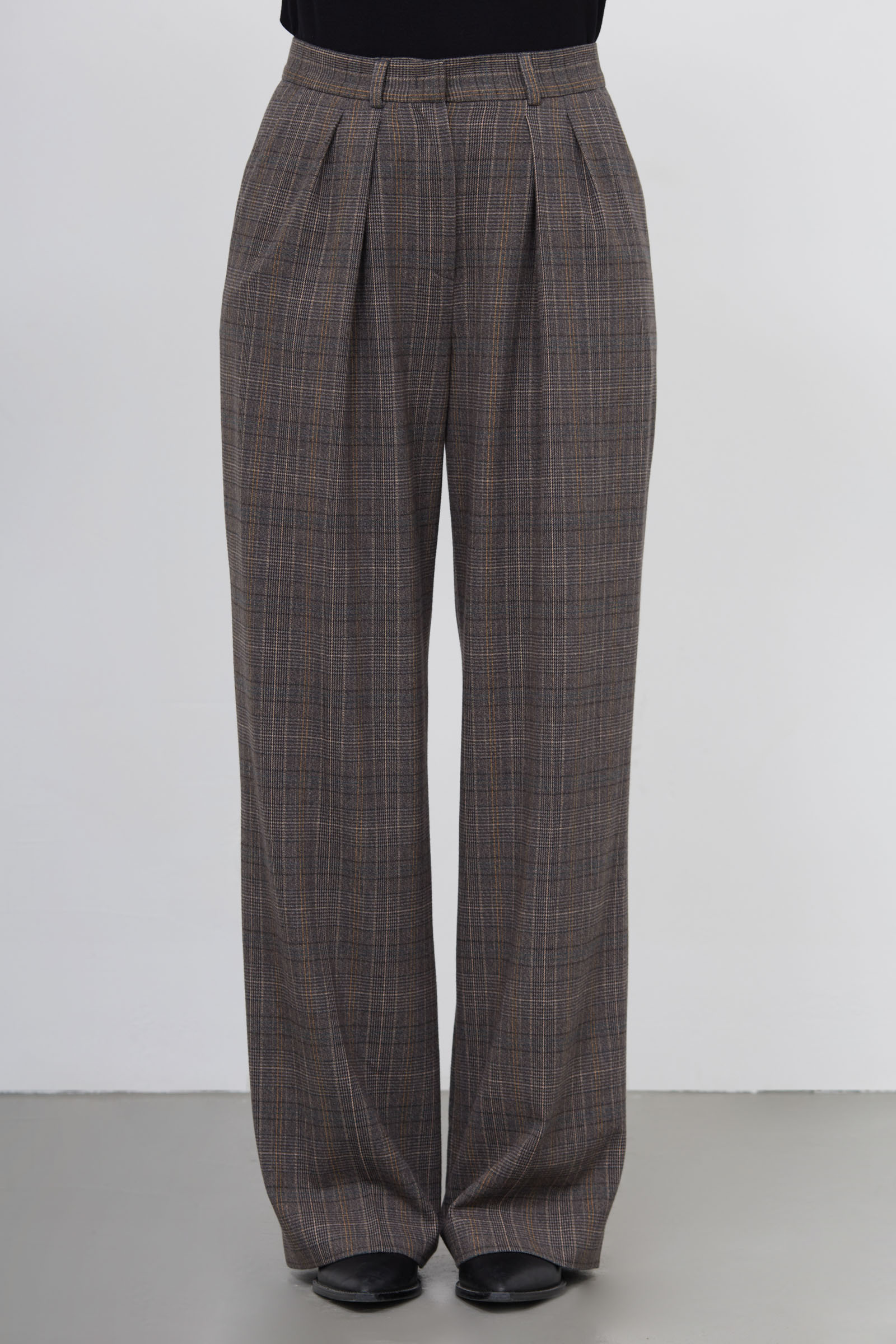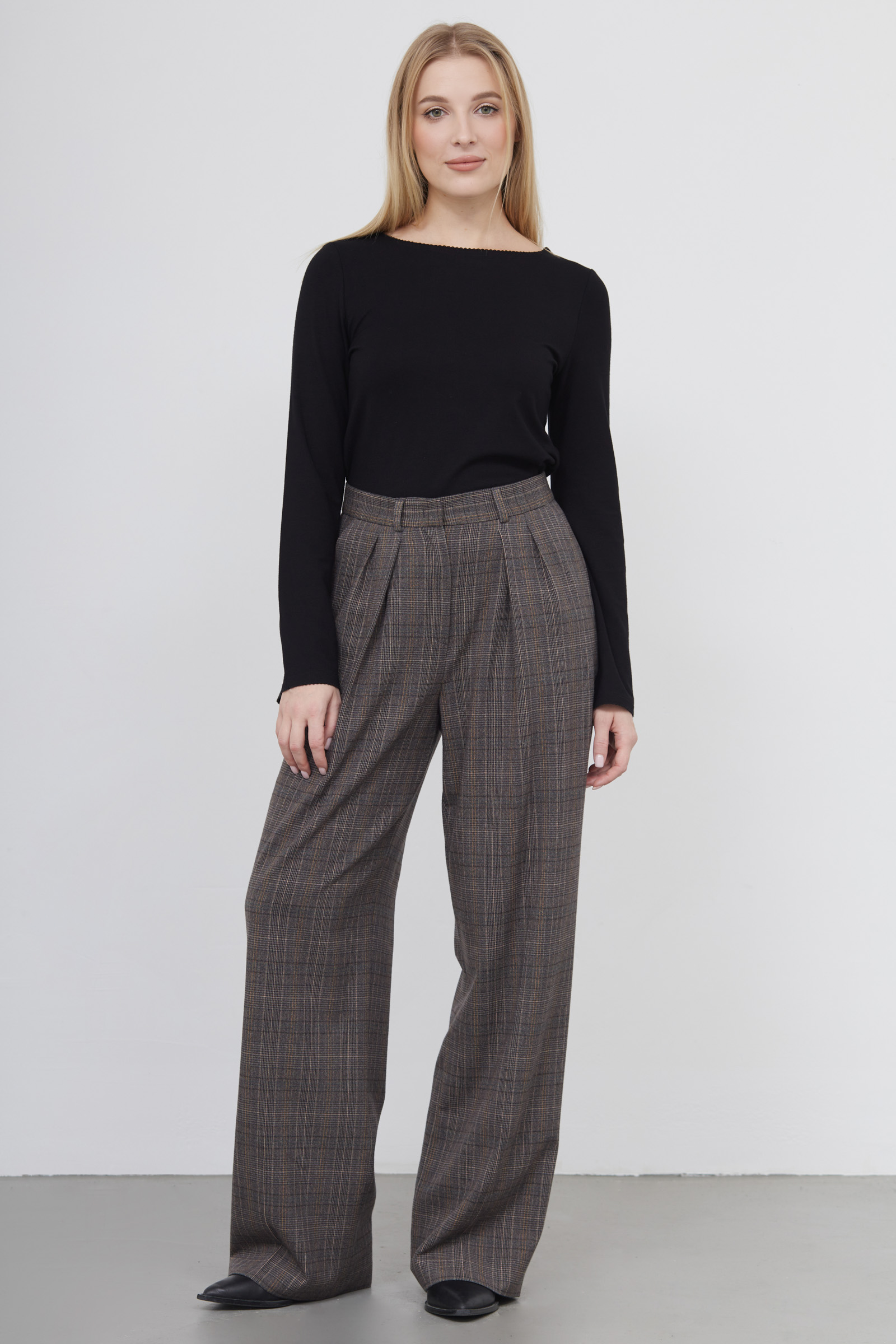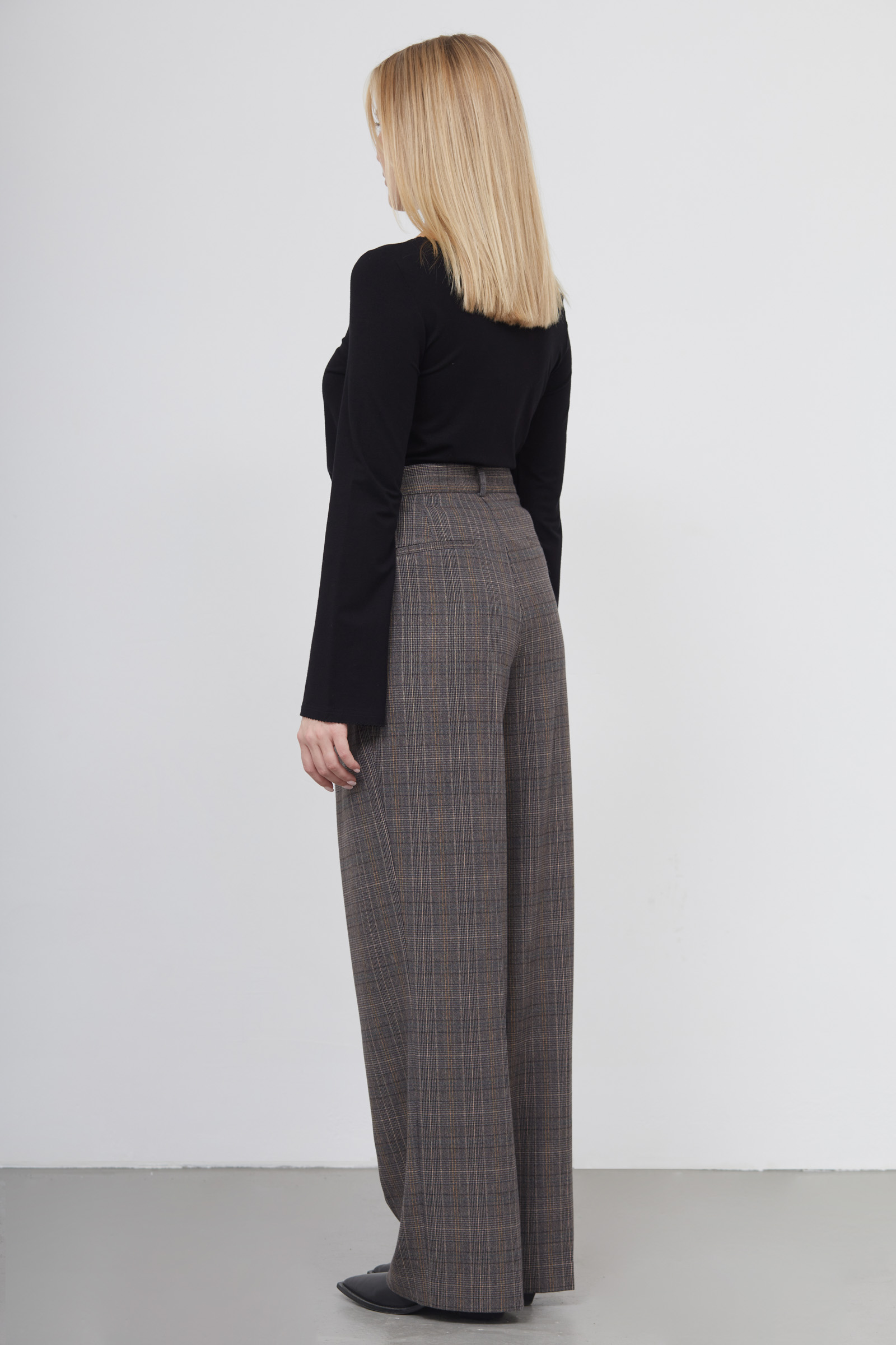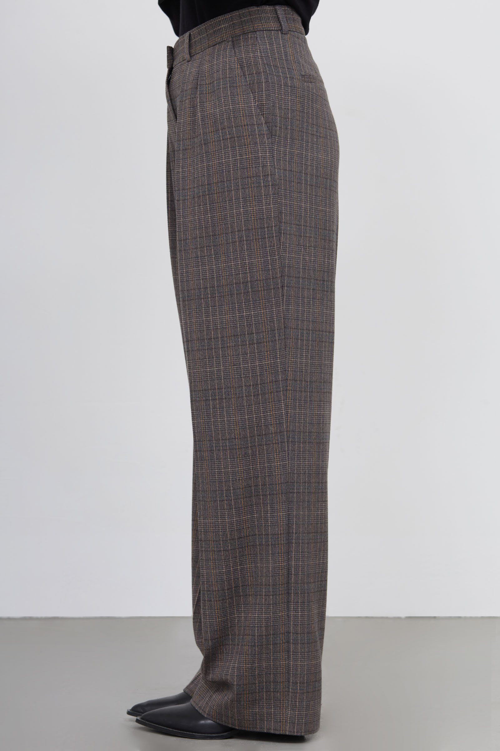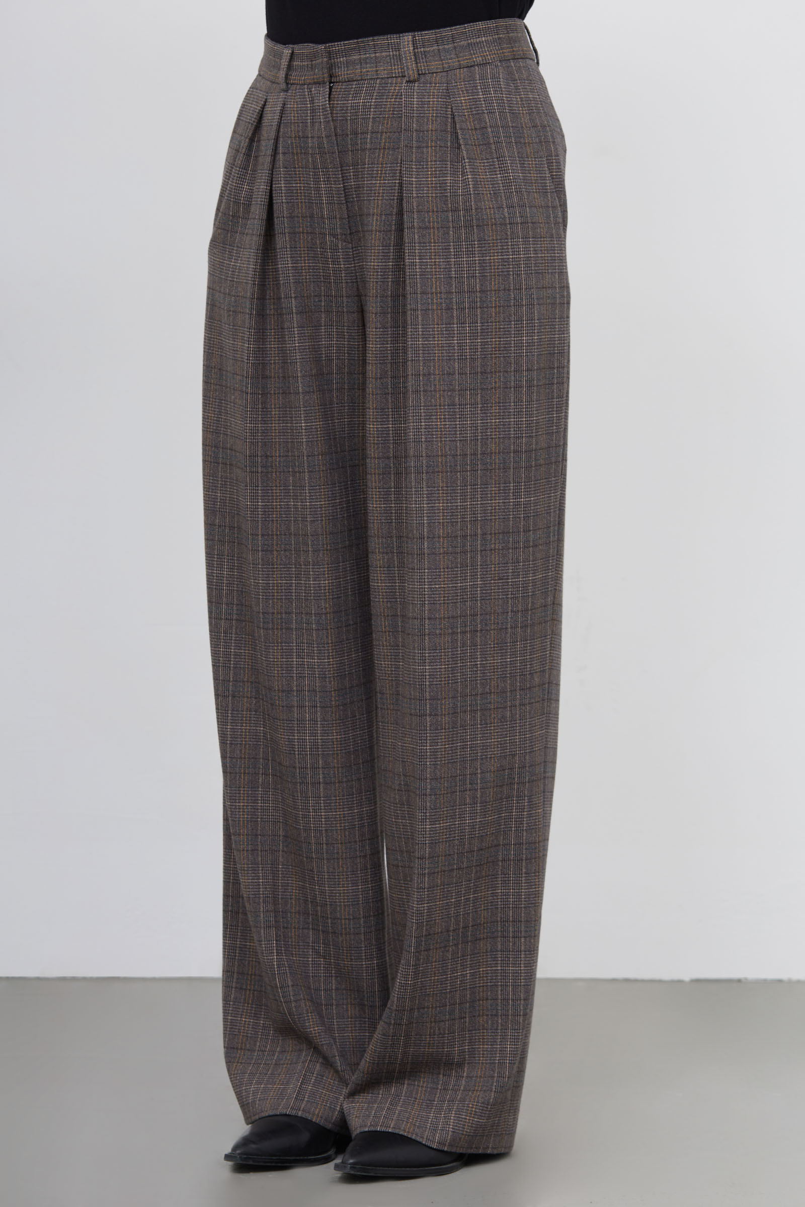 Широкие костюмные брюки в клетку.