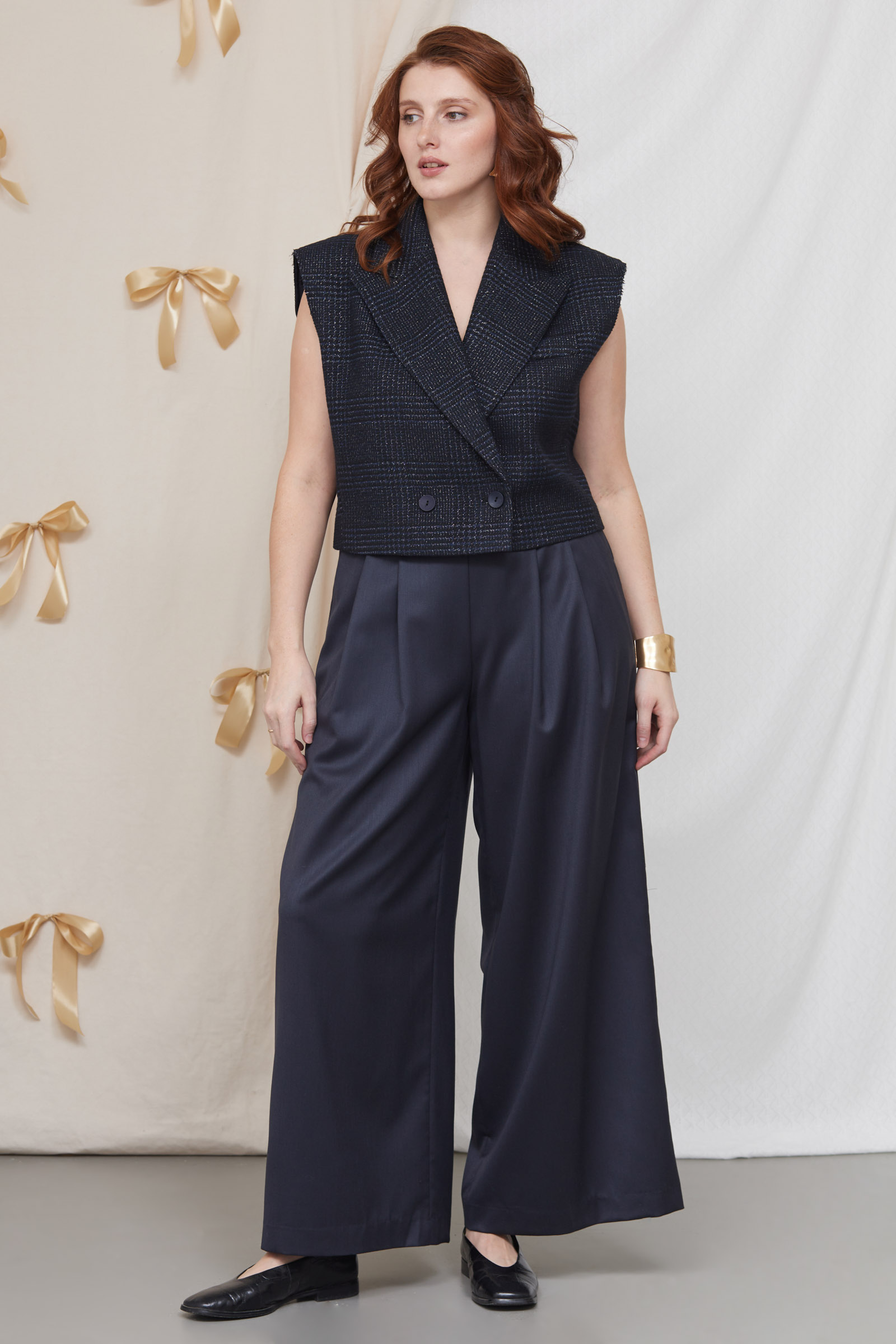 Широкие костюмные брюки с защипами из премиальной шерсти.