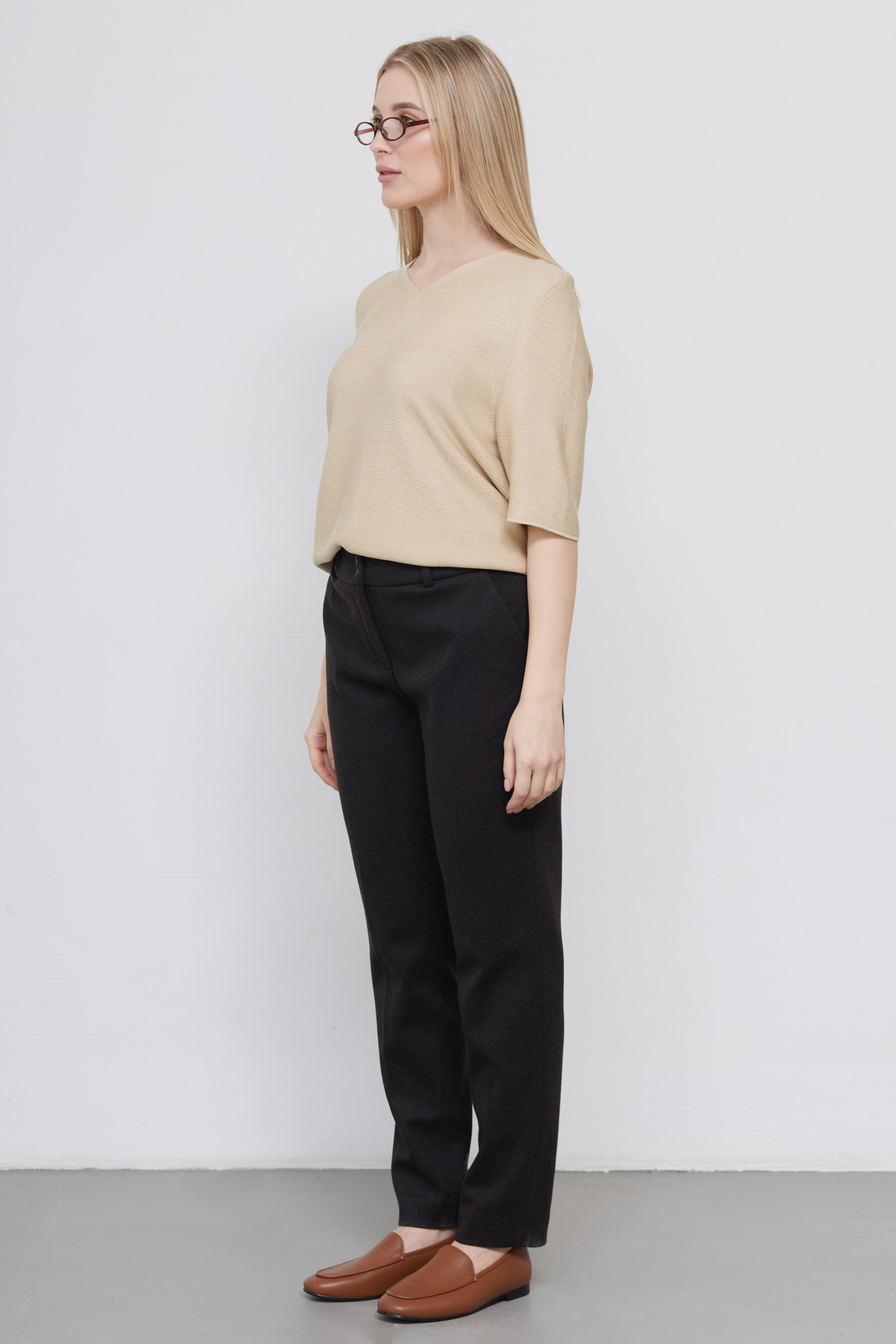 Классические зауженные брюки со стрелками из утепленного трикотажа.