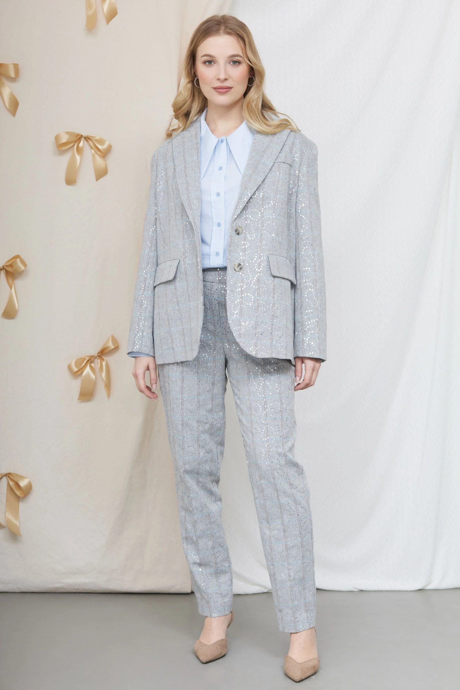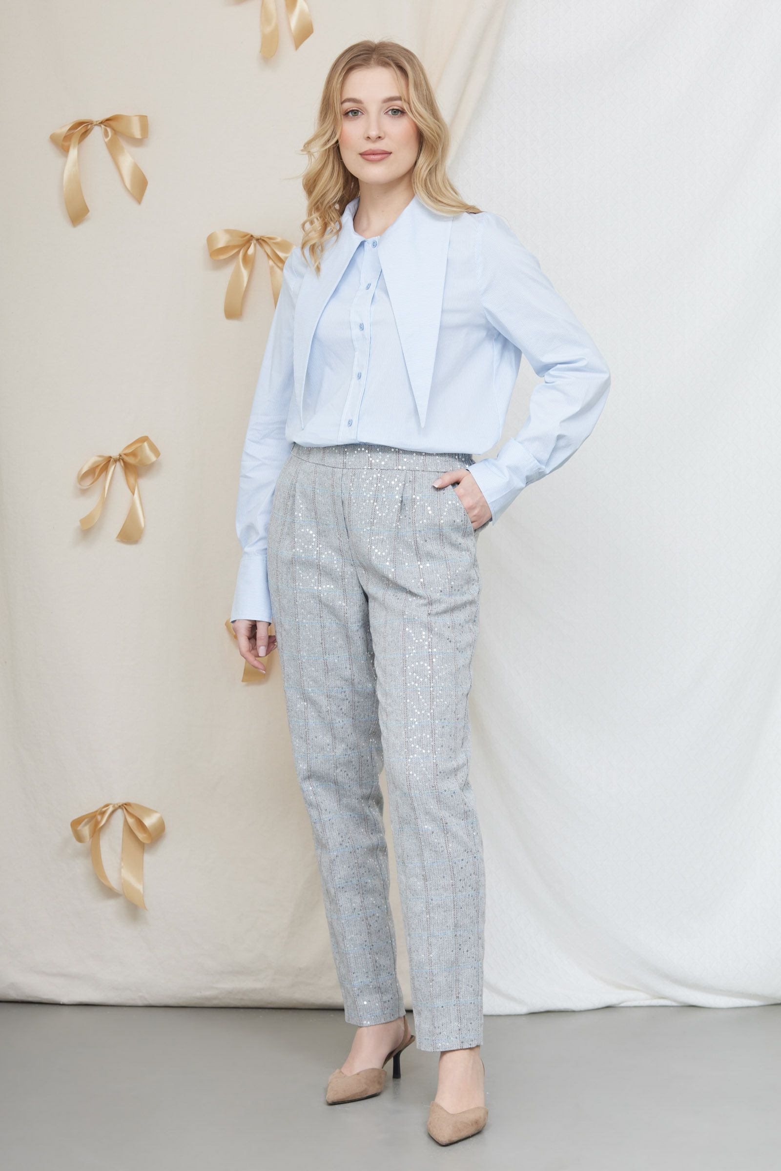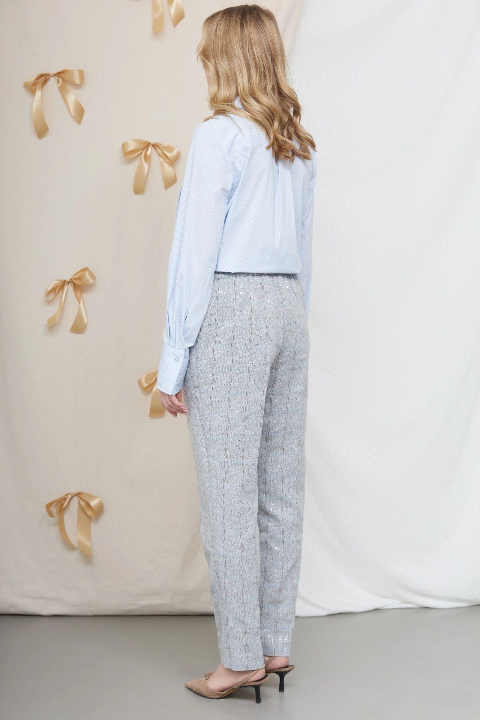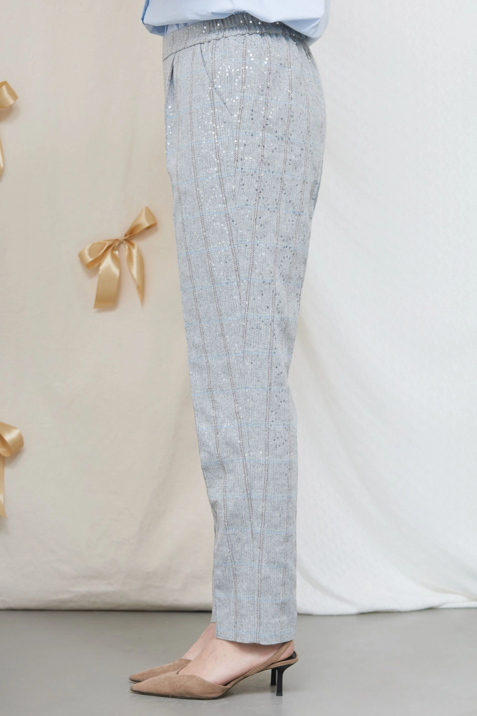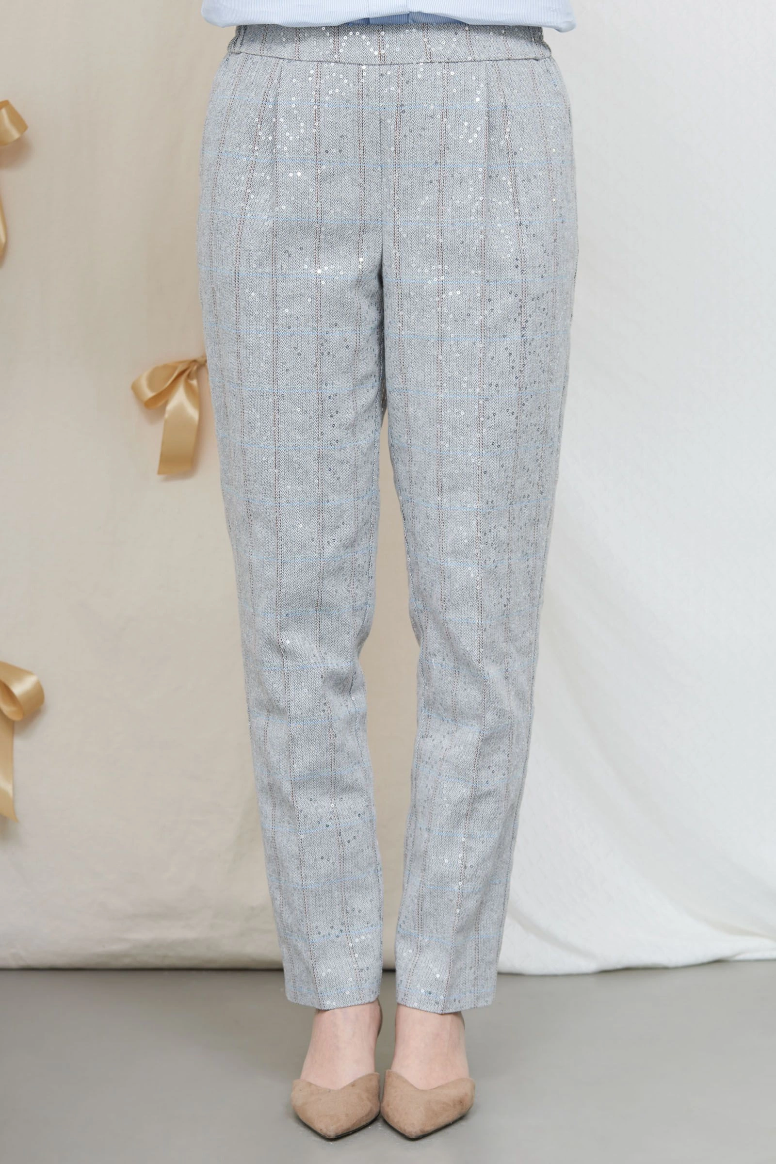 Брюки в клетку с пайетками