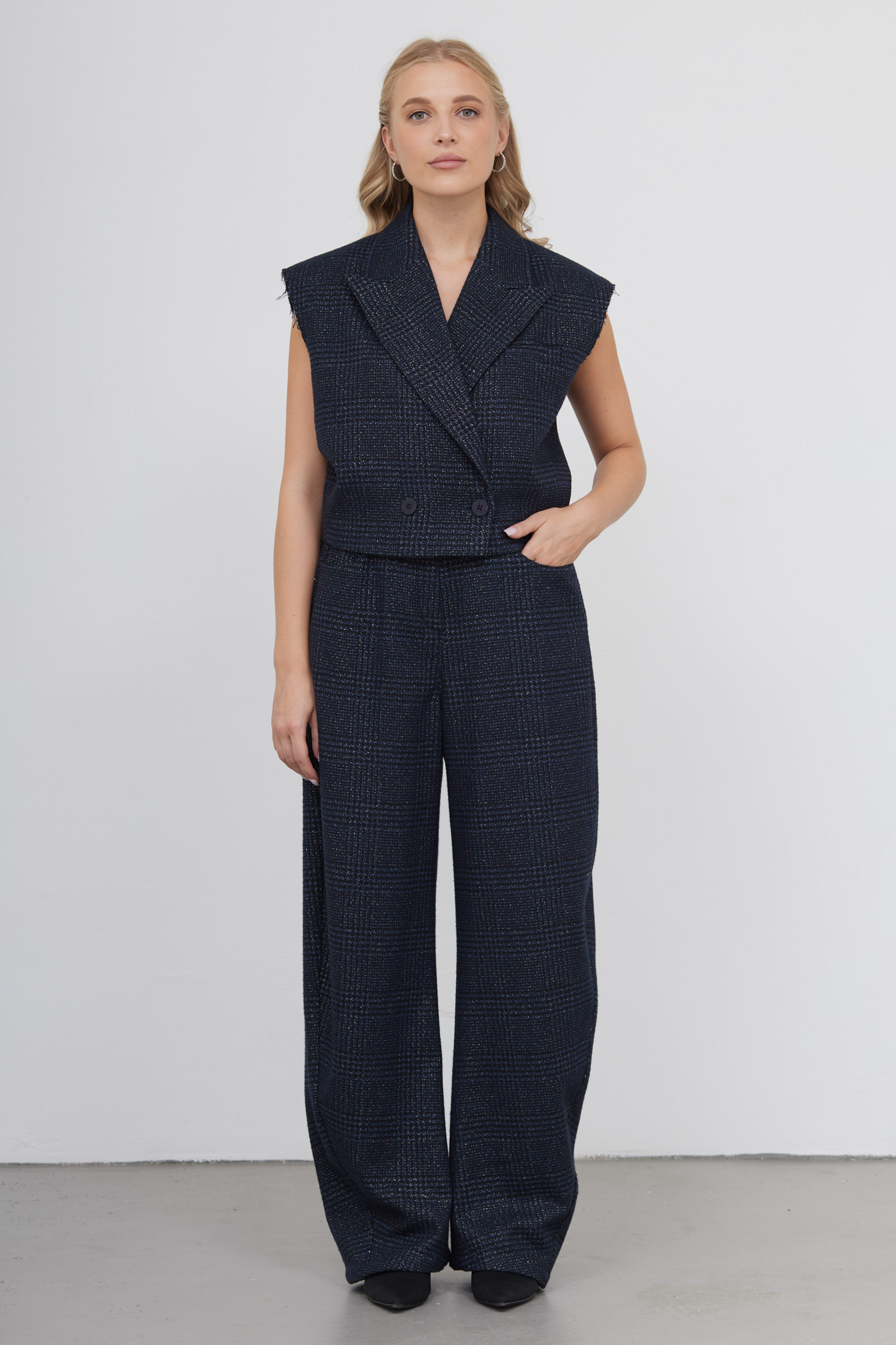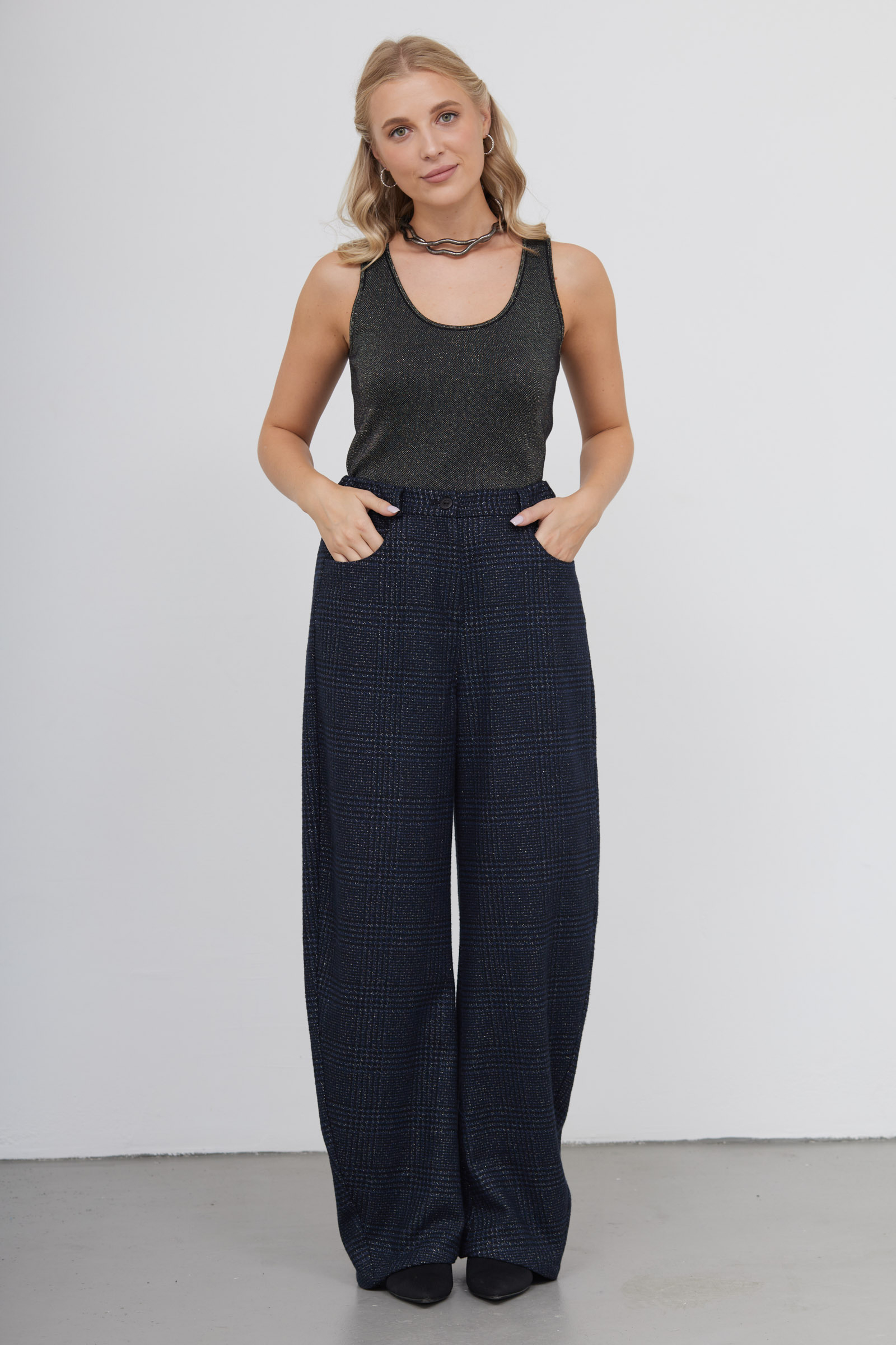 Брюки в клетку с люрексом