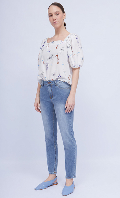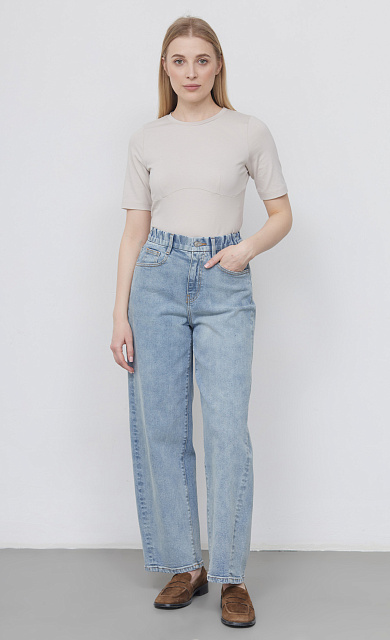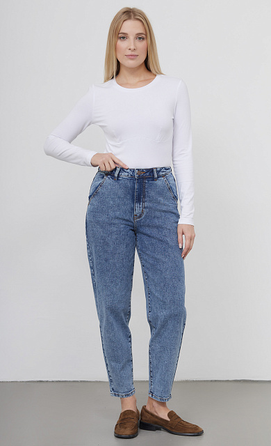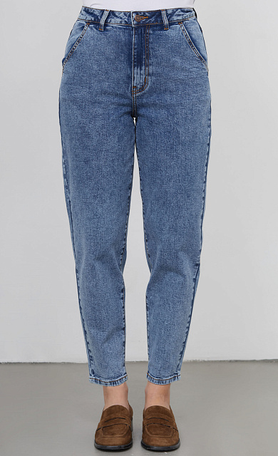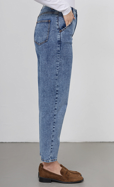 Джинсы бананы из мягкого денима с винтажным эффектом стирки.