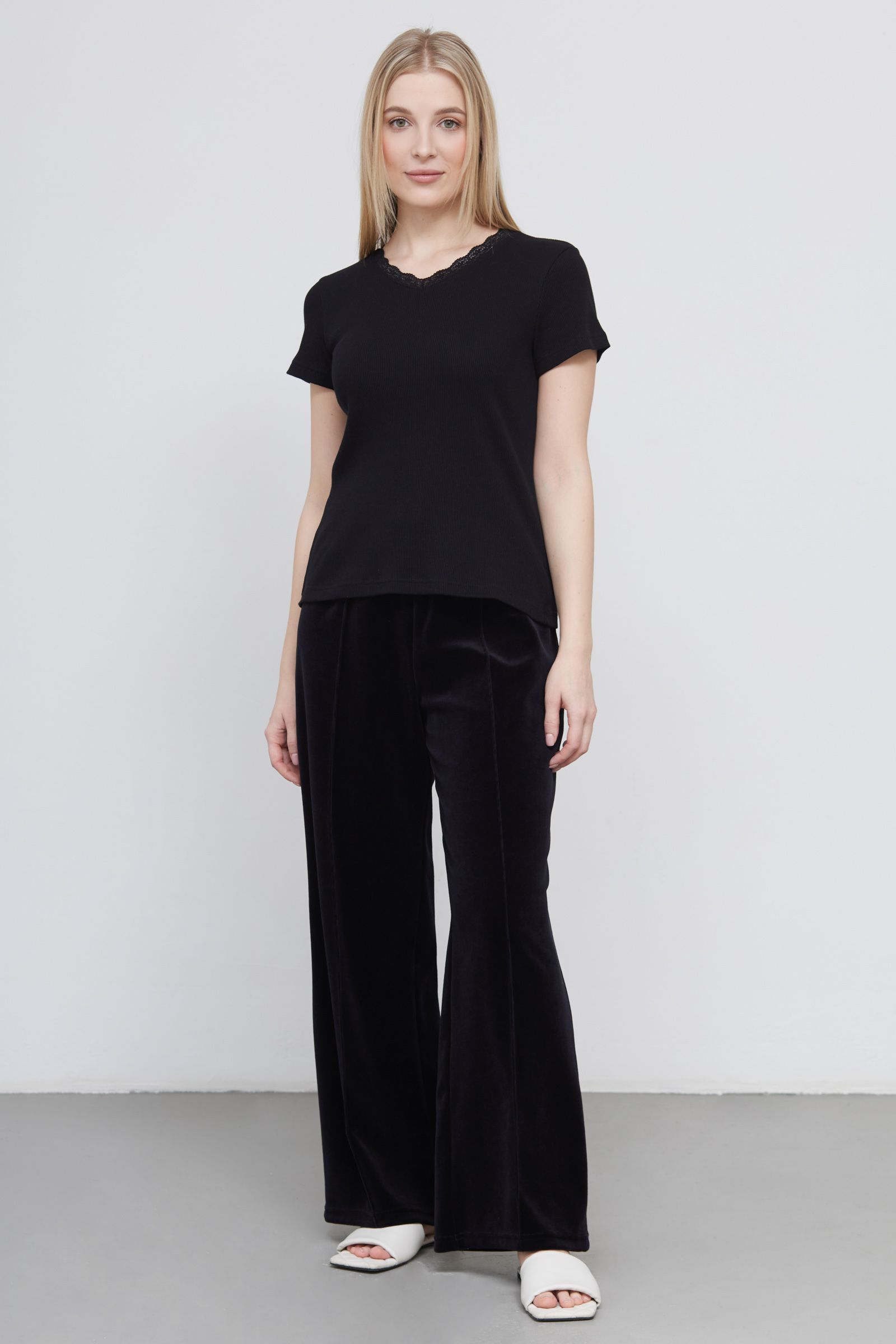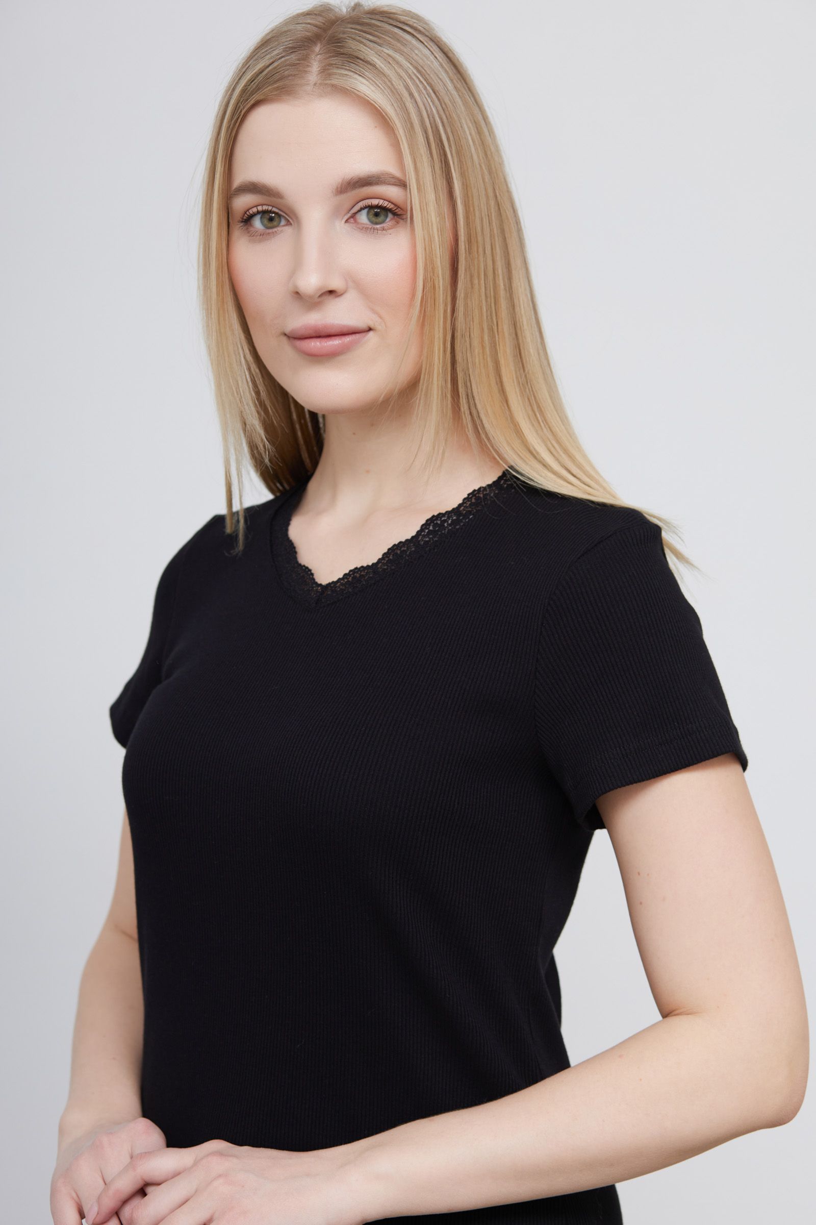 Футболка в рубчик с кружевом