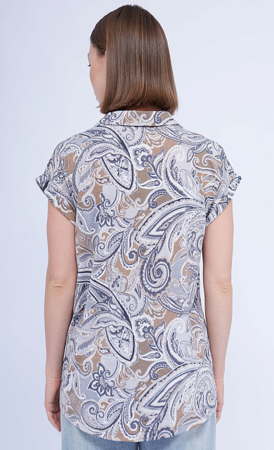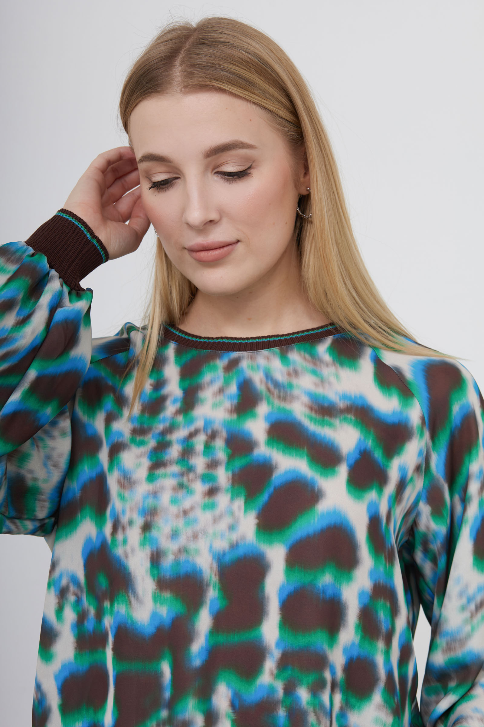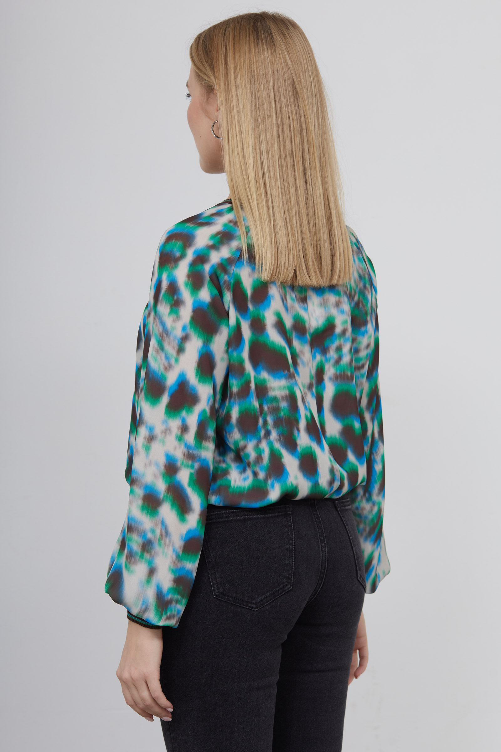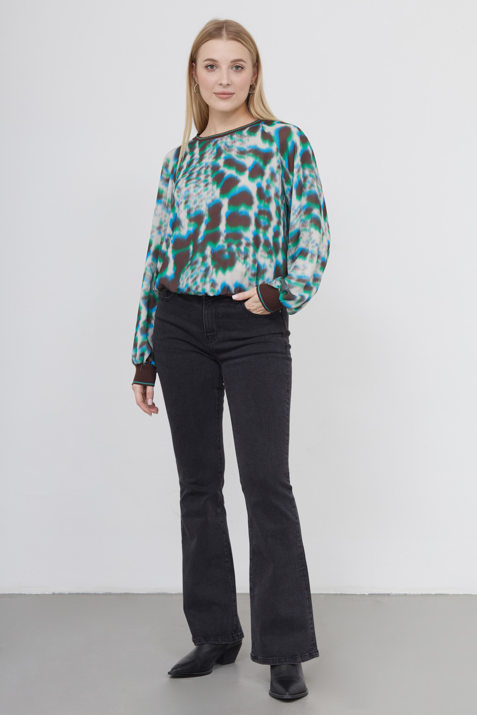 Блуза с абстрактным принтом и трикотажной отделкой.