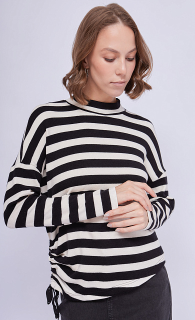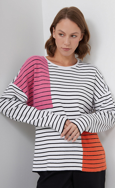 - Горловина, нижний край и манжеты из контрастной рибаны