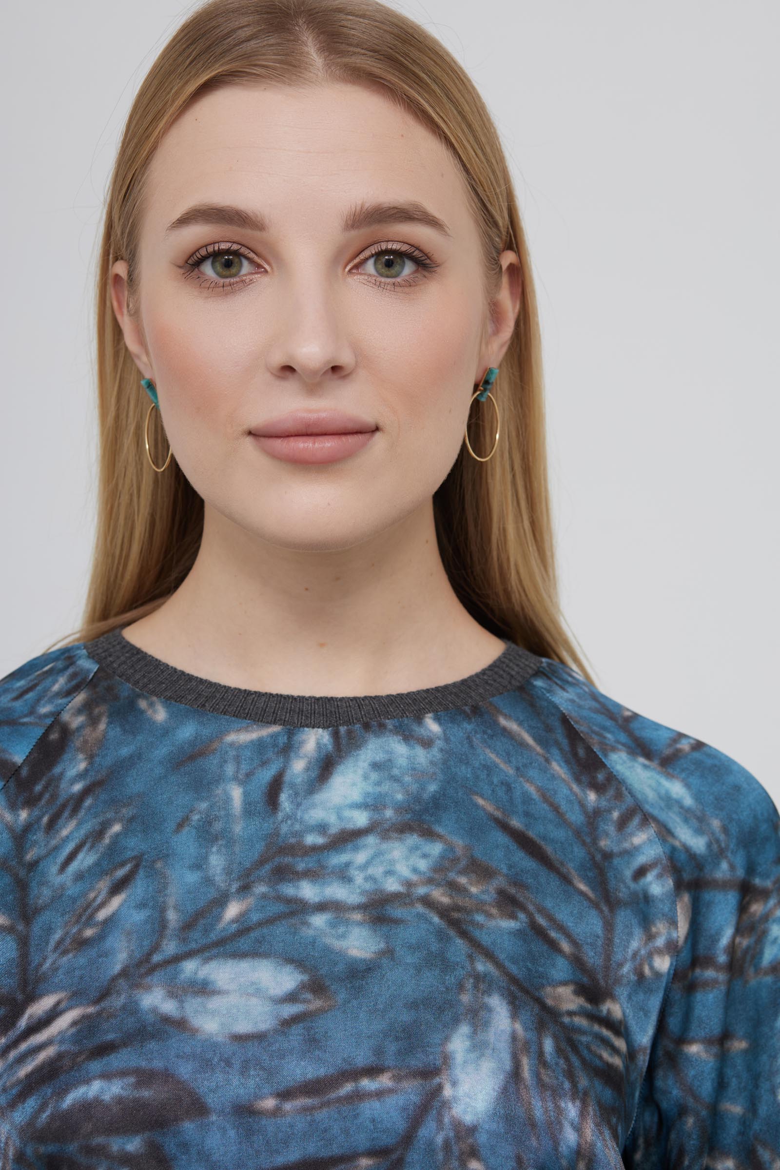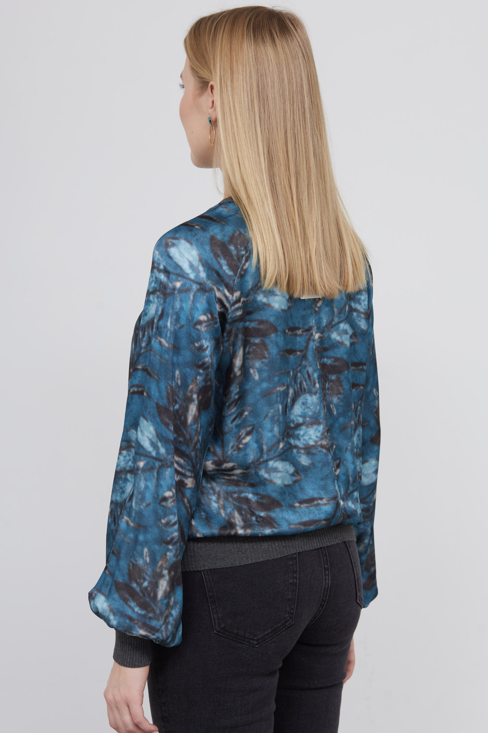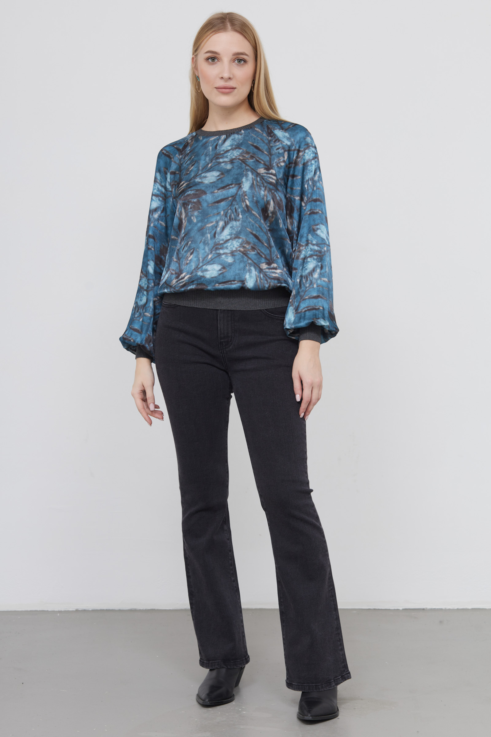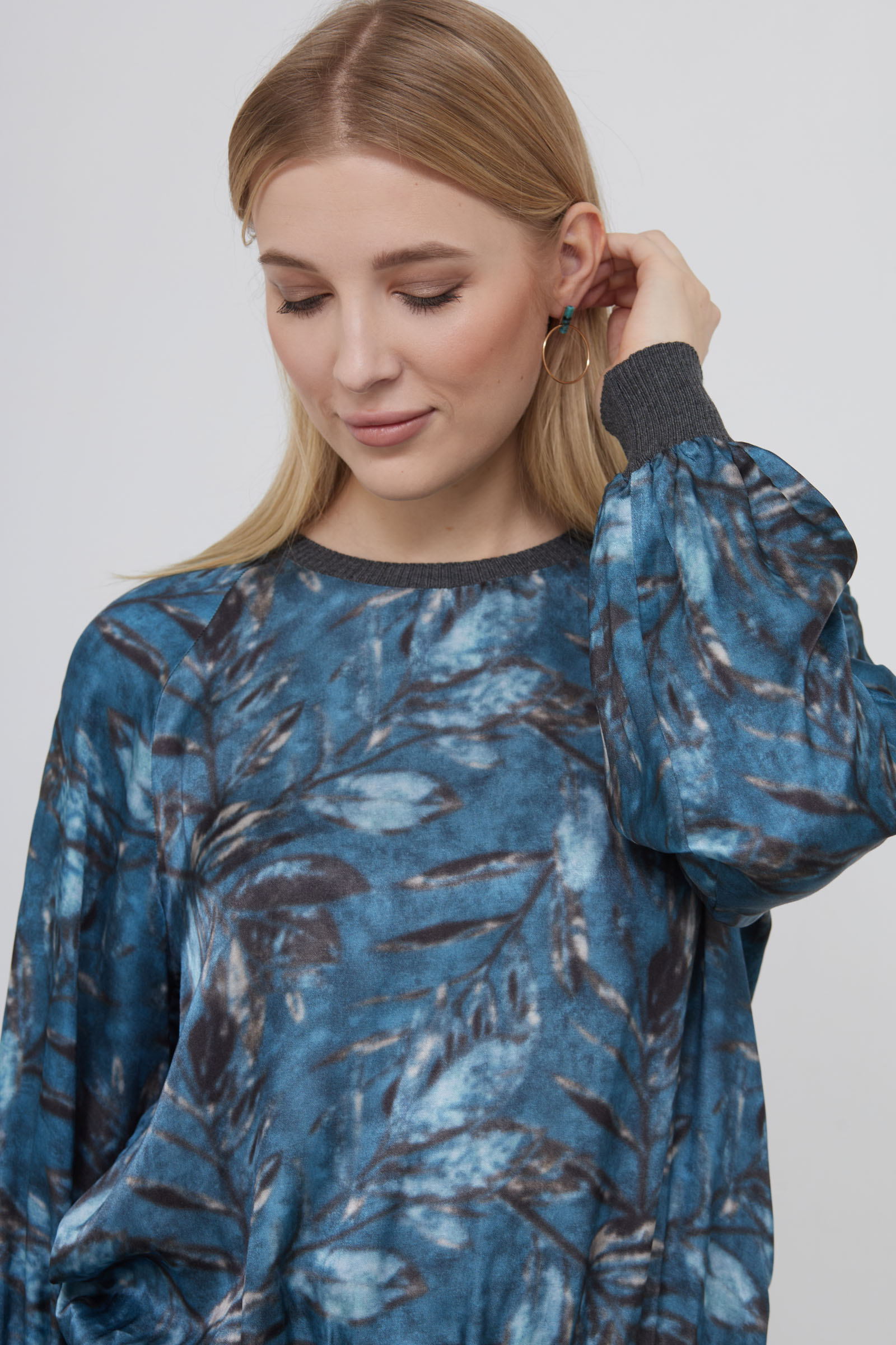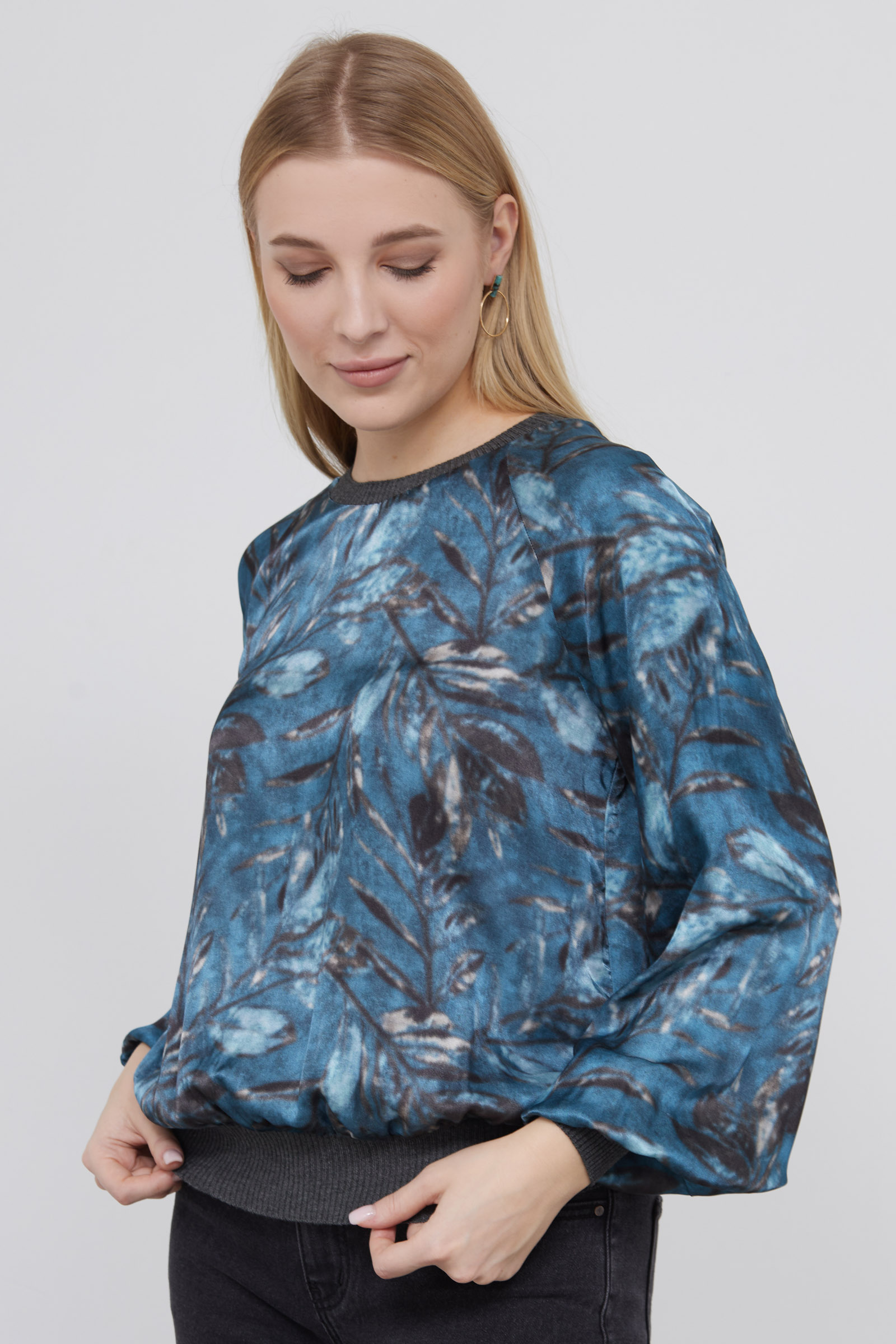 Блузка из атласной вискозы с цветочным принтом и трикотажной отделкой.