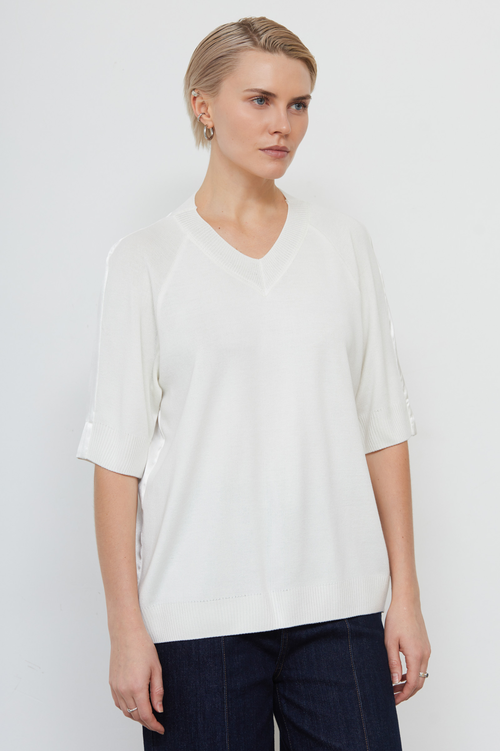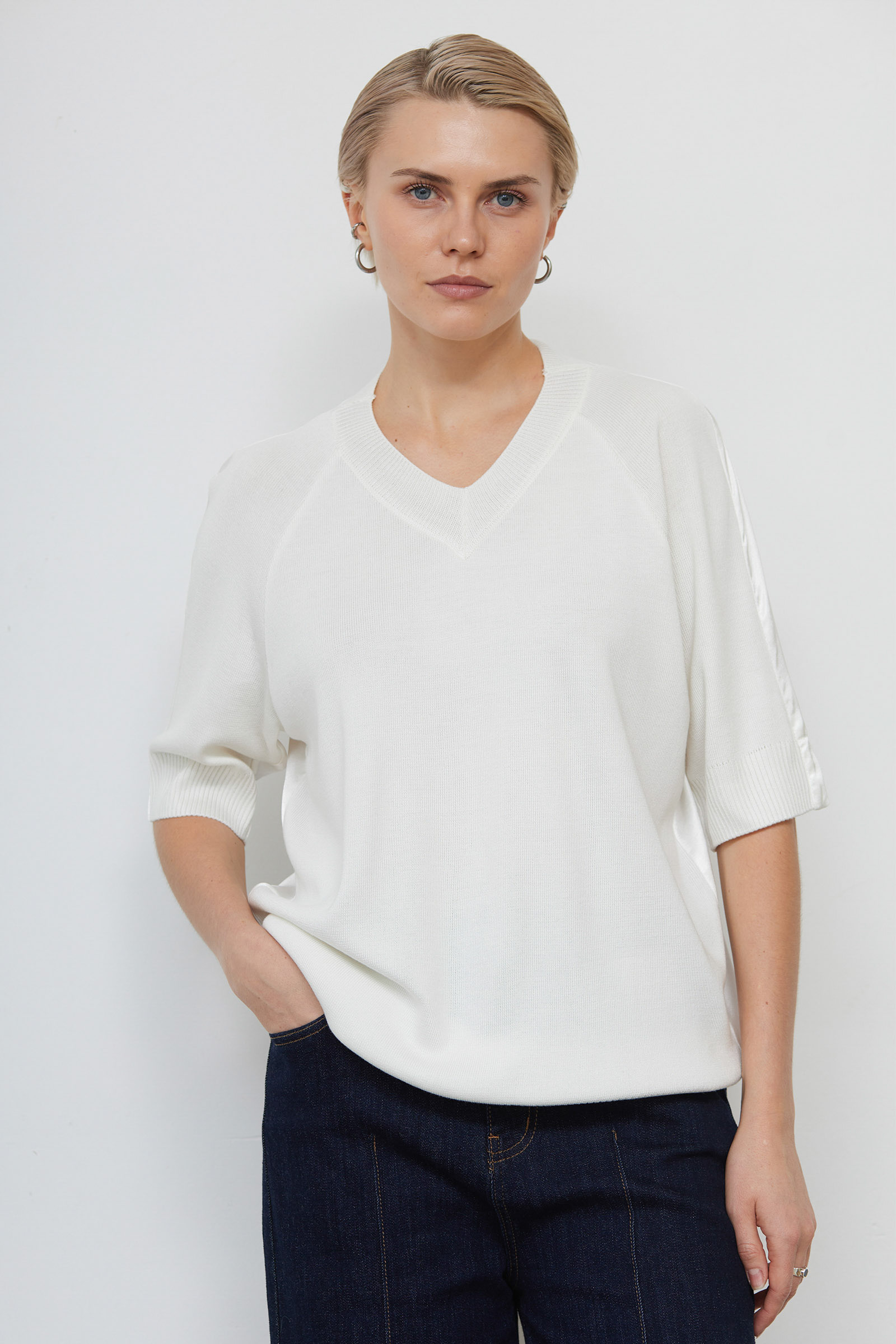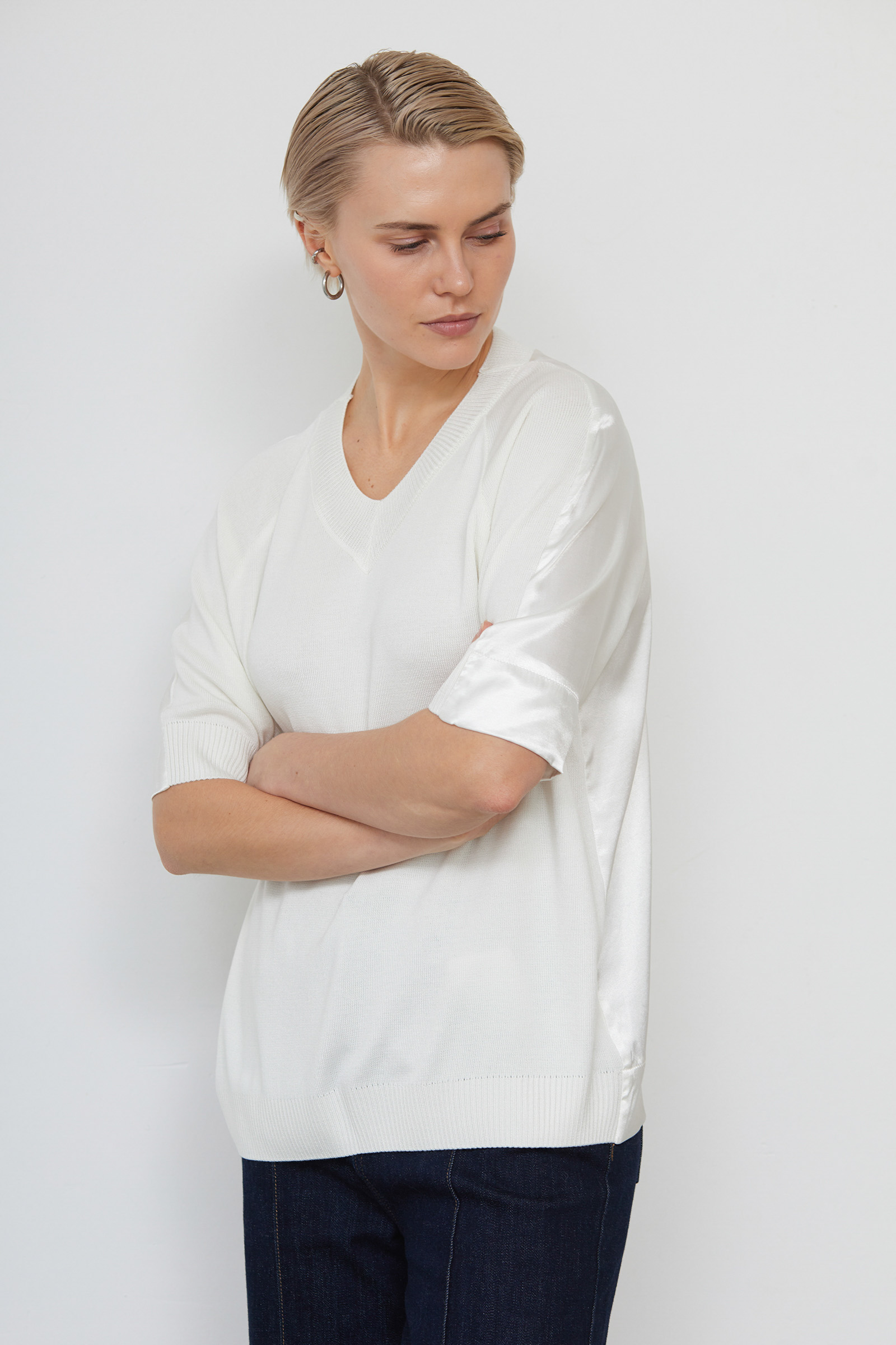 Комбинированный джемпер oversize тонкой вязки со спинкой из атласа.