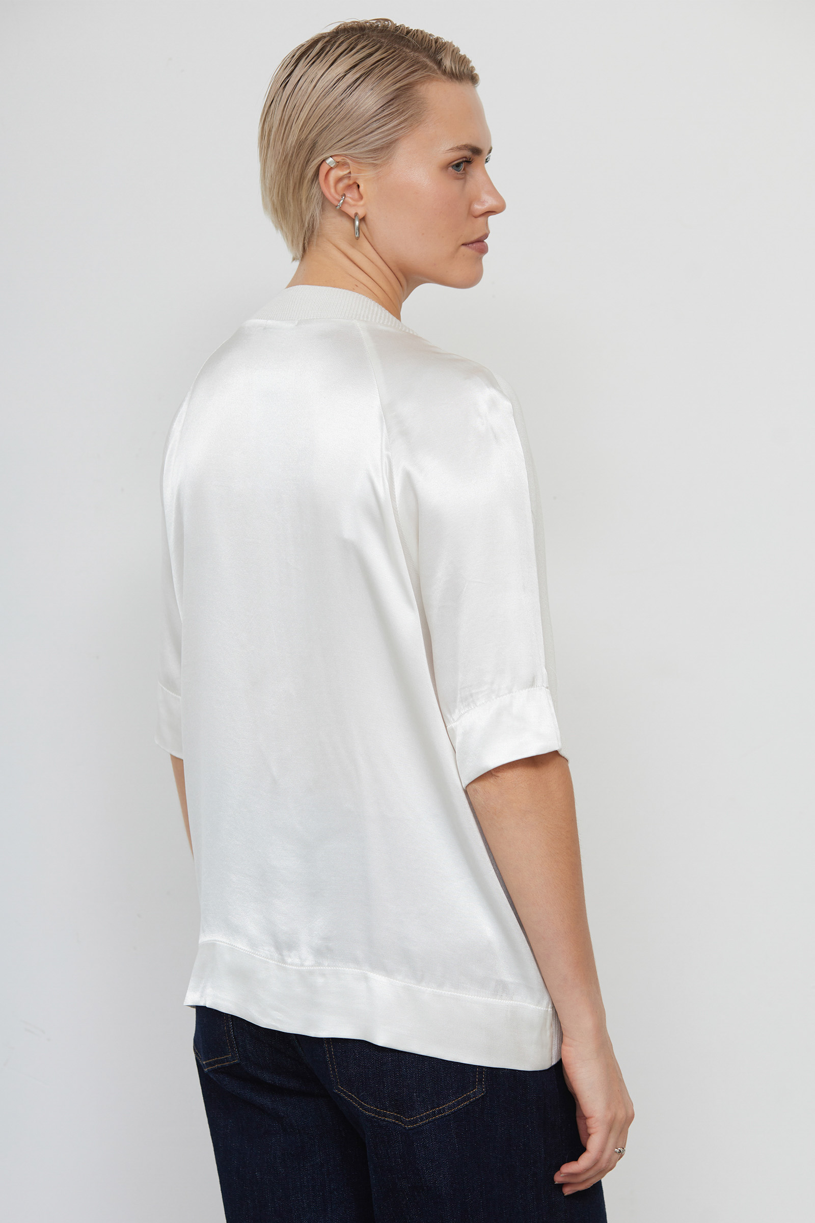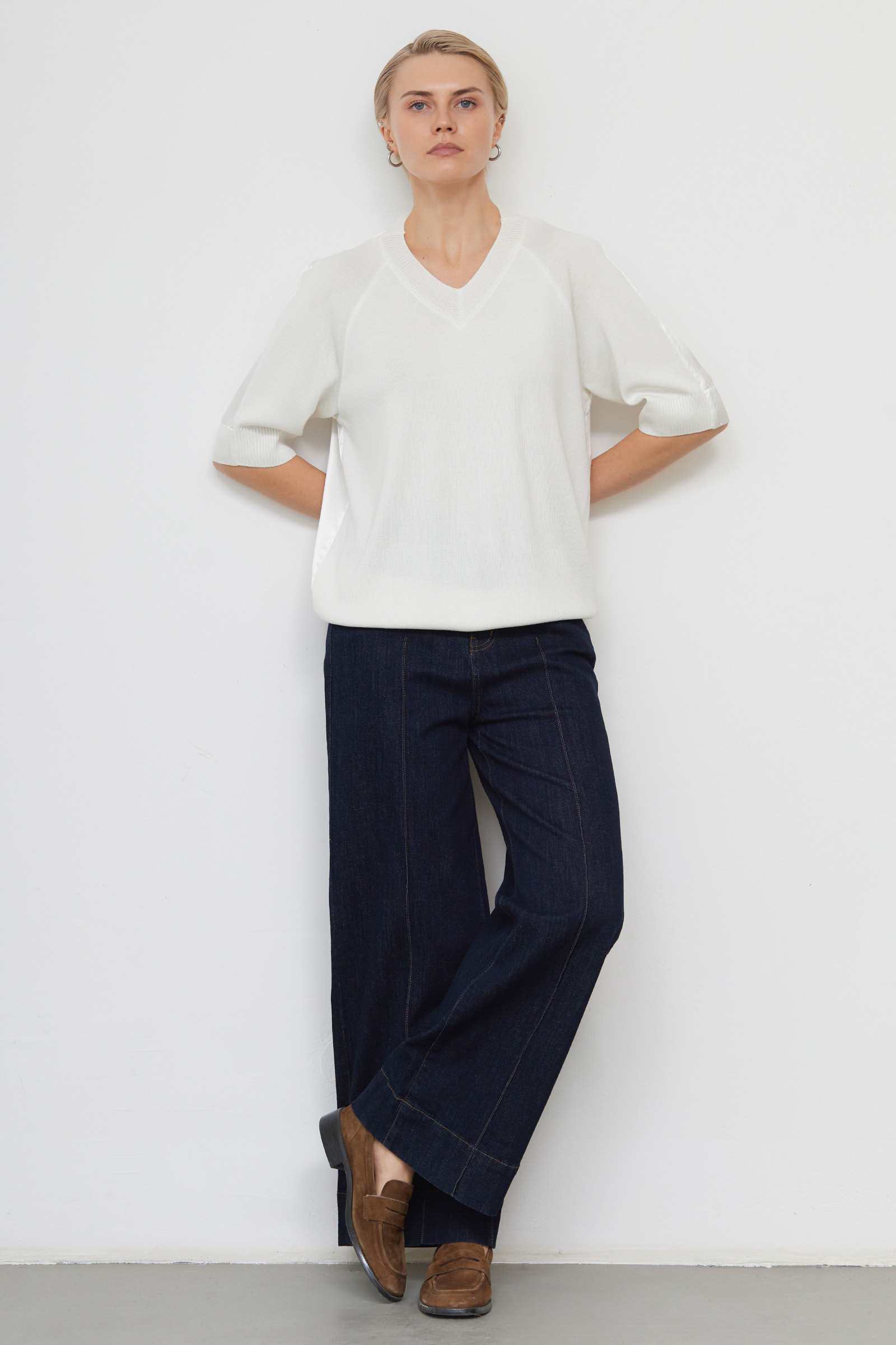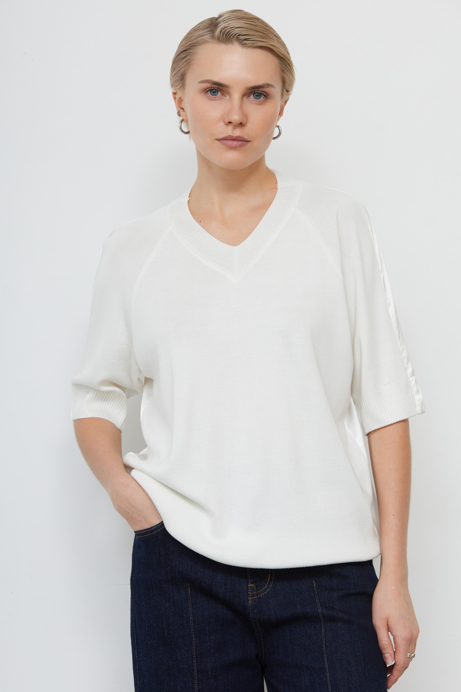Комбинированный джемпер oversize тонкой вязки со спинкой из атласа.