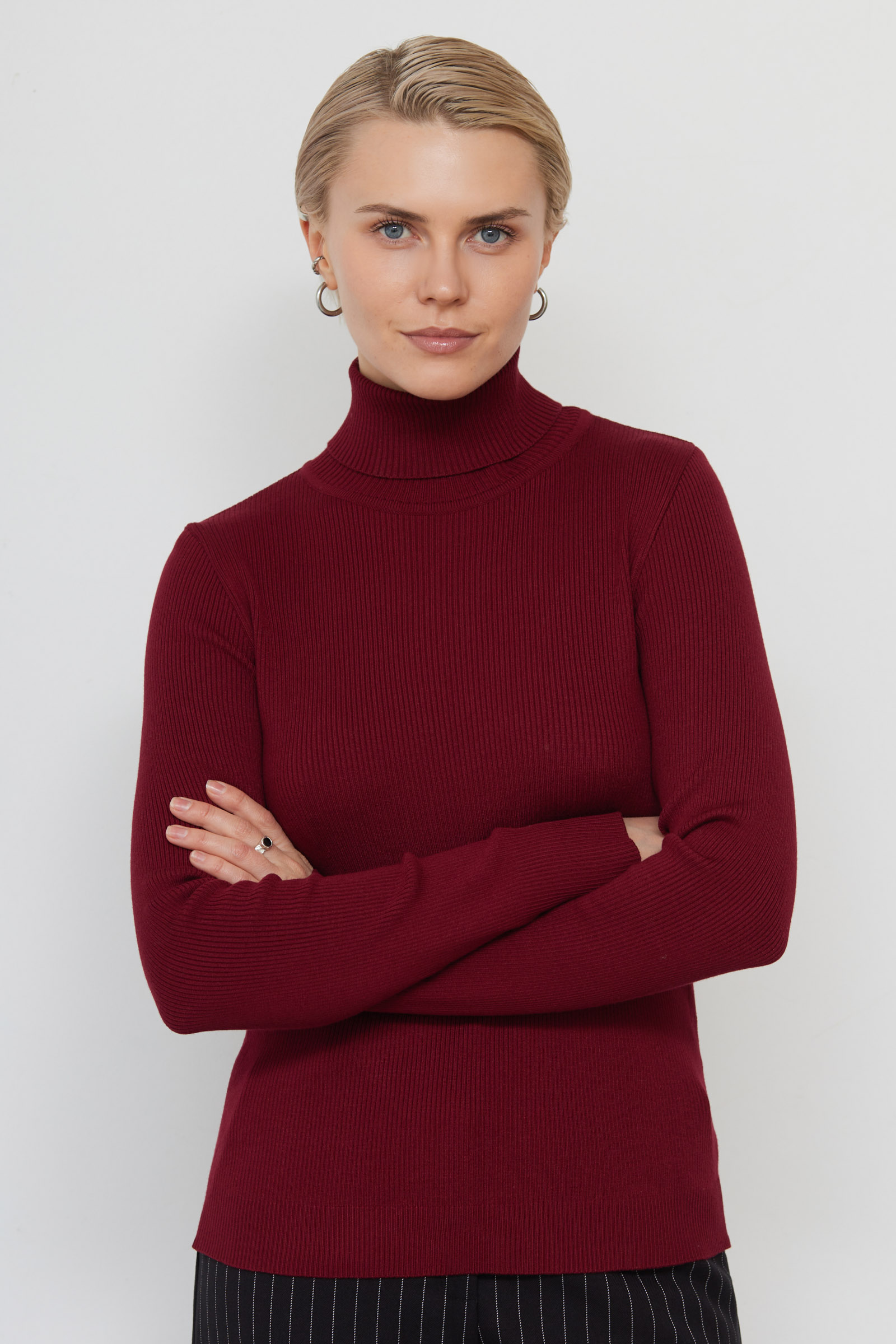Базовая водолазка из мягкого вискозного трикотажа в рубчик.