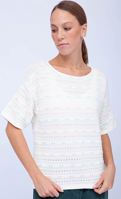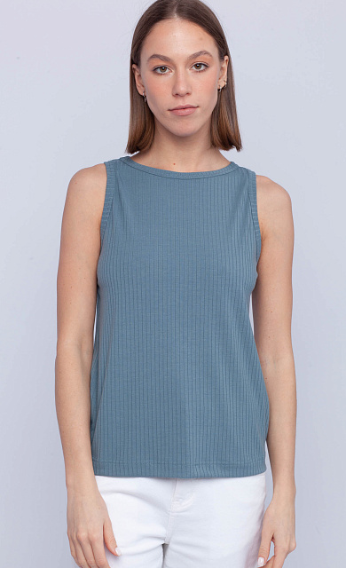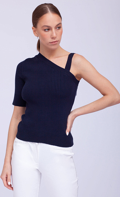 Топ из вязаного трикотажа в рубчик с открытым плечом.