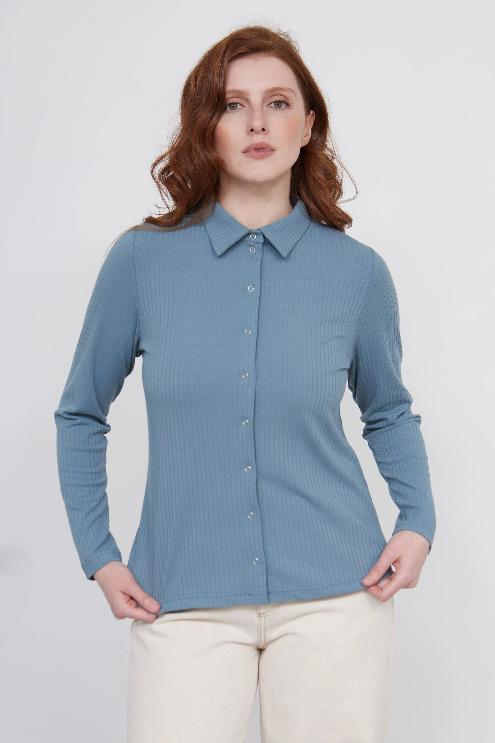 Блузка в рубчик на кнопках