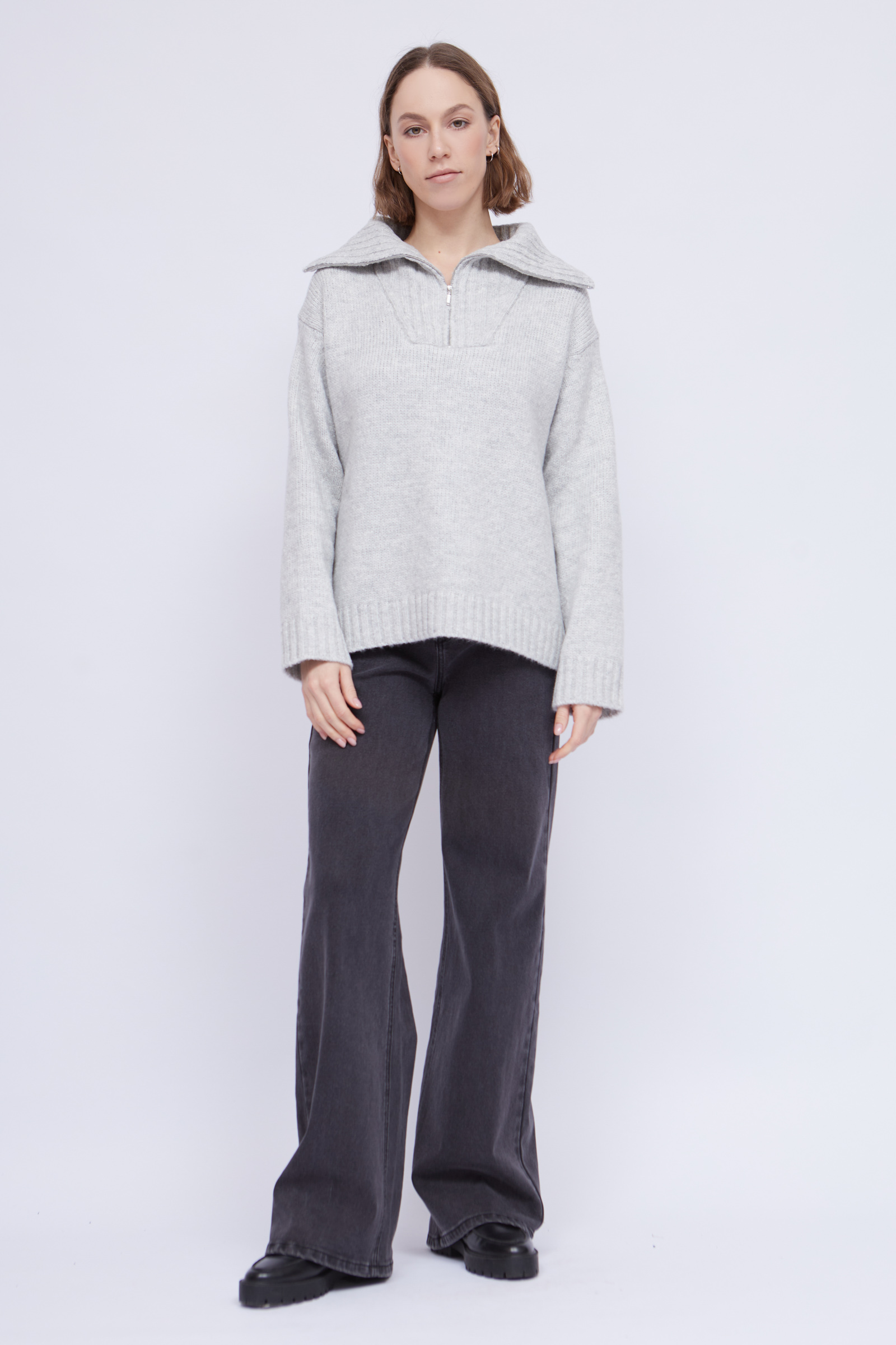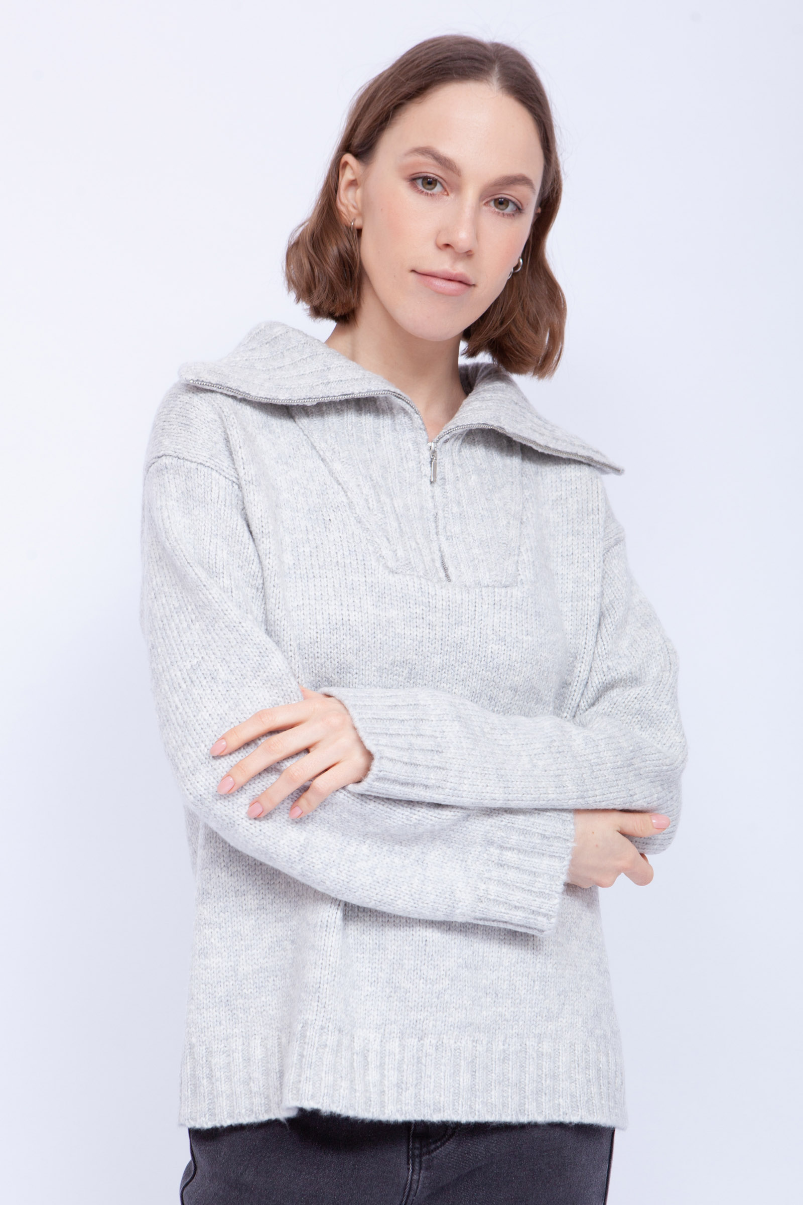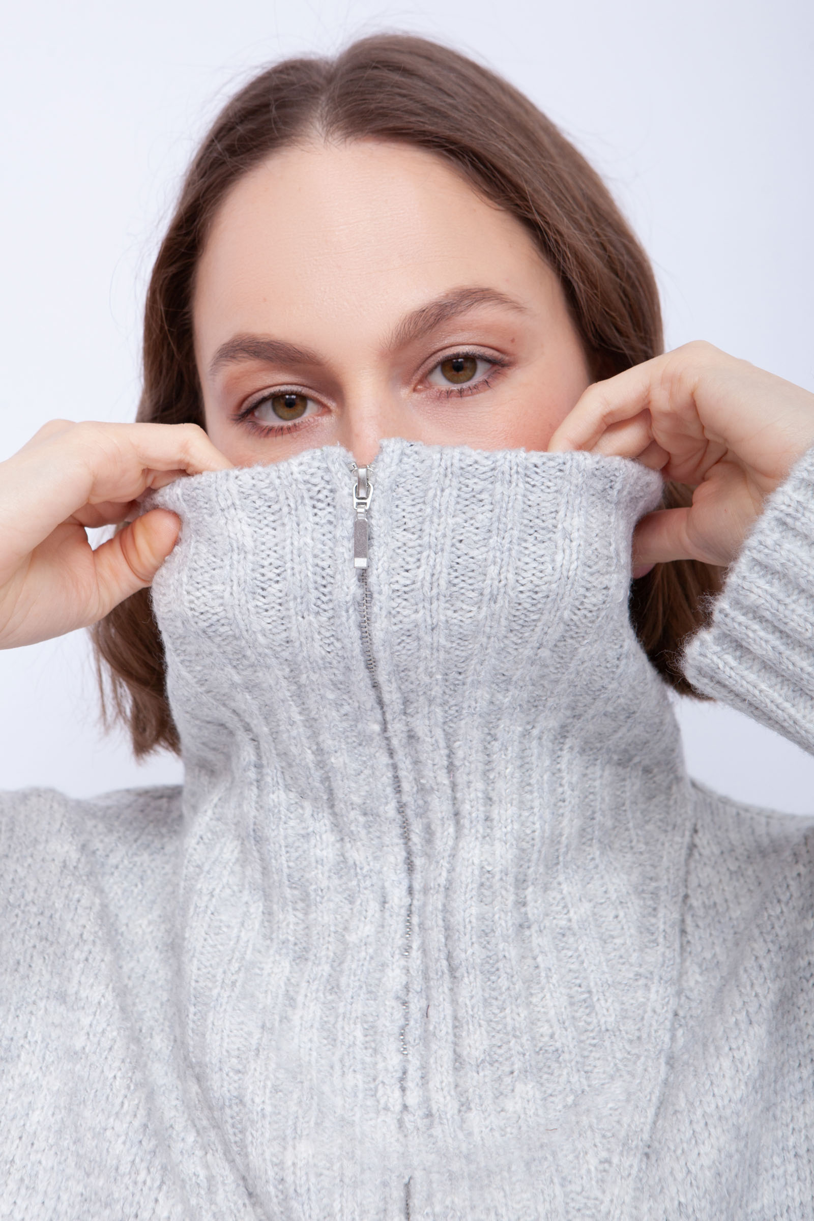Свитер из мягкого вязаного трикотажа с высоким воротником на молнии.