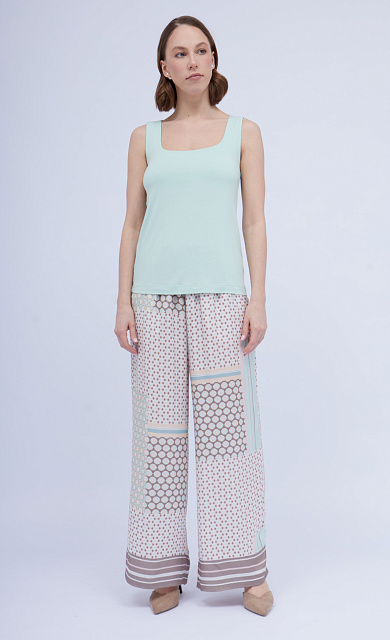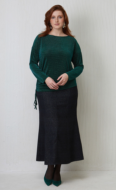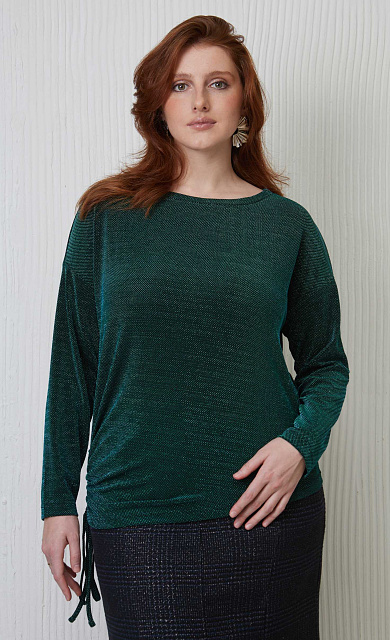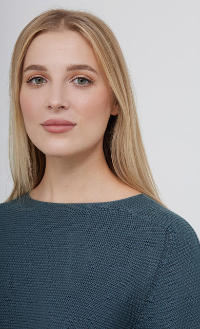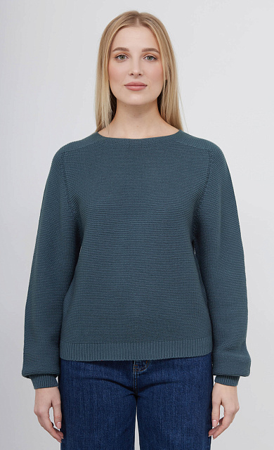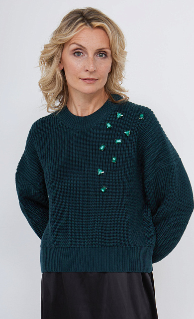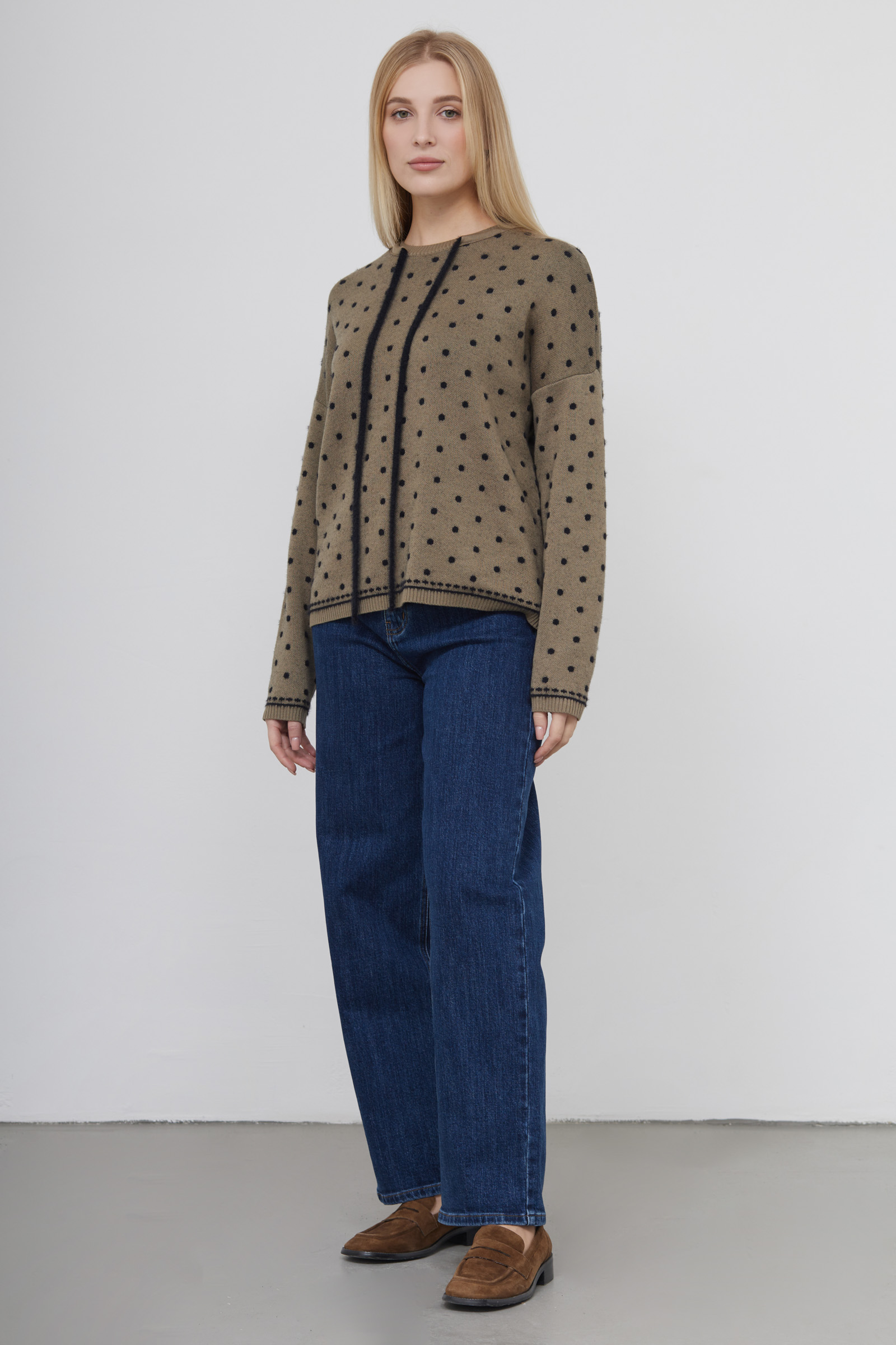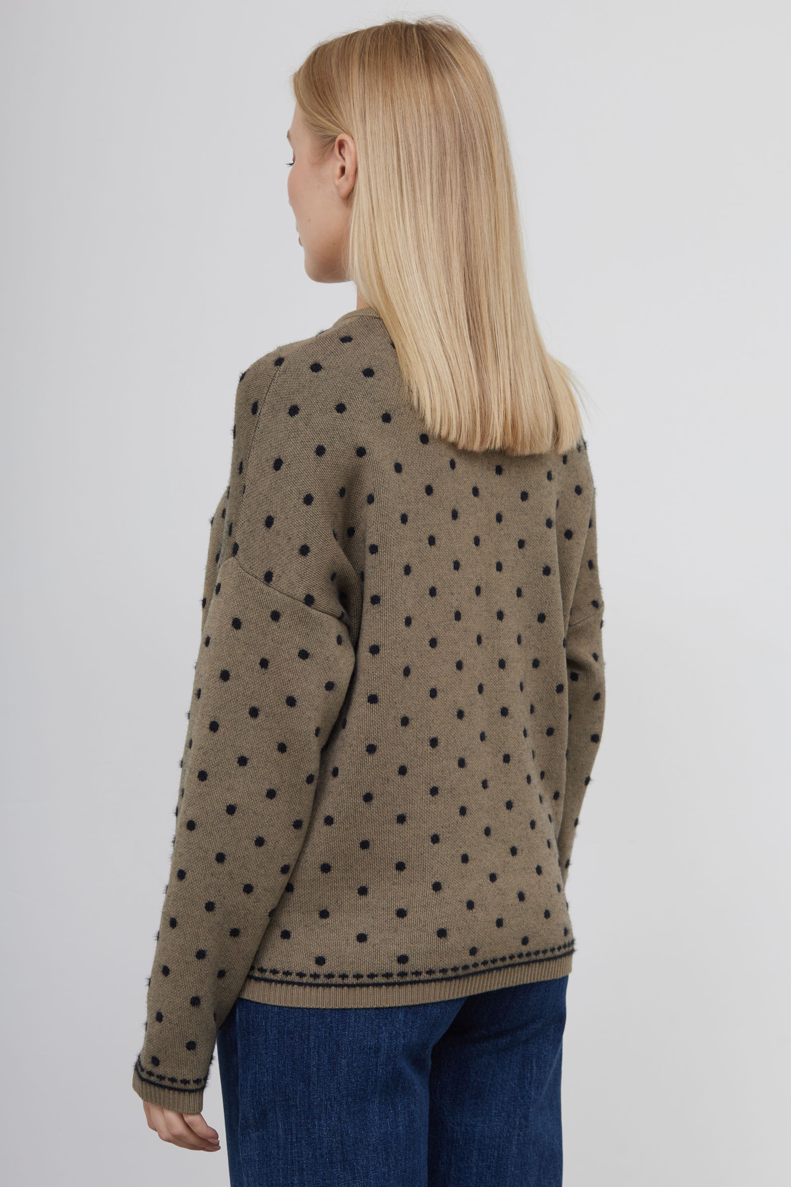 Джемпер жаккардовой вязки в горошек с кулиской на горловине.