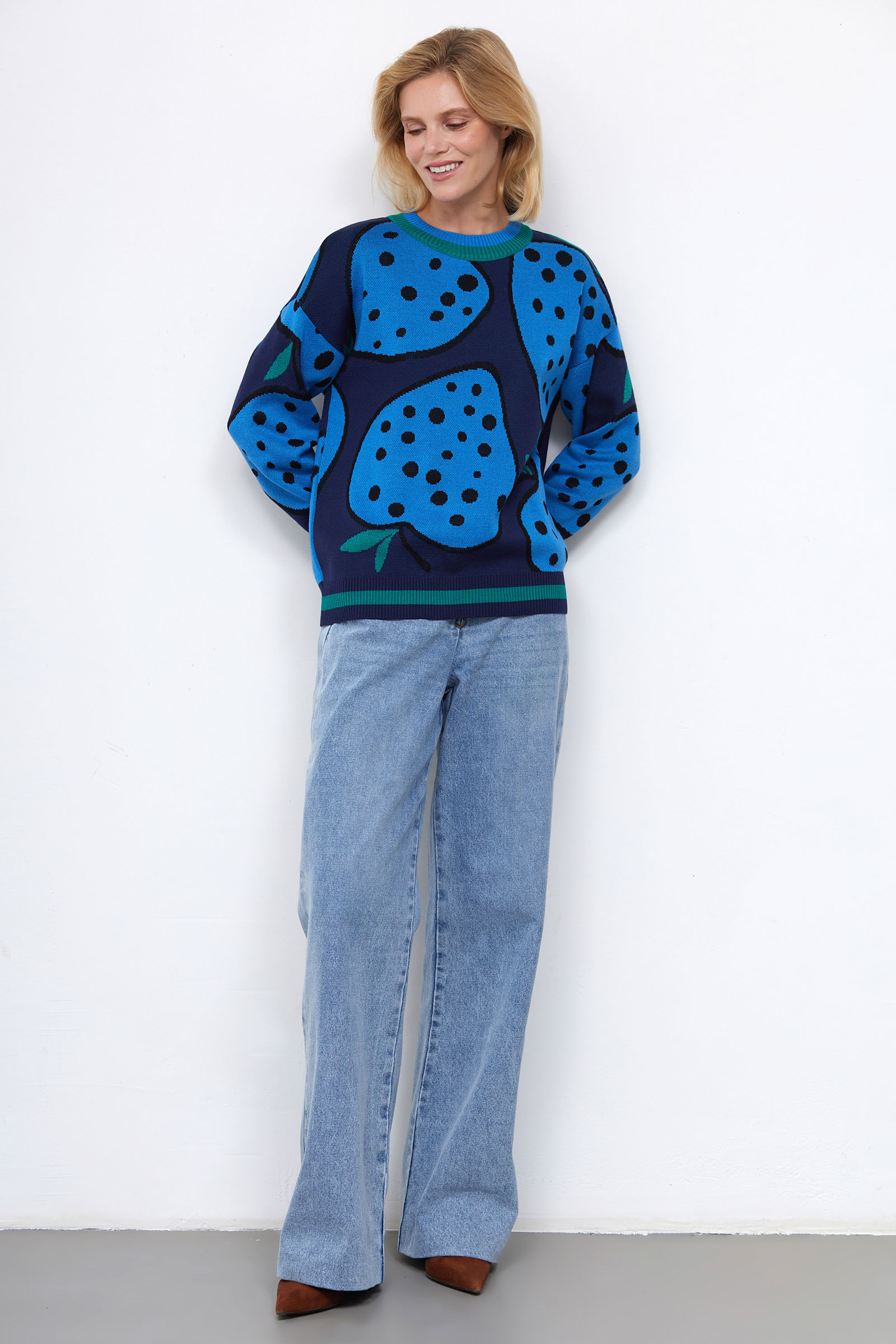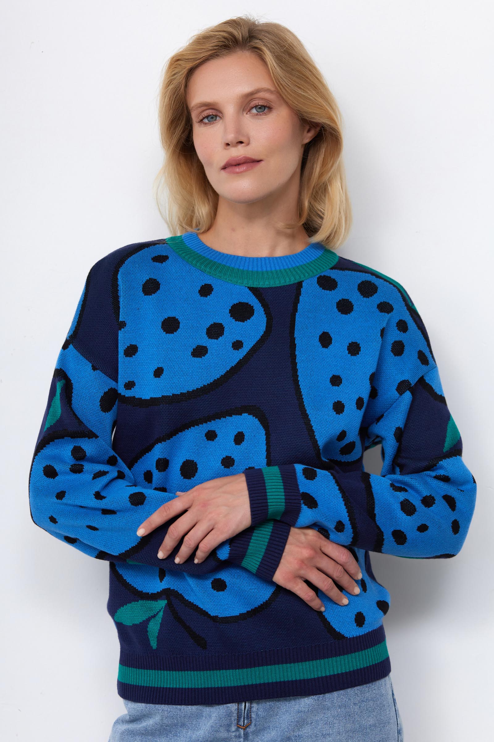 Джемпер из мягкого жаккардового трикотажа с контрастным рисунком.