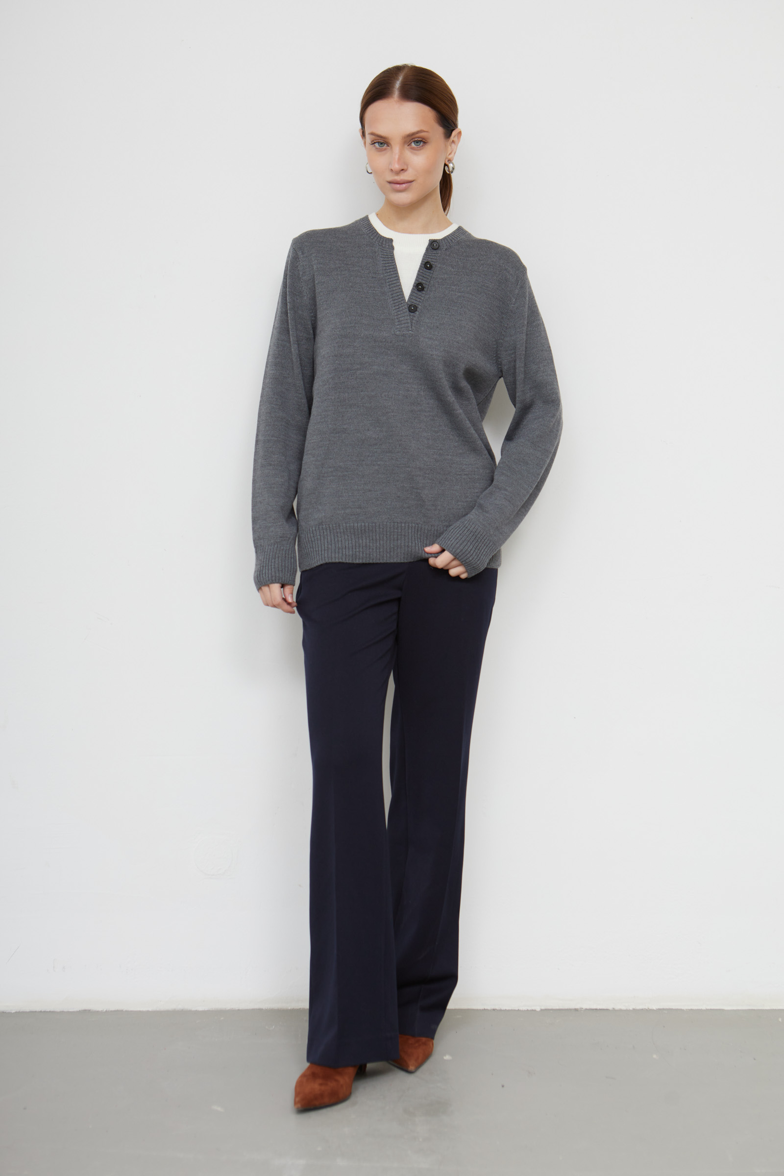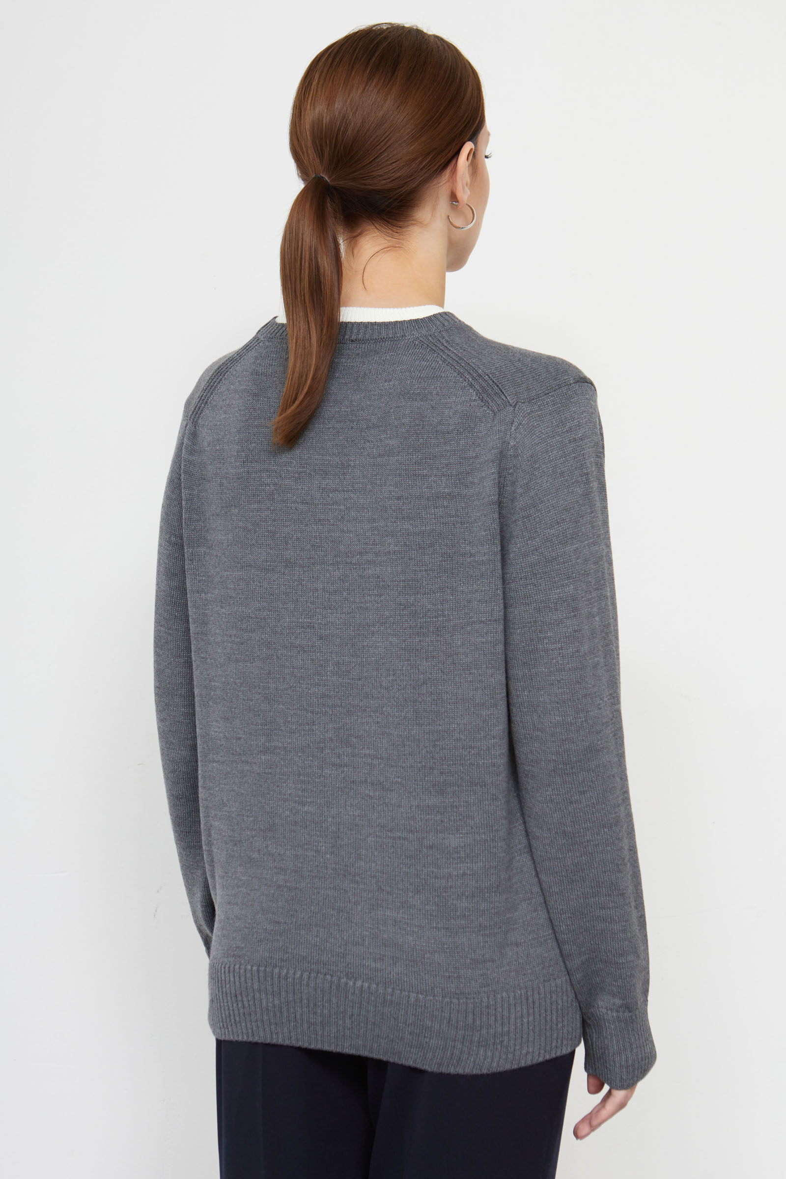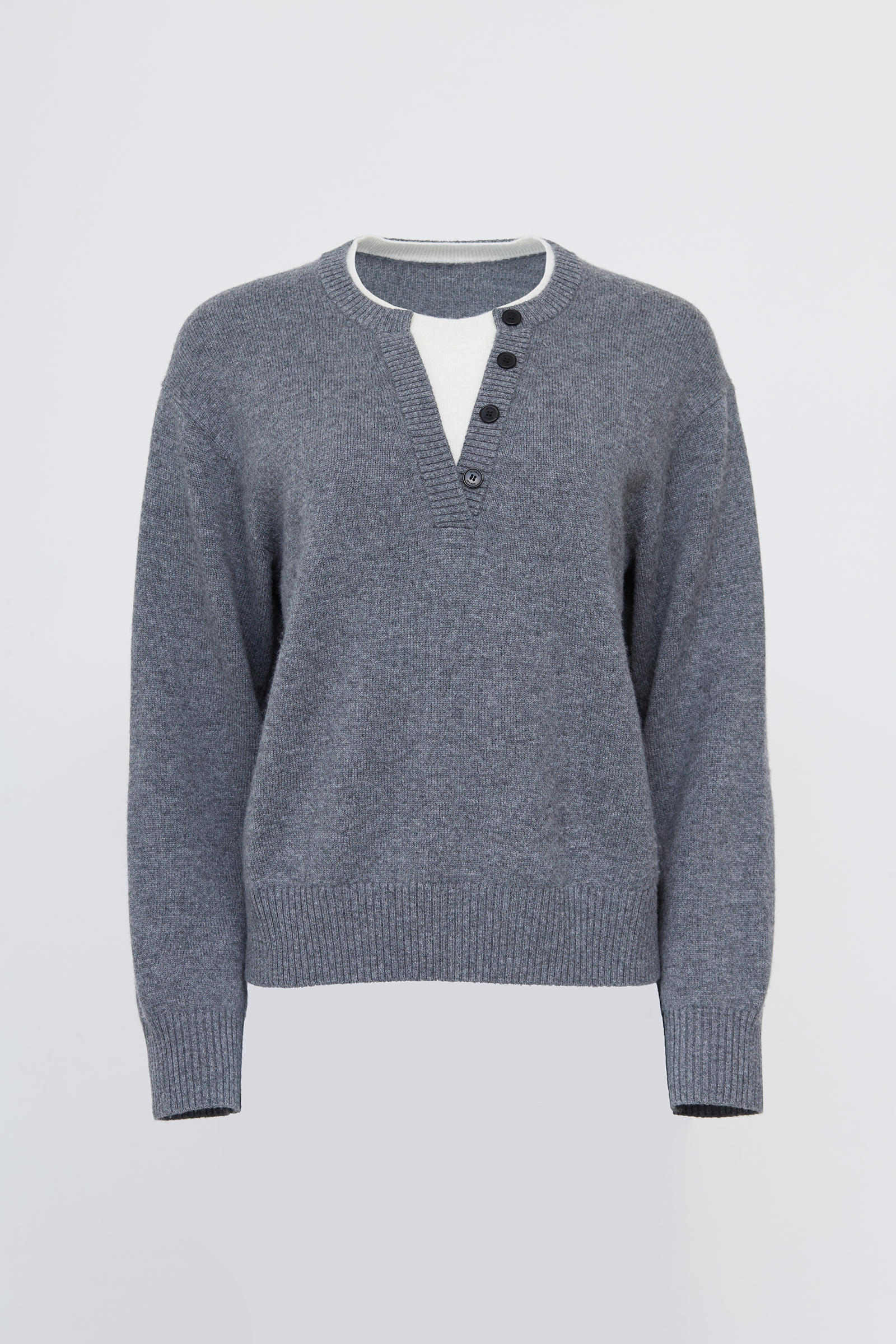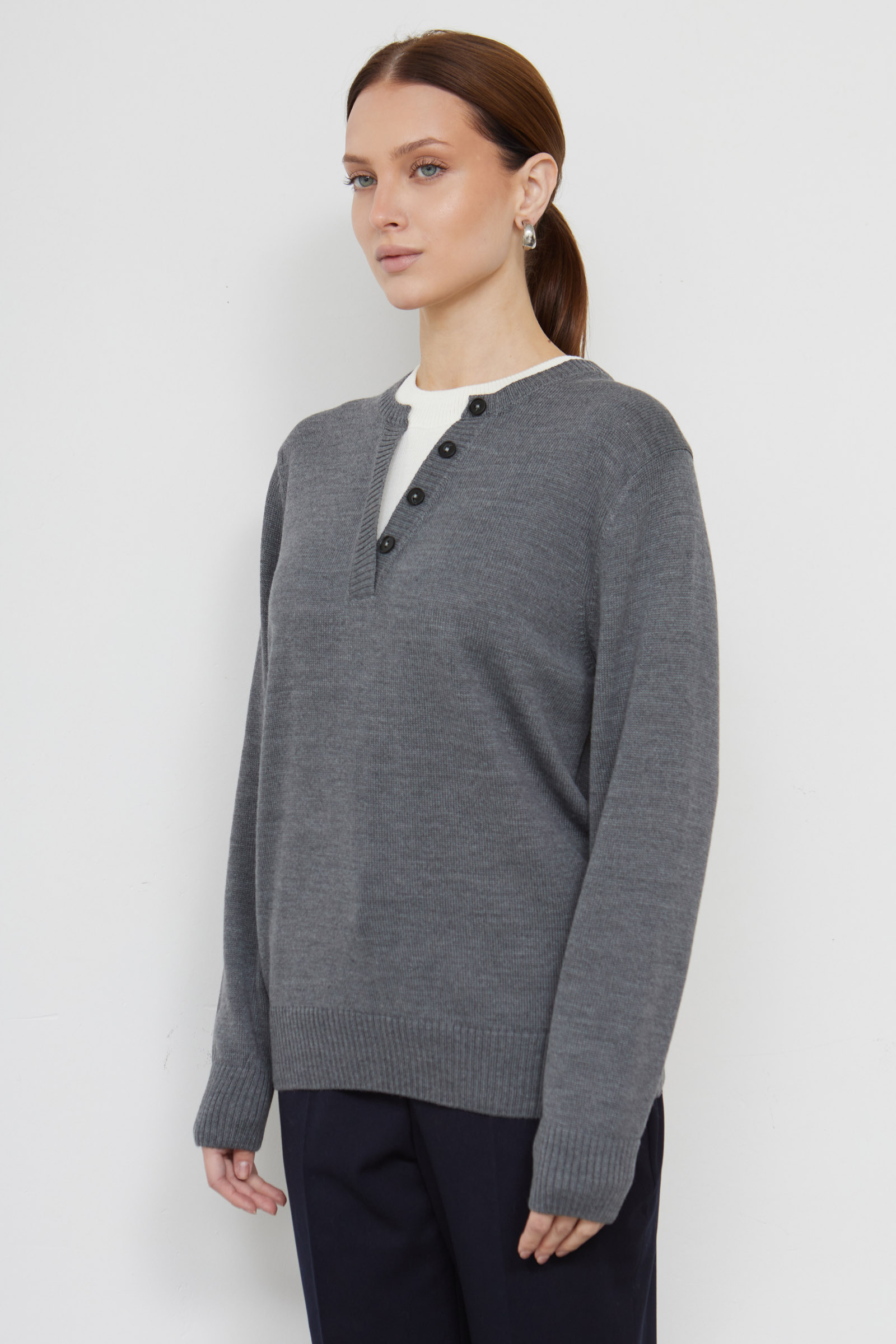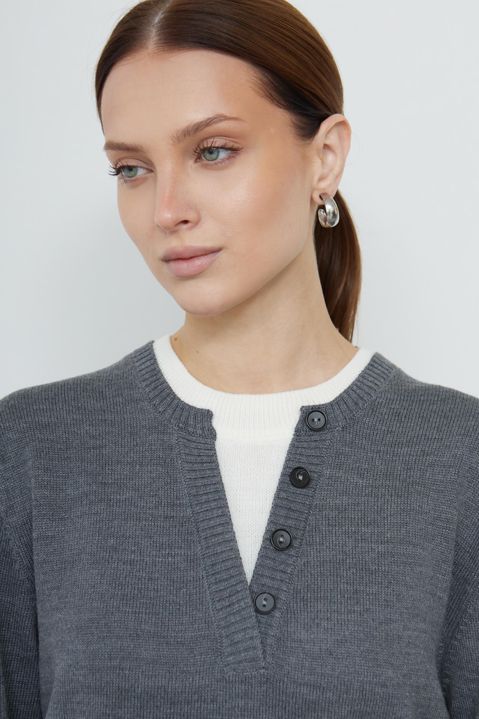 Полушерстяной вязаный джемпер с декоративной планкой и имитацией второго слоя.